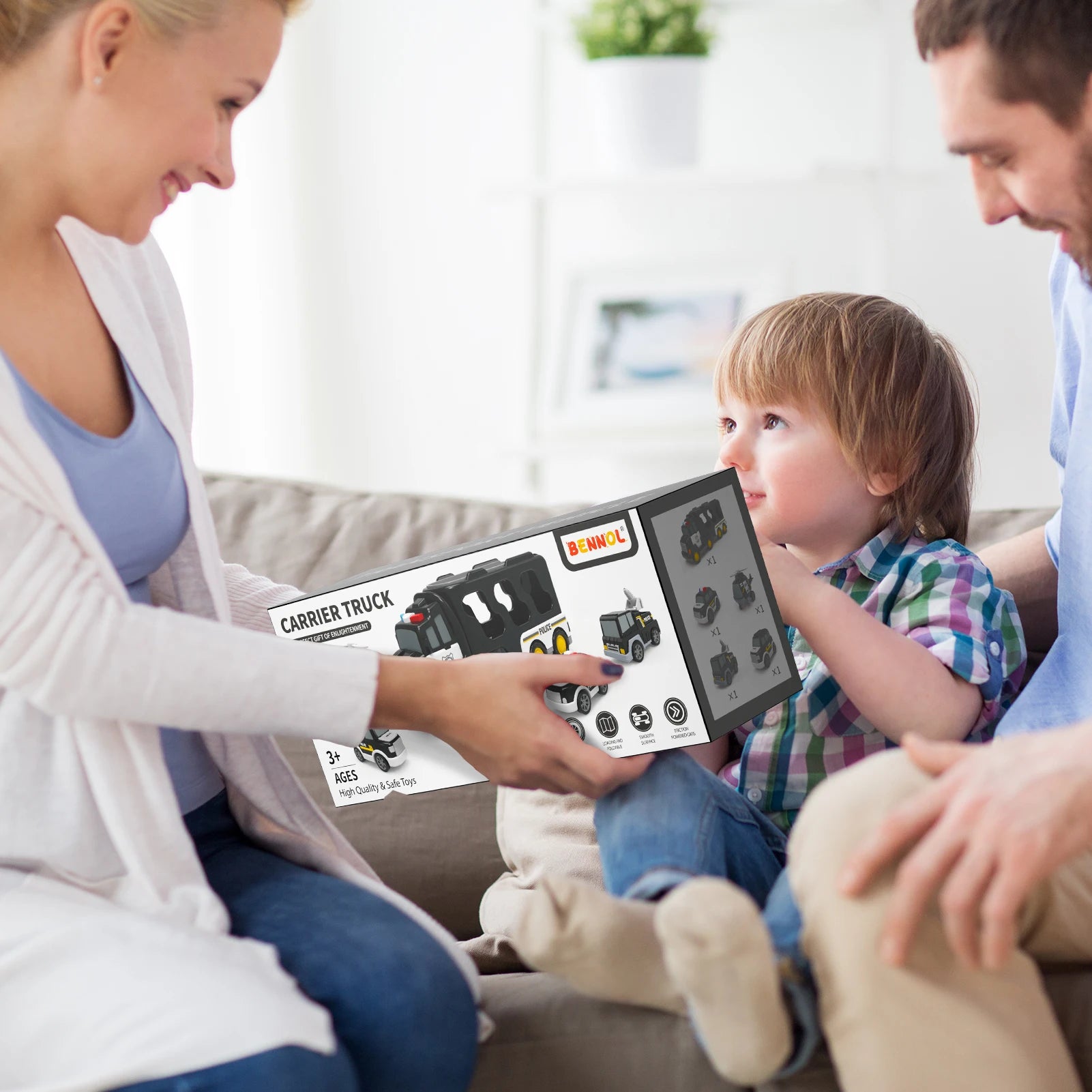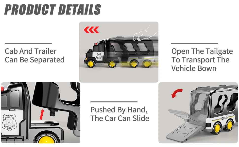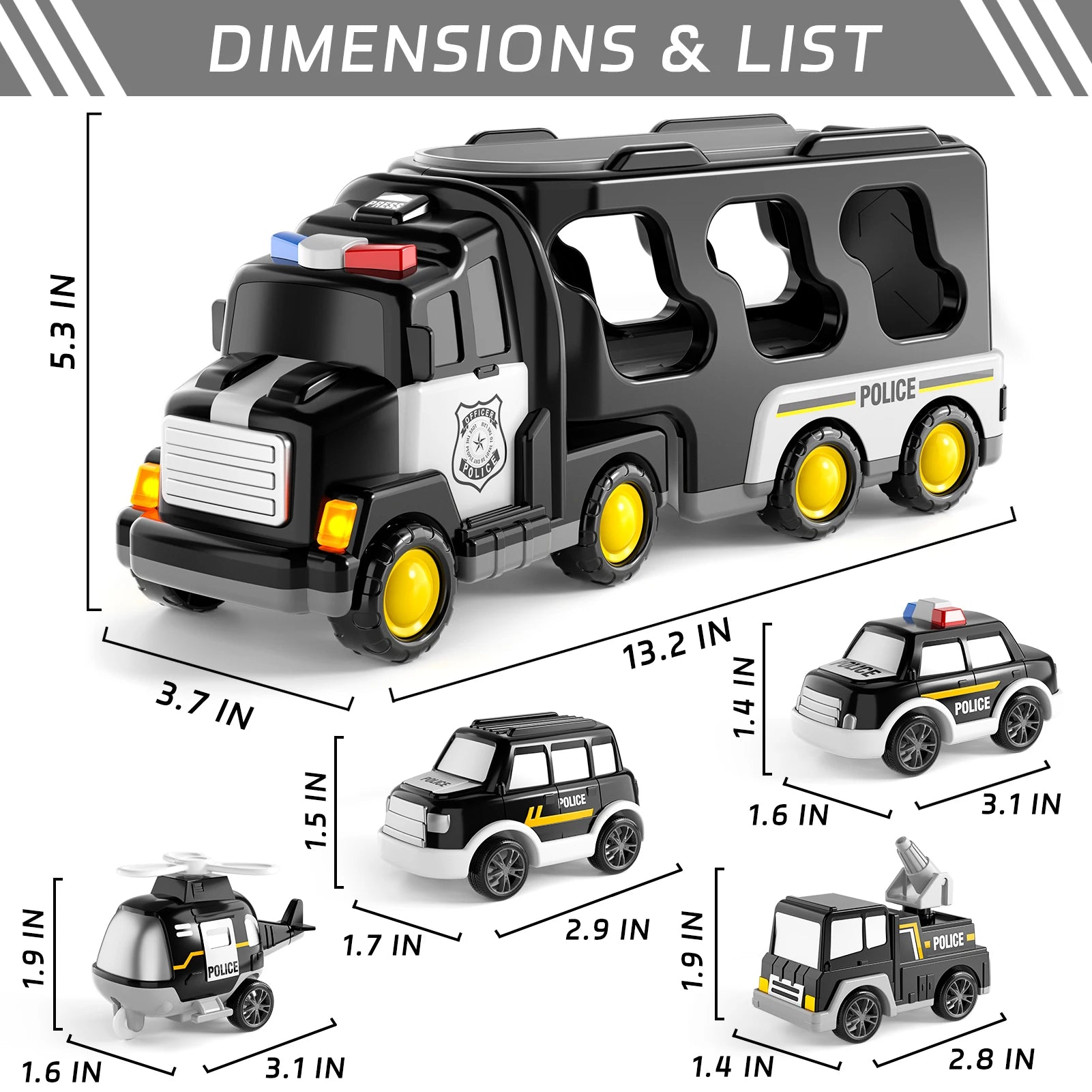 5 In 1 Police Truck Sets Kids Toys Cars Toddler Carrier Truck Pull Back Cars Transport Vehicles Toys Birthday Gifts Boys Girls