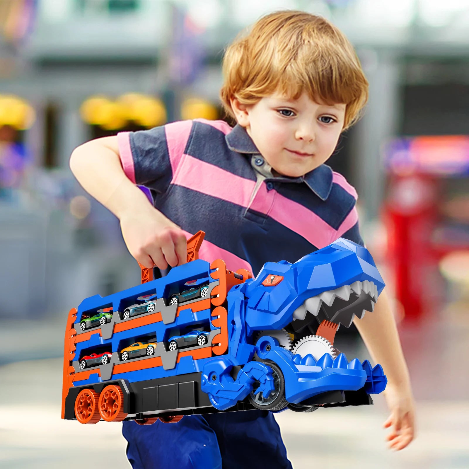 Dinosaur Truck Toy Set with Die-Cast Racing Cars for Kids
