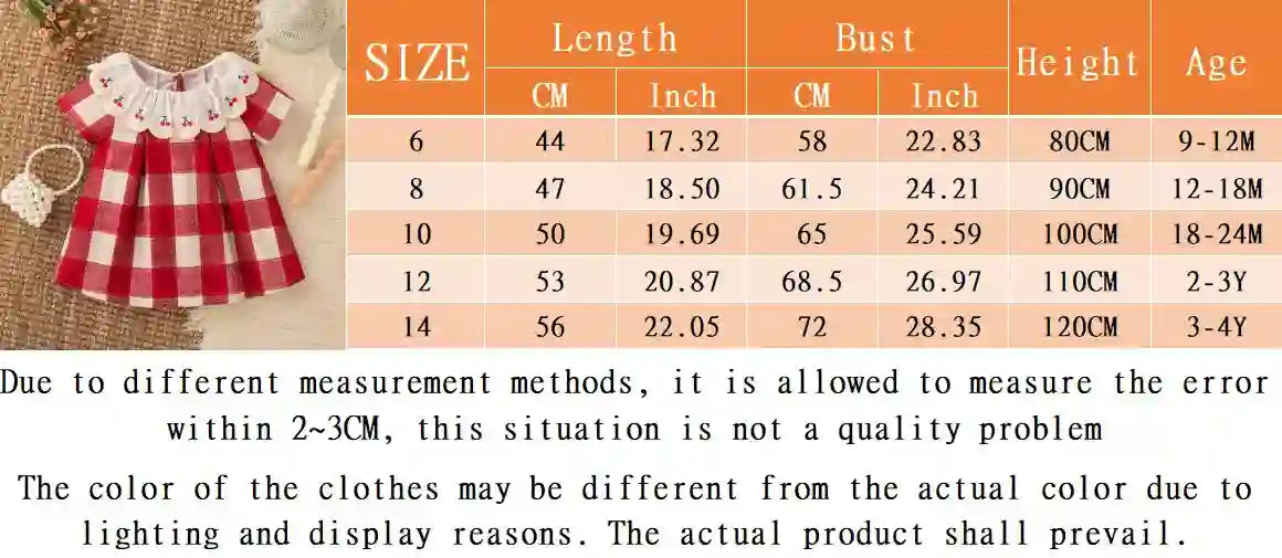 Brighten your little one's wardrobe with this charming red cherry plaid summer dress. Crafted for comfort and style, the classic plaid pattern brings timeless appeal while the lightweight fabric keeps her cool during warm days. Perfect for playdates, family gatherings, or casual outings, this dress combines practicality with adorable design. The cheerful red tones and traditional plaid print make it easy to mix and match with accessories. Give your baby girl a dress that's as sweet as she is—comfortable enough for all-day wear and pretty enough to turn heads.