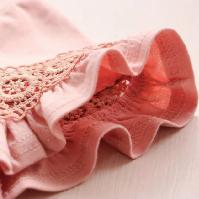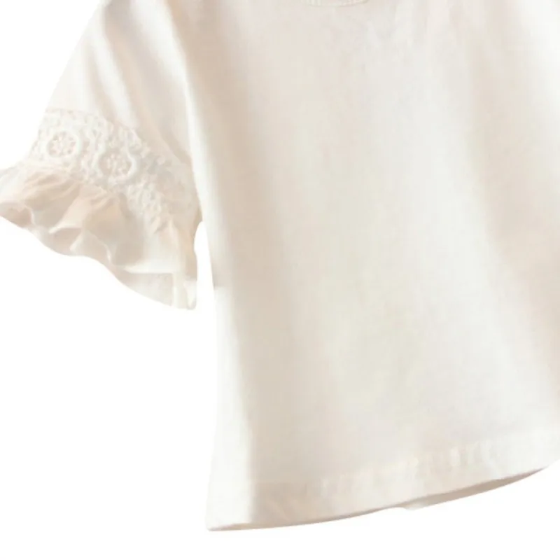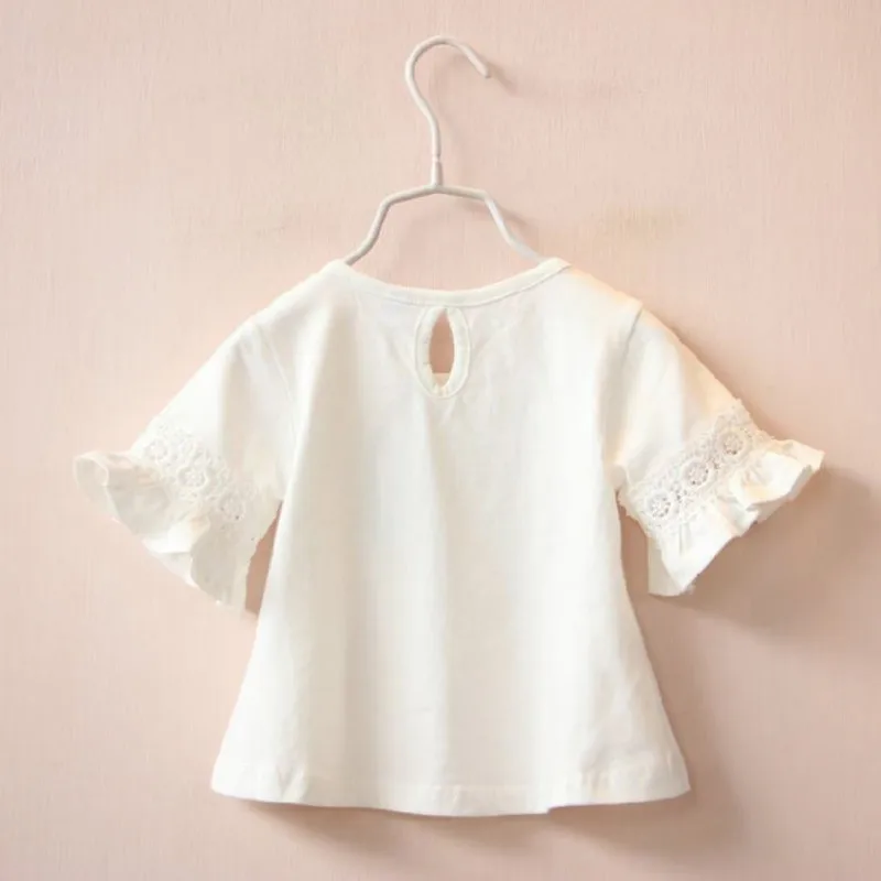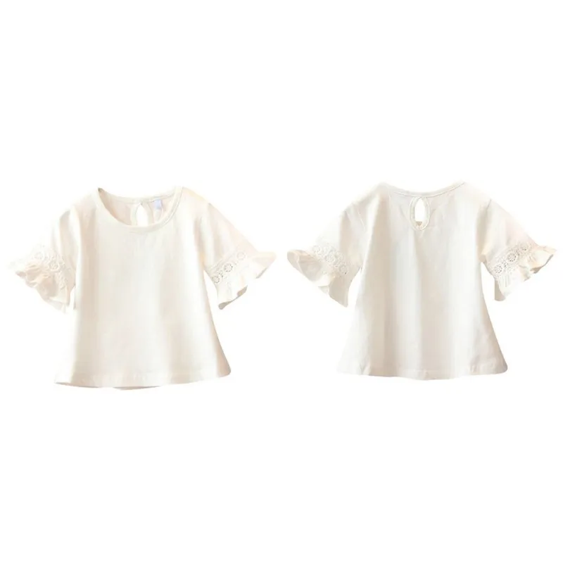 Summer Children Baby Girl Clothes Flare Sleeve Solid Print Lace Tops T-Shirts Kids Tops Casual T Shirts Children's Clothing