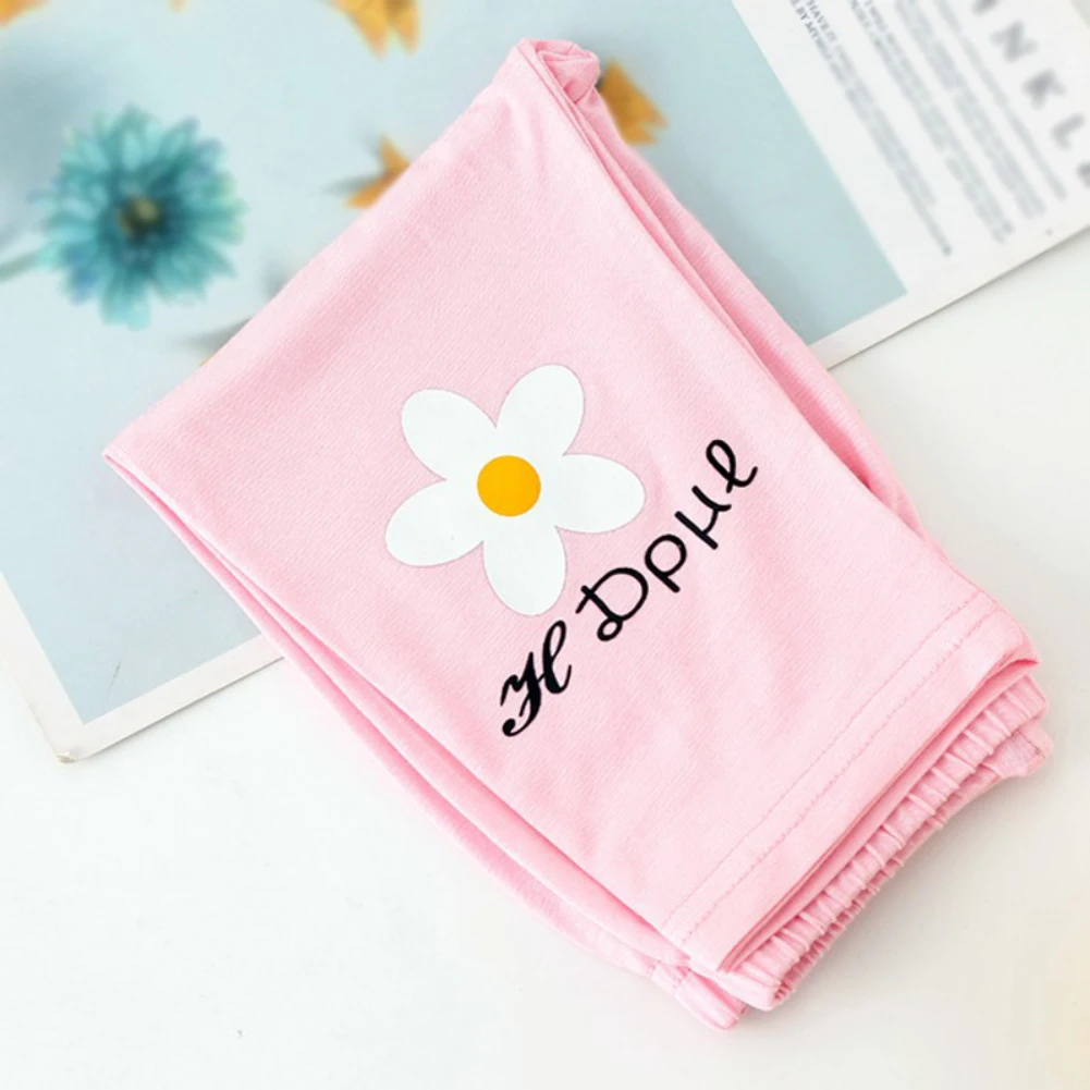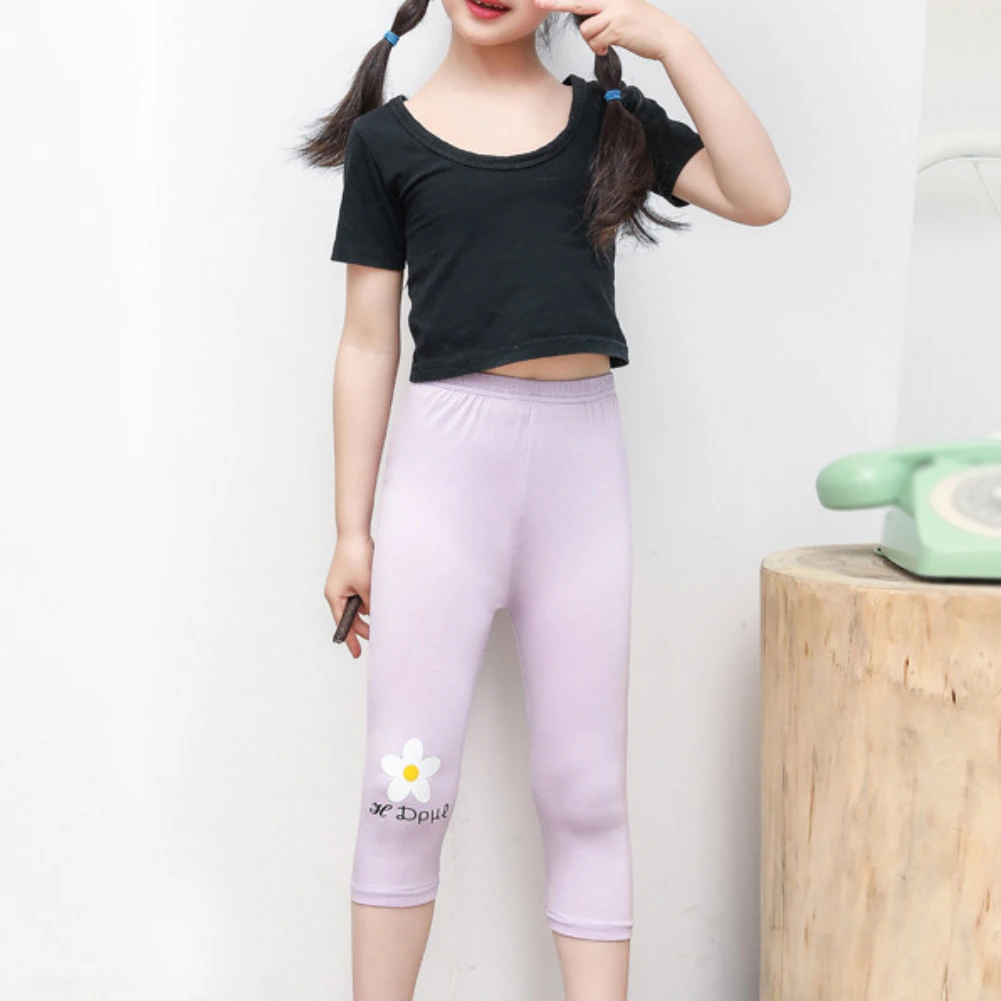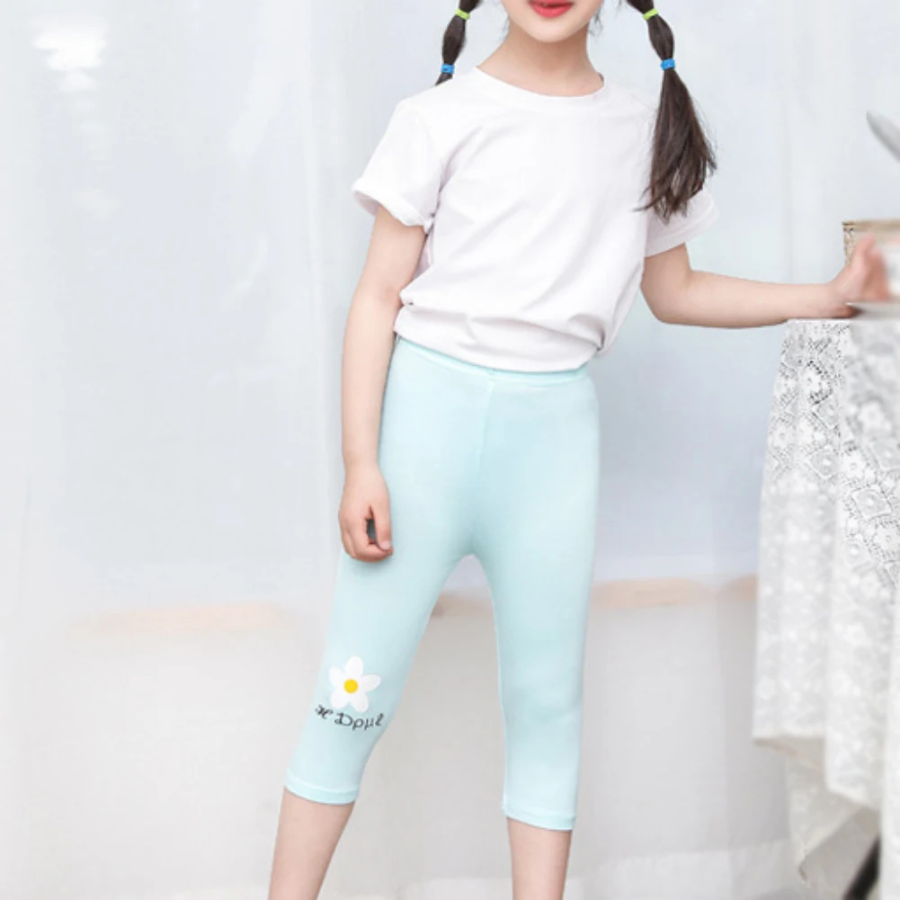 Summer Girls Leggings Solid Flower Print High Elastic Leggings Kids Breathable Absorbent Soft Skinny Pants