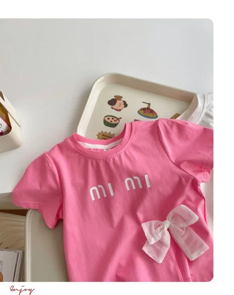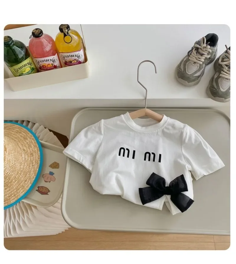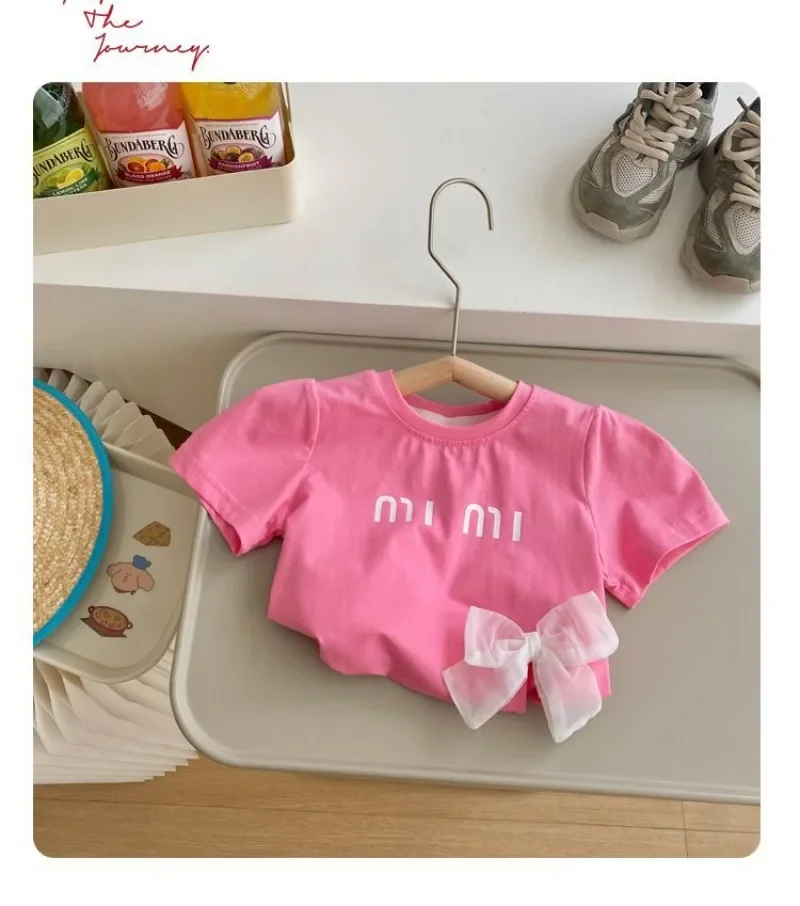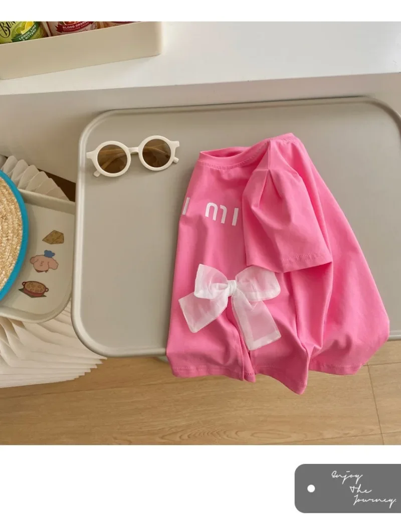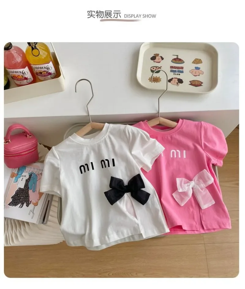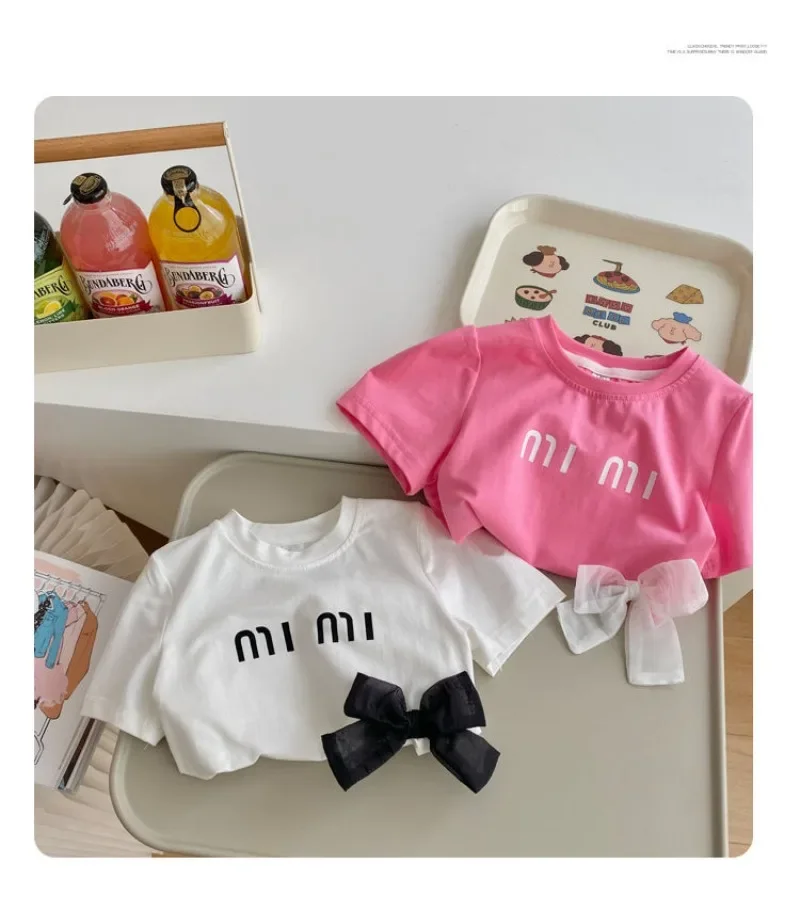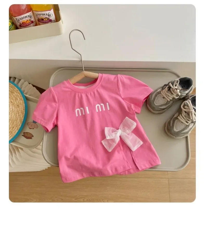 Alba Cotton Sleeve Tees Summer Kids Sweet Slit Children Beaded