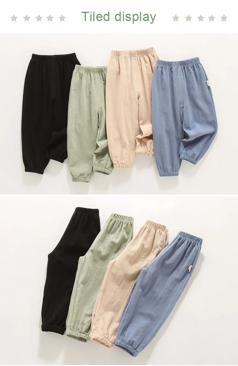 1 To 5 Years Summer Thin Kids Solid Color Pants Boys Girls Casual Trousers Breathable Beam Foot Lantern Pants Children's Clothes