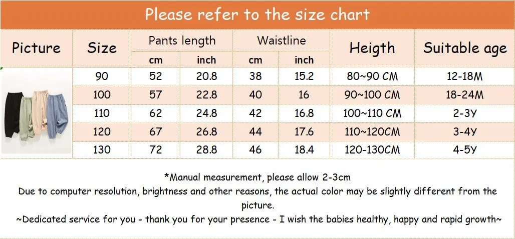 Size 120 --- Length: 67cm --- Waistline:44cm --- Age:3-4Y --- Height: 120CM