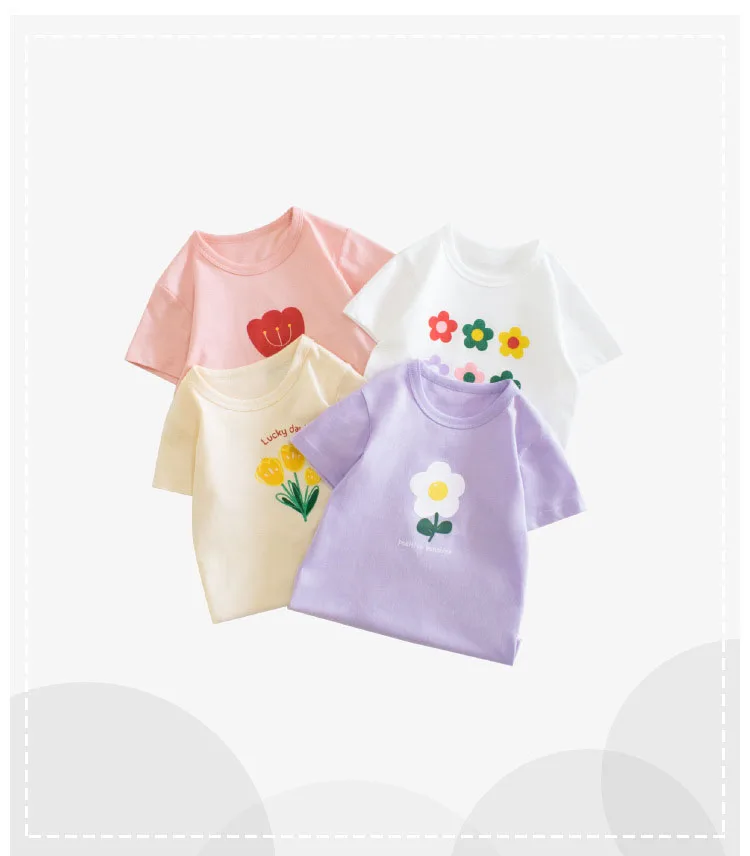 Alma Clothes Summer Cotton T Shirt Sleeve Infant Top Cartoon Flower