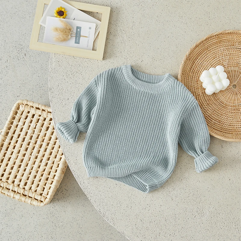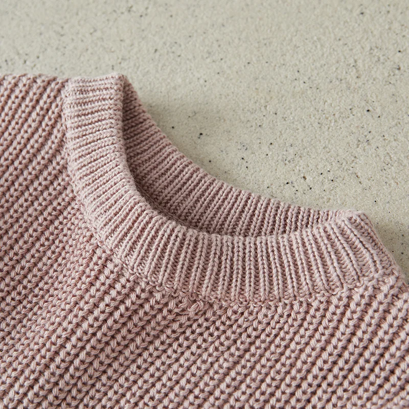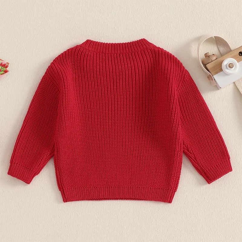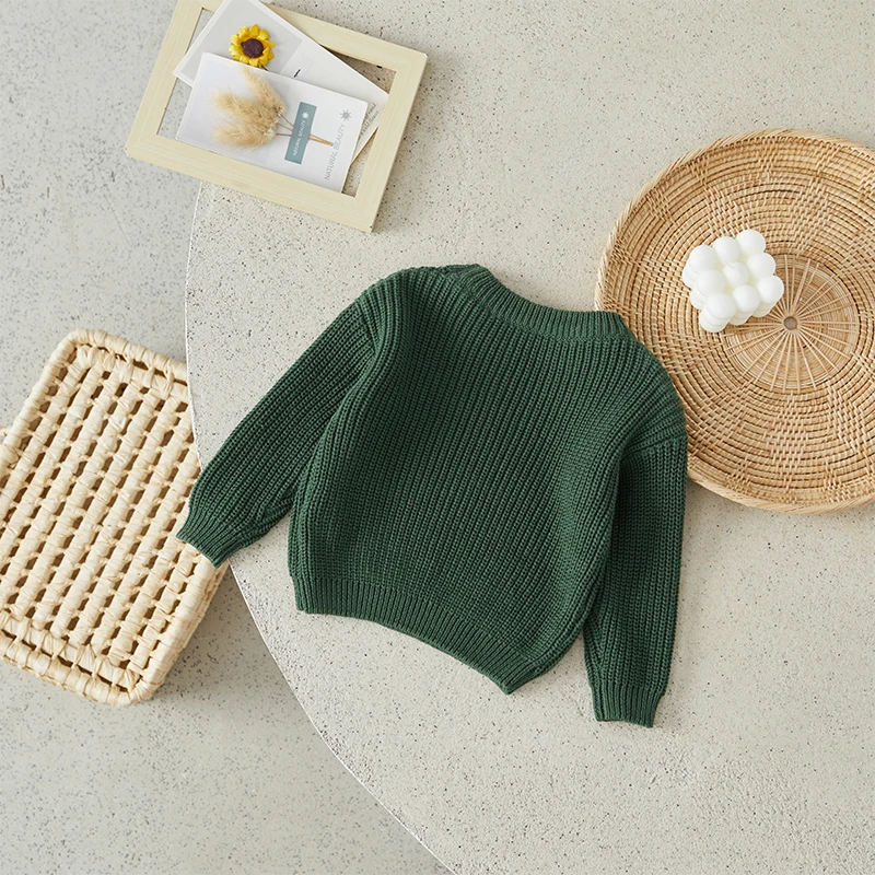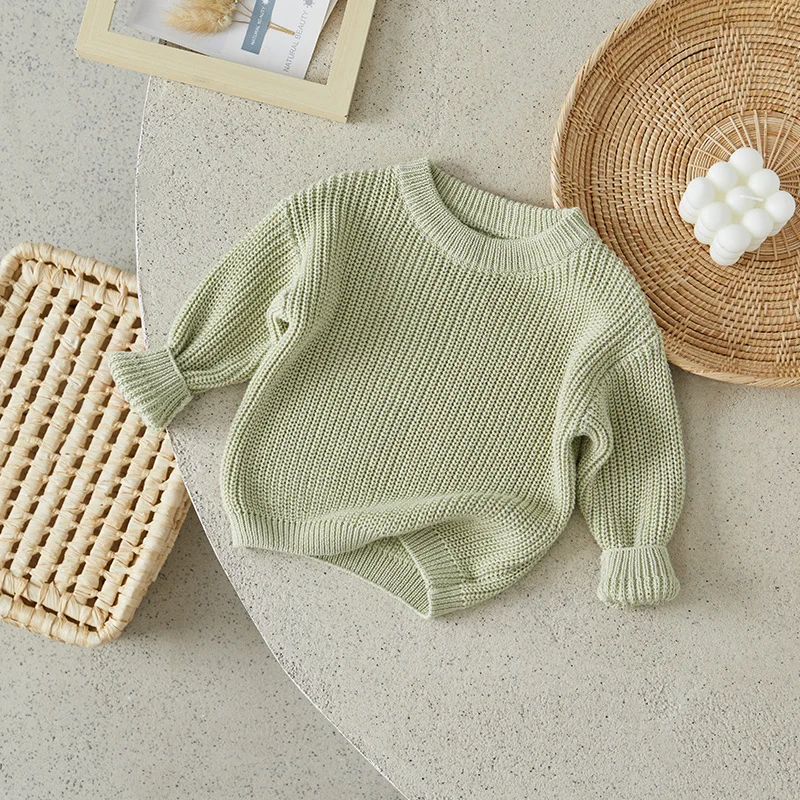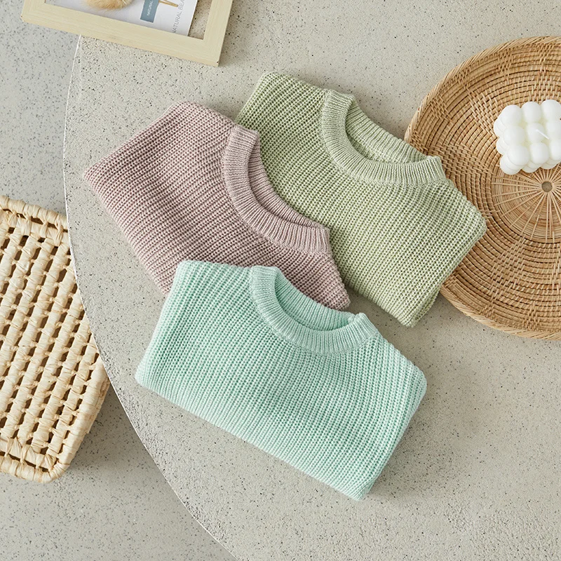 Little Boy Girl Knit Sweater Causal Solid Color Crew Neck Long Sleeve Pullover Tops for Fall Winter