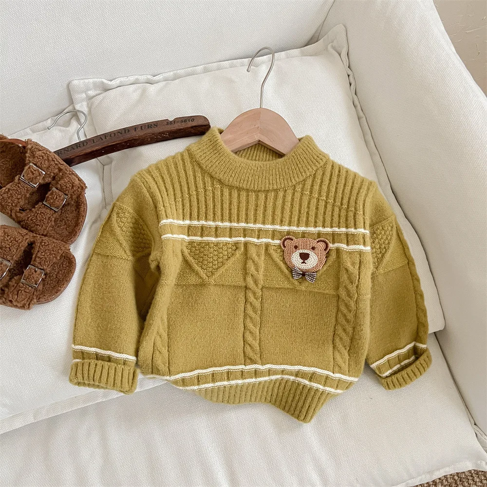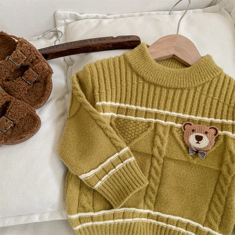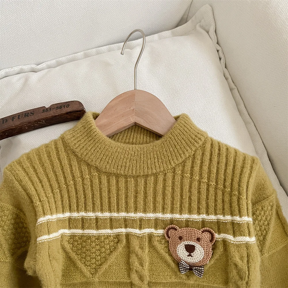 Amets Solid Color Cartoon Bear Pollover Sweaters