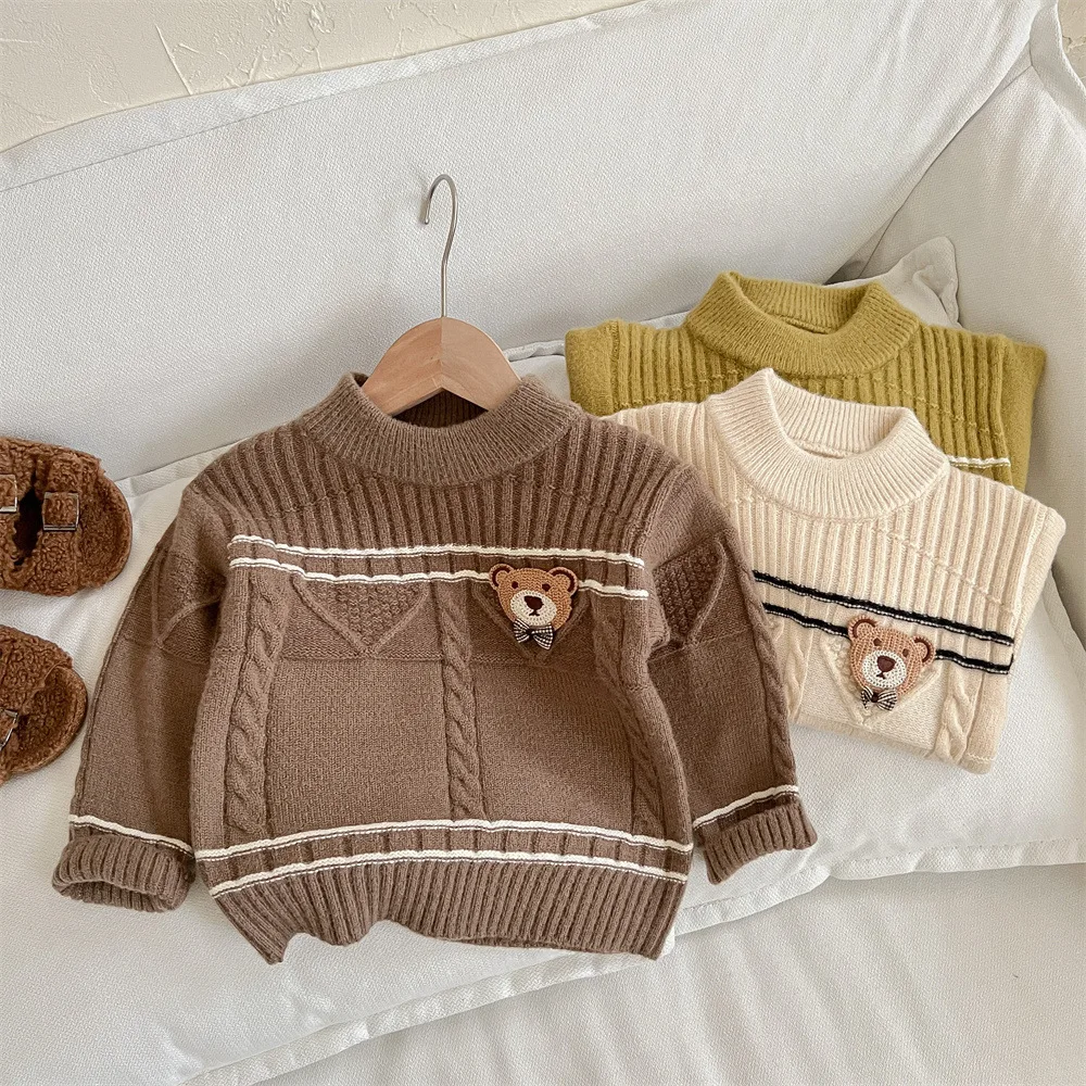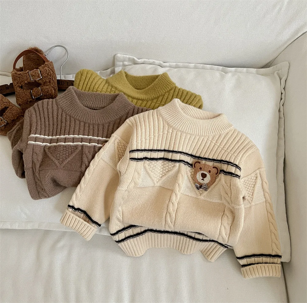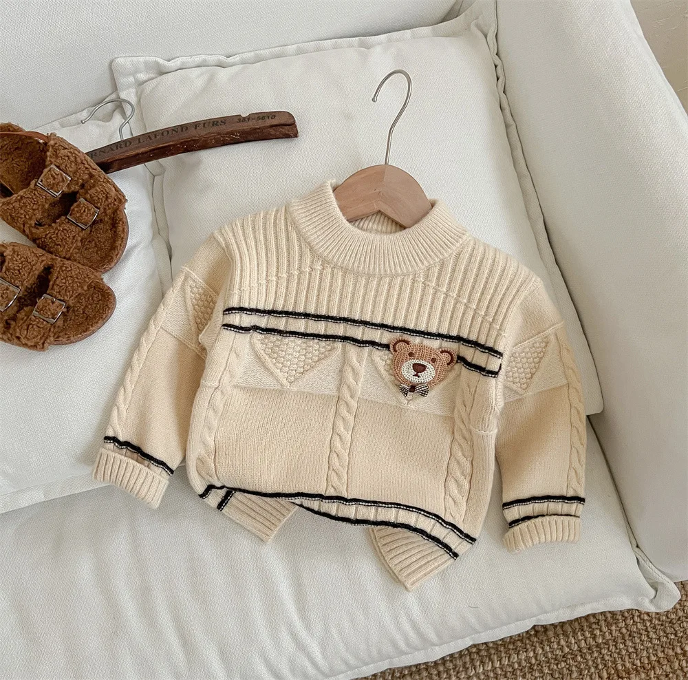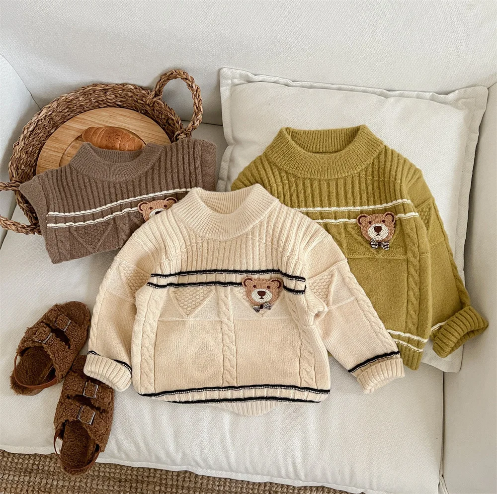 Amets Solid Color Cartoon Bear Pollover Sweaters