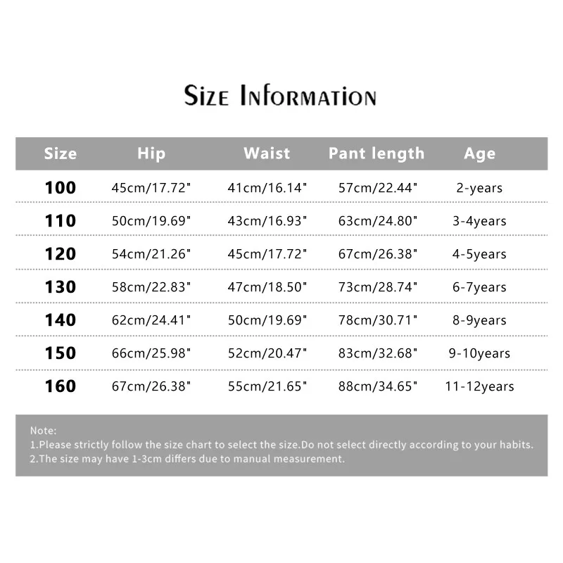 Size---Hip----------- Waist---------Pant length------Age