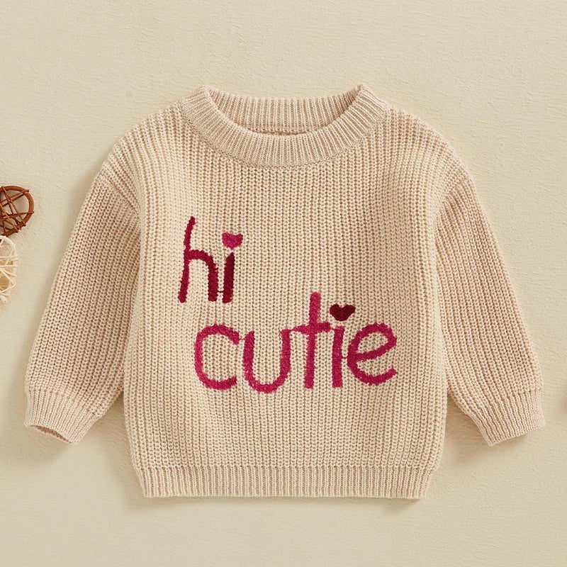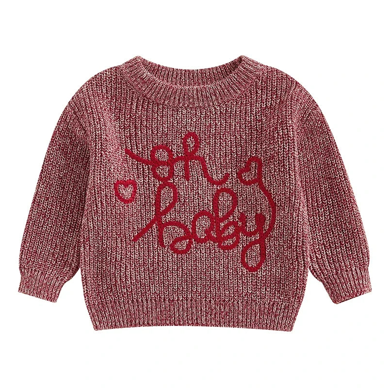 Baby Sweater, Long Sleeve Crew Neck Letters Winter Warm Knit Pullover Valentines Day Clothes for Girls Boys