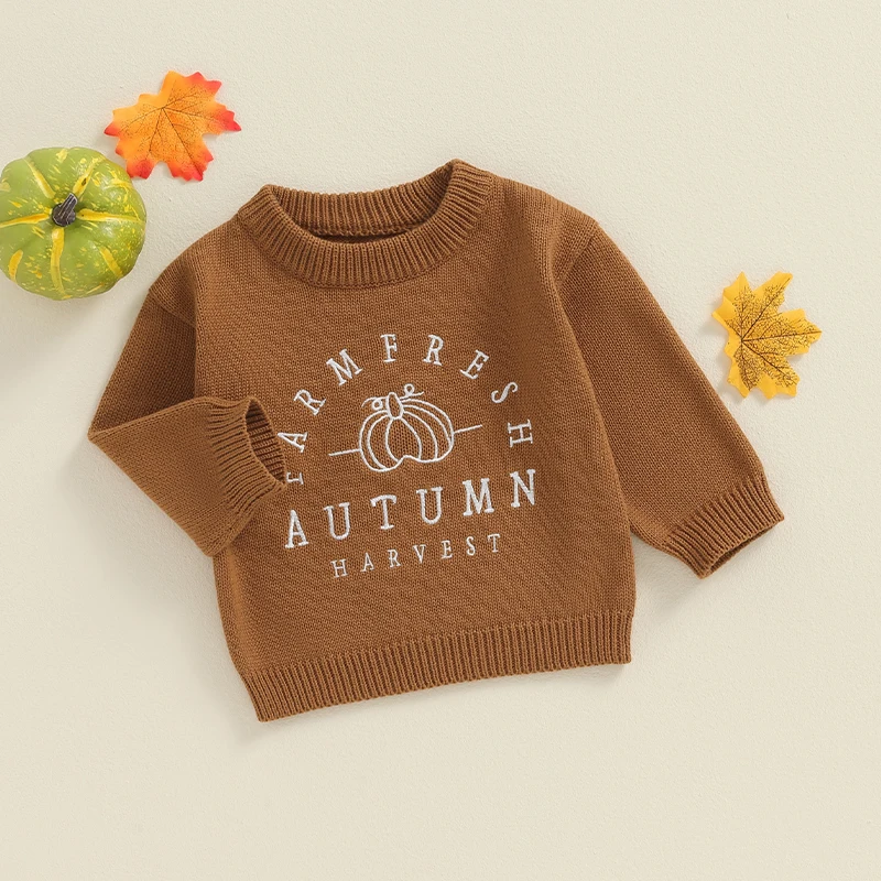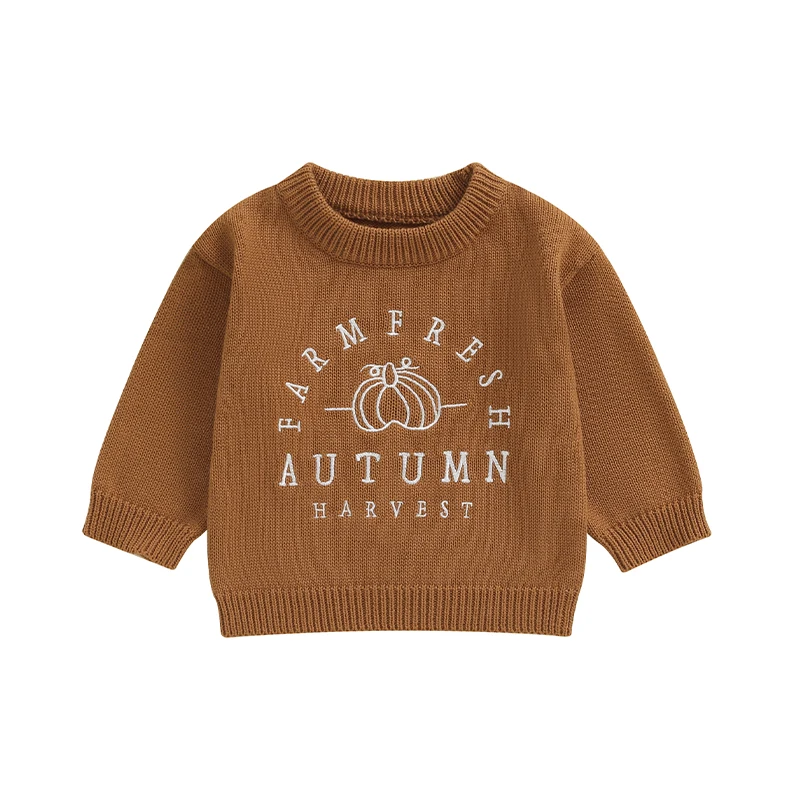 Kids Sweater, Long Sleeve Crew Neck Letters Pumpkin Warm Winter Sweater Halloween Clothes for Girls Boys