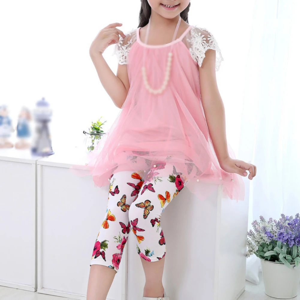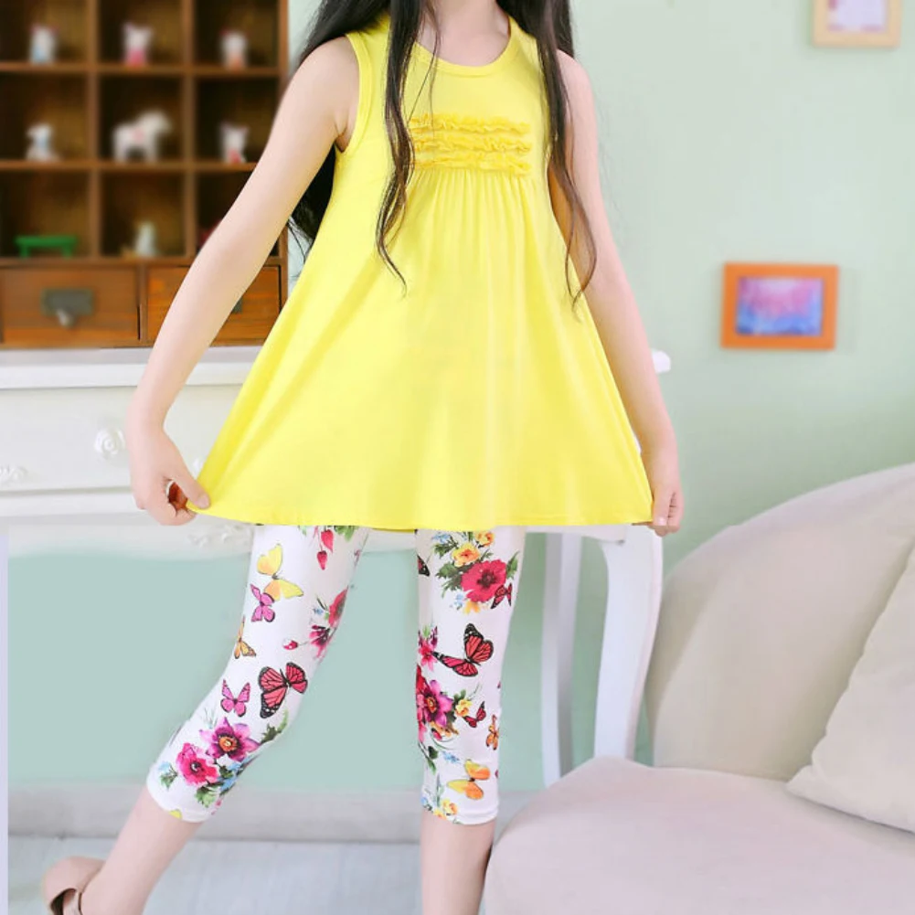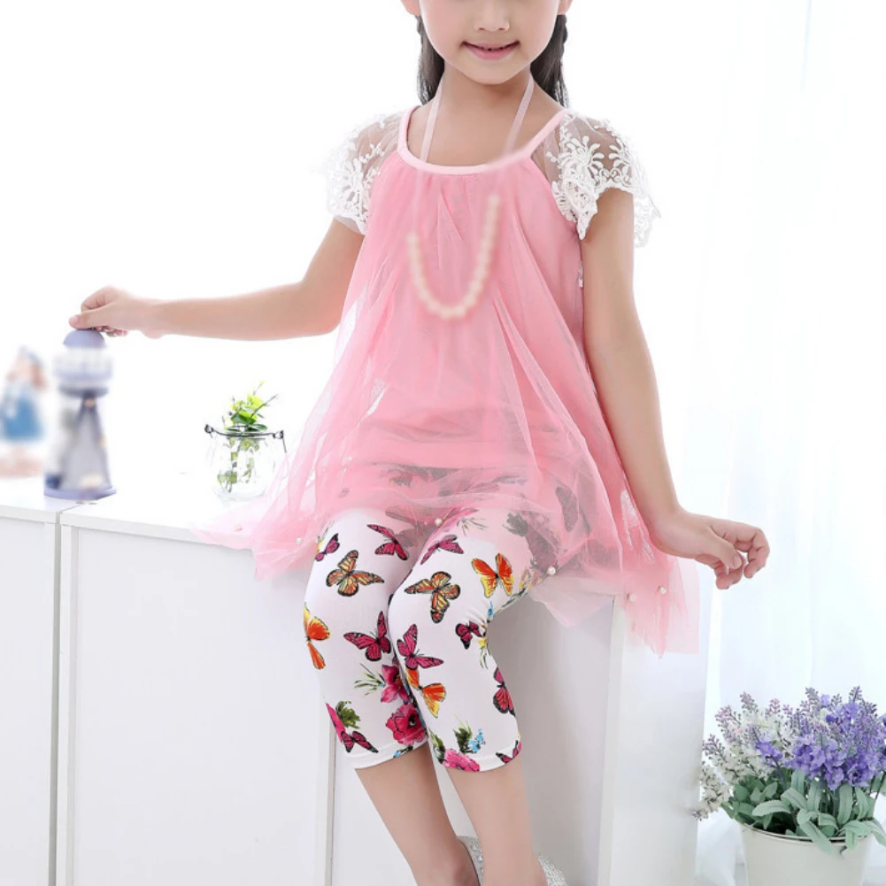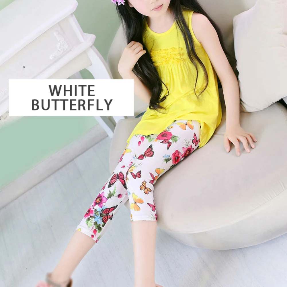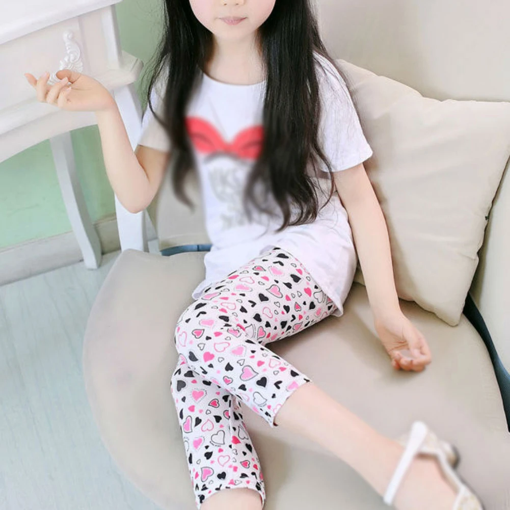 Summer Girls Seven-Point Leggings Colorful High Elasticity Breathable Leggings with Flower Print Soft Skin-Friendly Pants