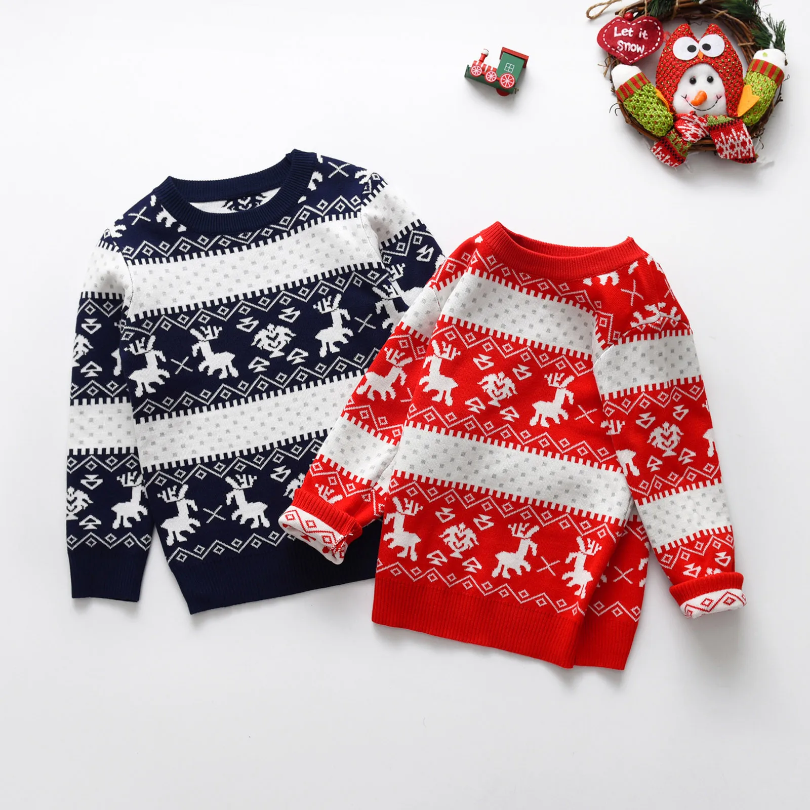 Toddler Christmas Boys Girls Winter Long Sleeve Cartoon Deer Jacquard Knit Sweater Warm Sweater