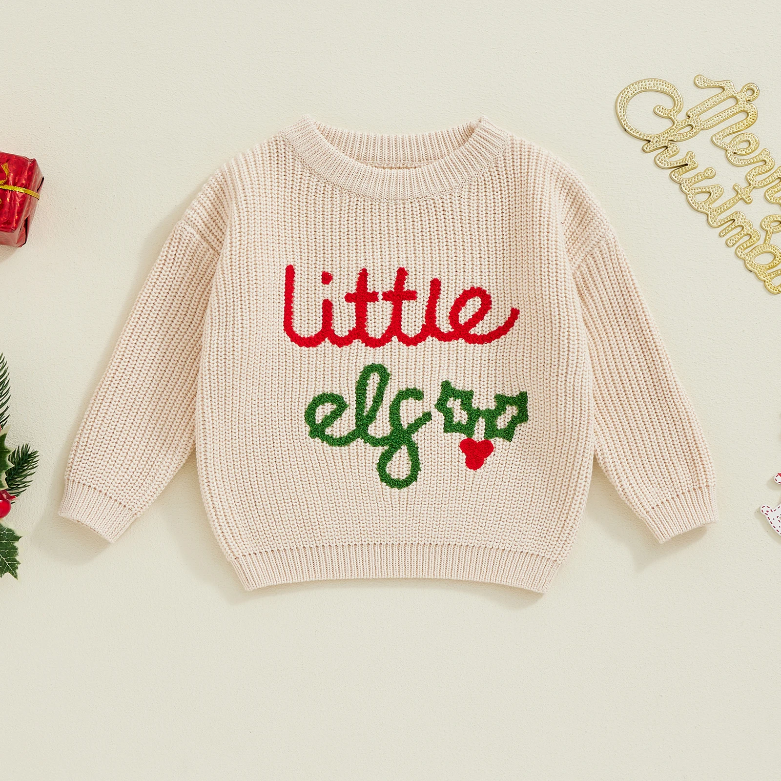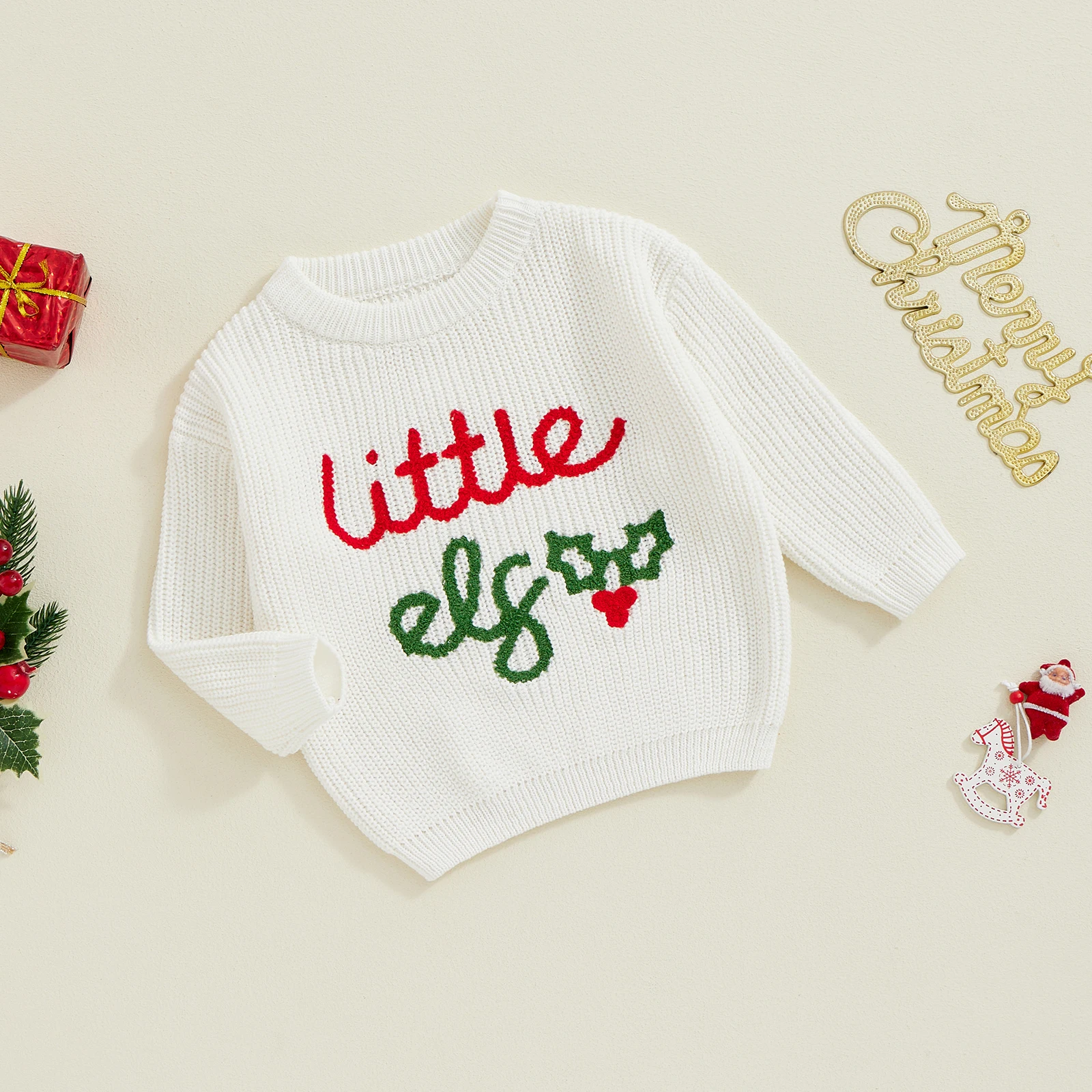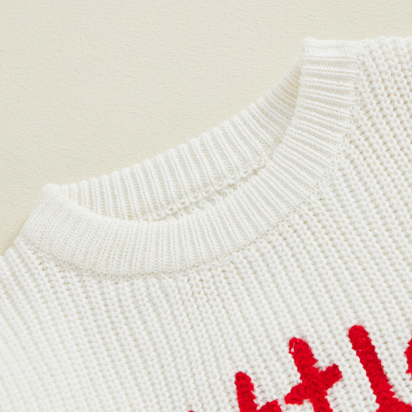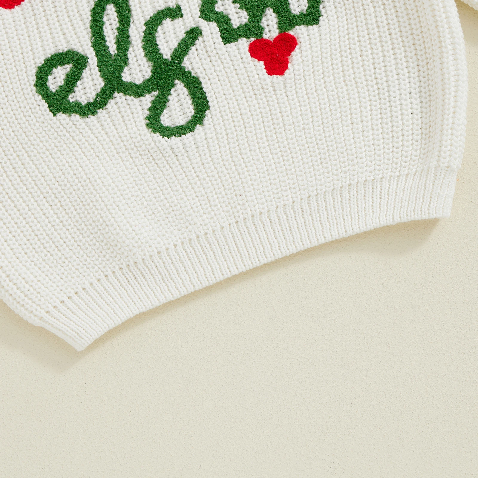Little Boy Girl Christmas Sweater Letter Embroidery Long Sleeve Round Neck Chunky Knitwear Pullover