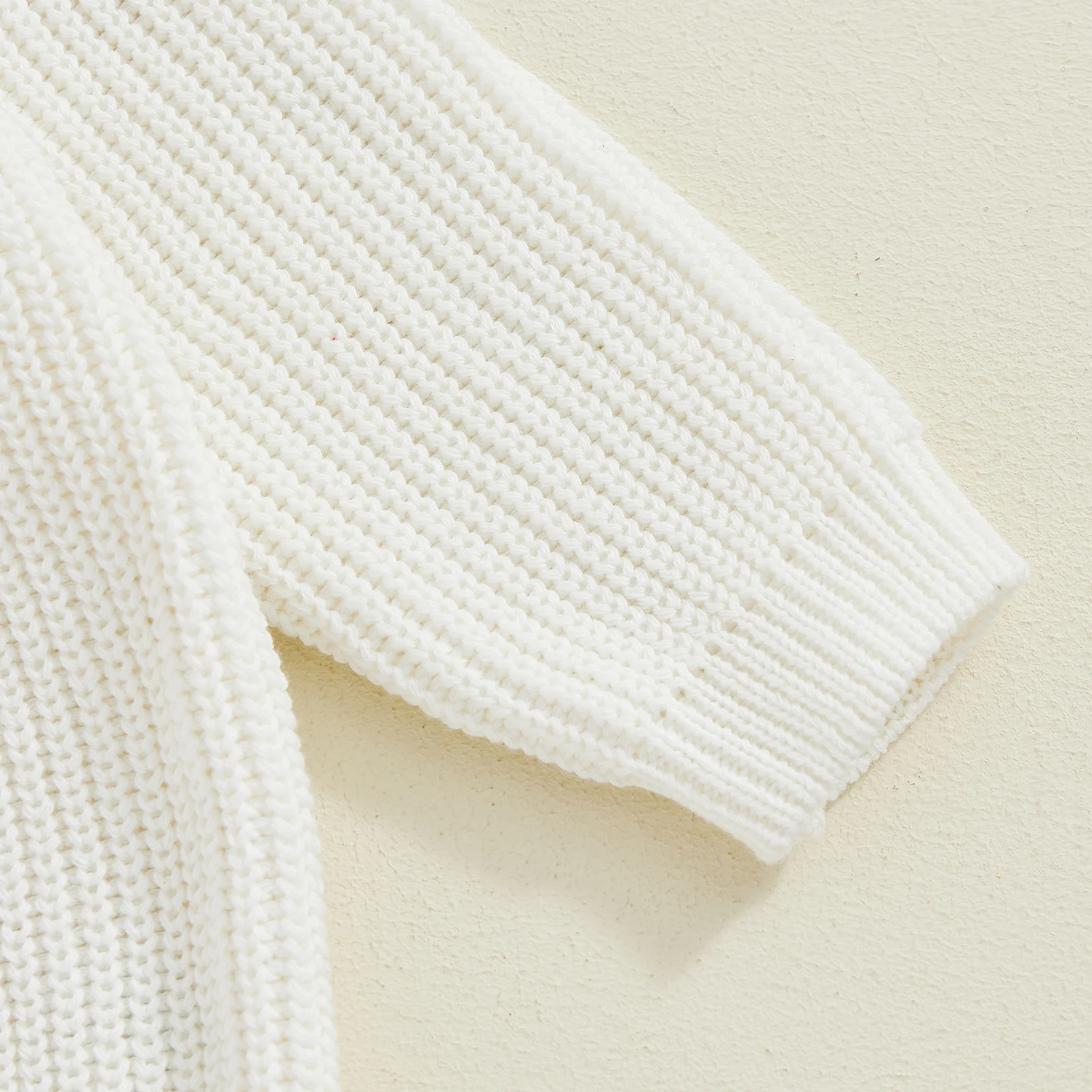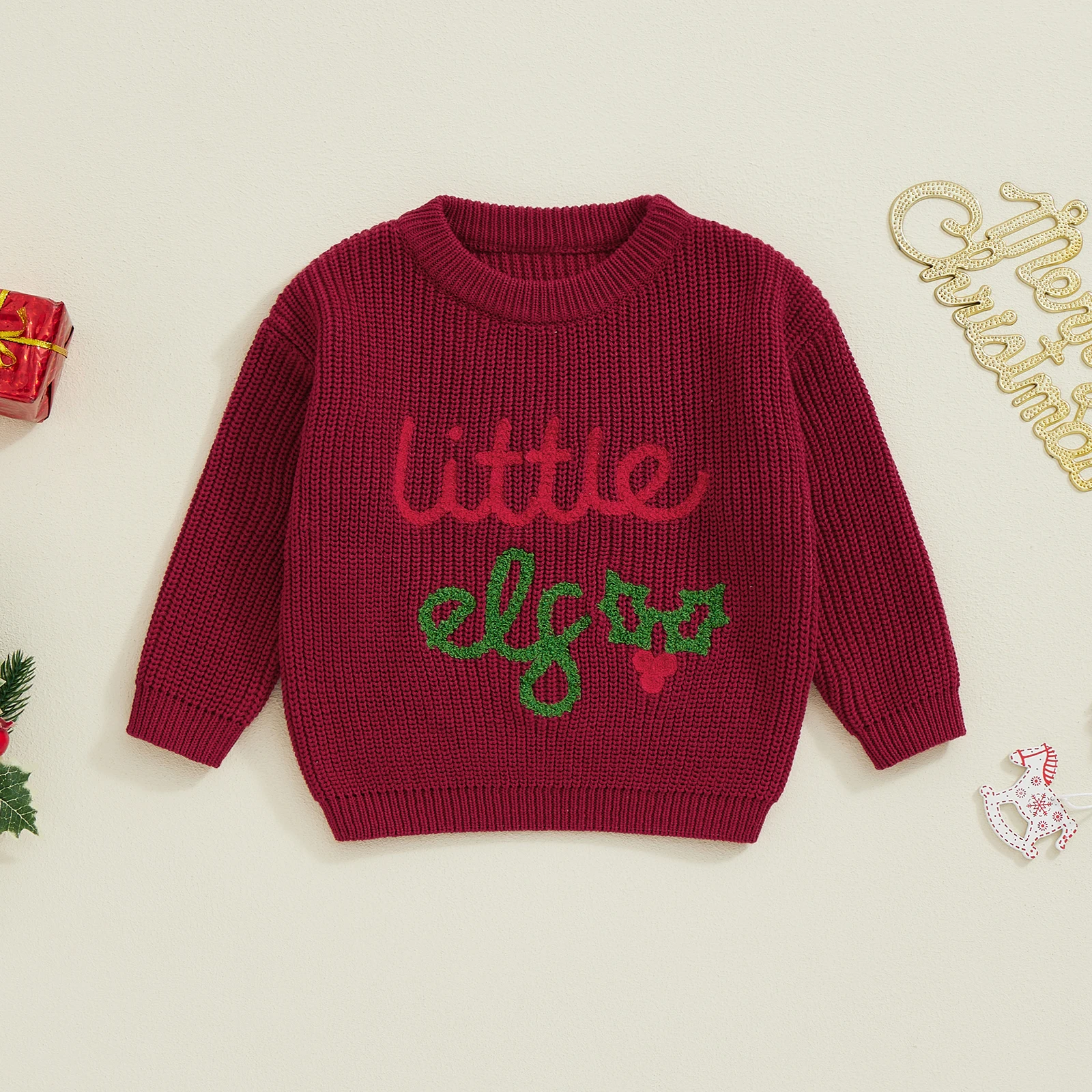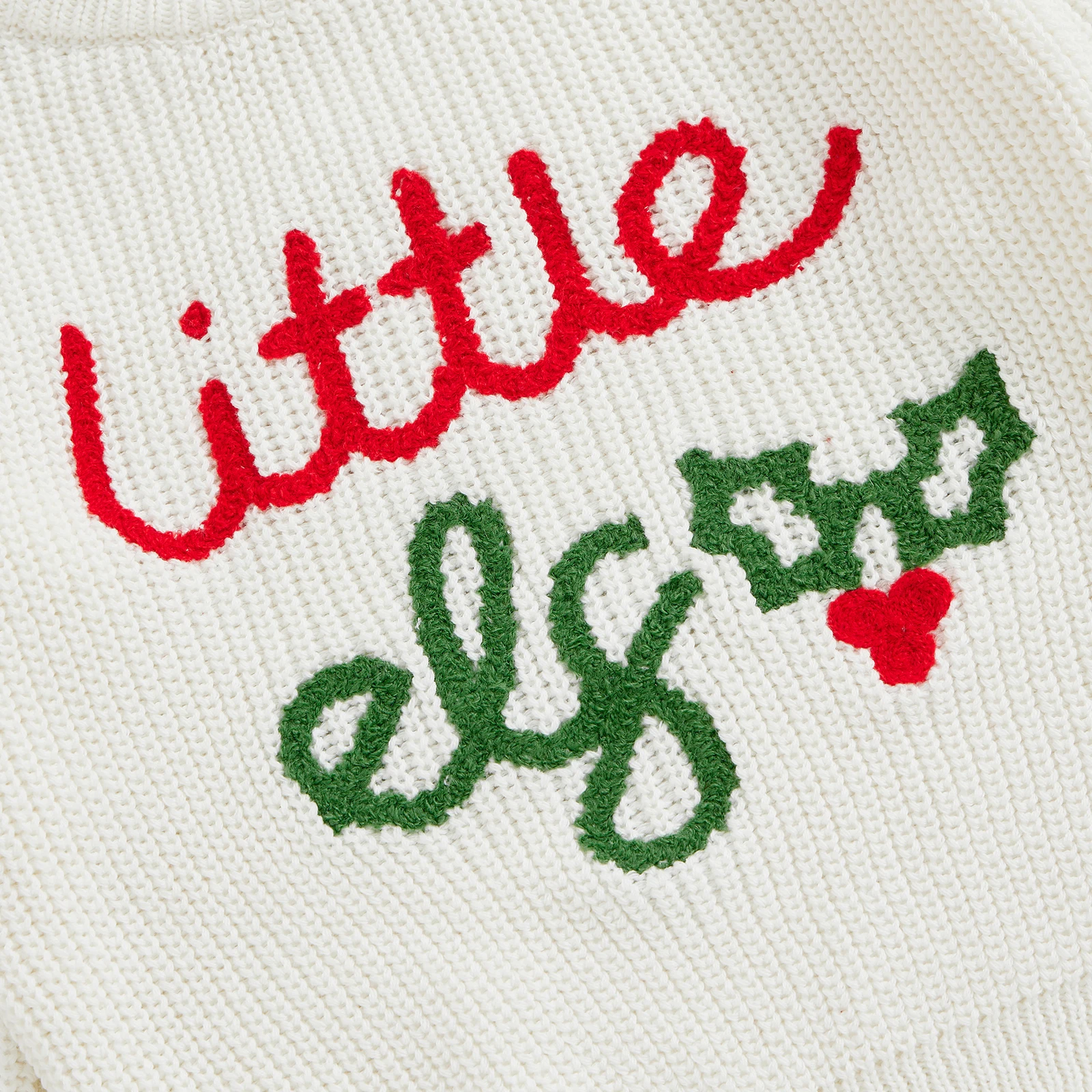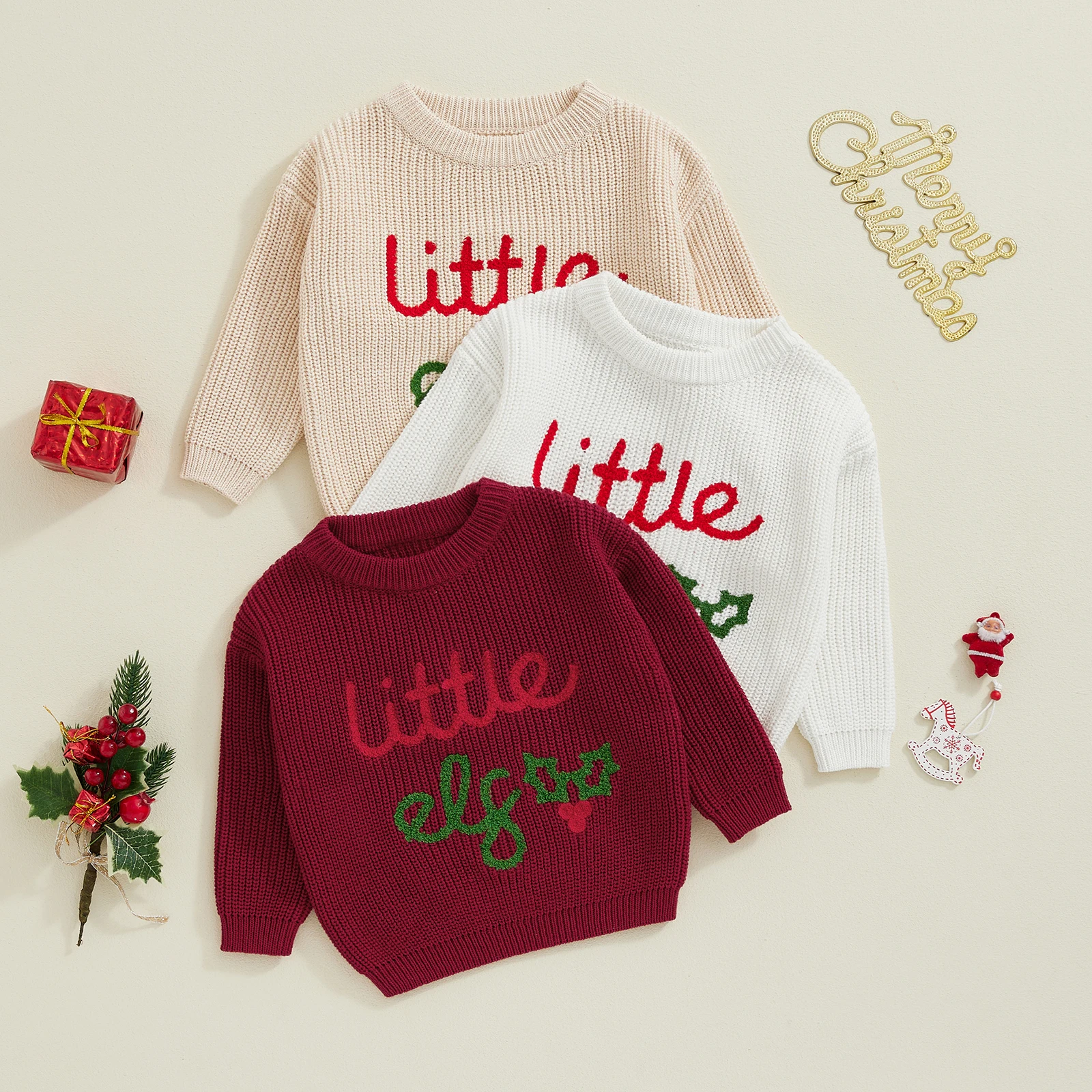 Little Boy Girl Christmas Sweater Letter Embroidery Long Sleeve Round Neck Chunky Knitwear Pullover