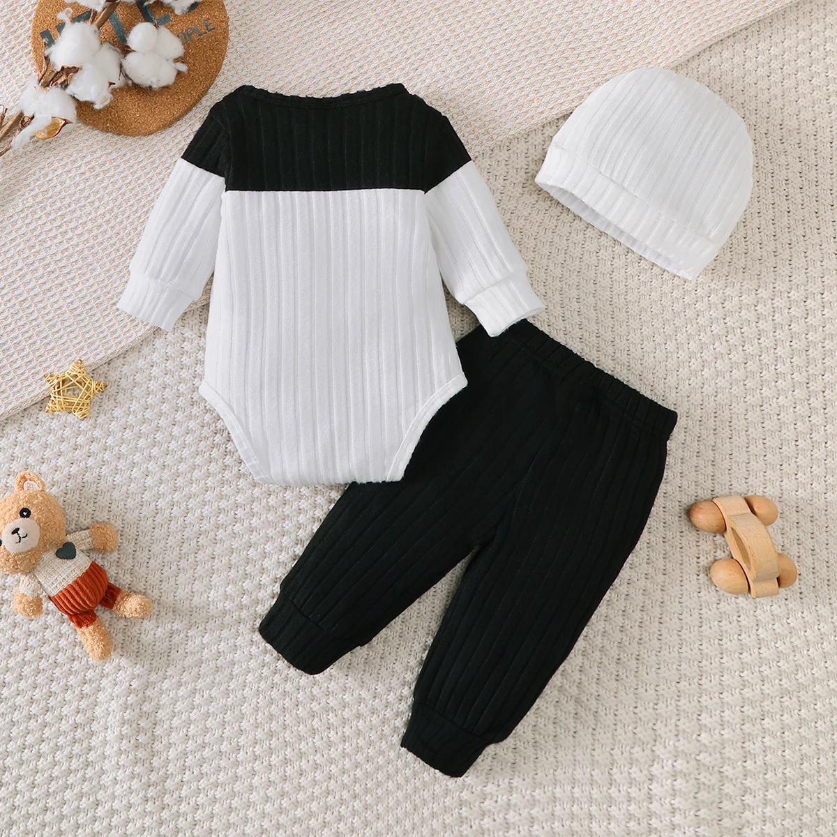 Introduce your little one to refined style with this sophisticated color-blocked pants set designed for infants. Featuring bold, complementary hues thoughtfully arranged for visual interest, the set pairs comfortable, well-fitted pants with a coordinating hat for a polished ensemble. The quality construction ensures durability through multiple wears and washes, while the soft fabrics provide the gentle comfort infants deserve. Perfect for special occasions or everyday sophistication, this set makes dressing your baby effortless while maintaining an elevated aesthetic.