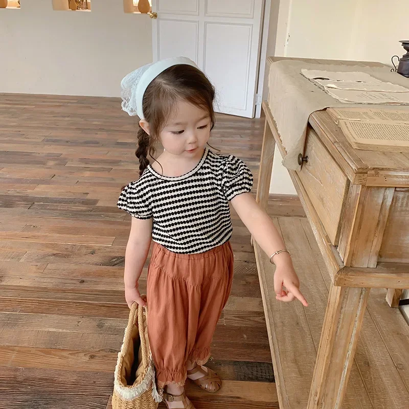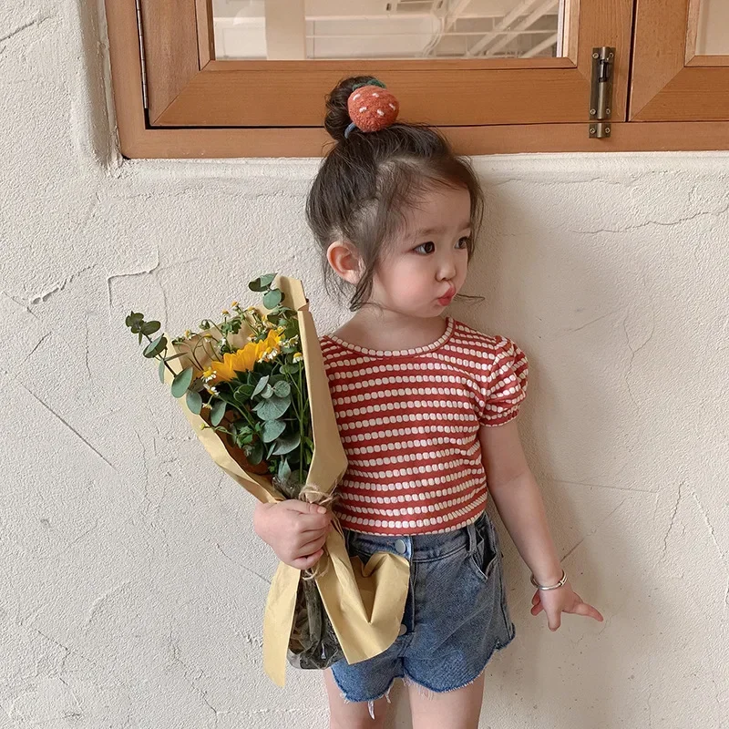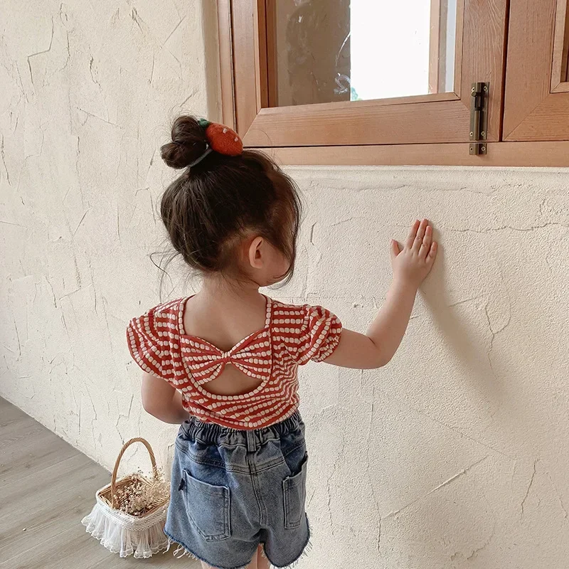 Carlota Kids Striped Puff Fashion Bowknot Backless Children Clothing