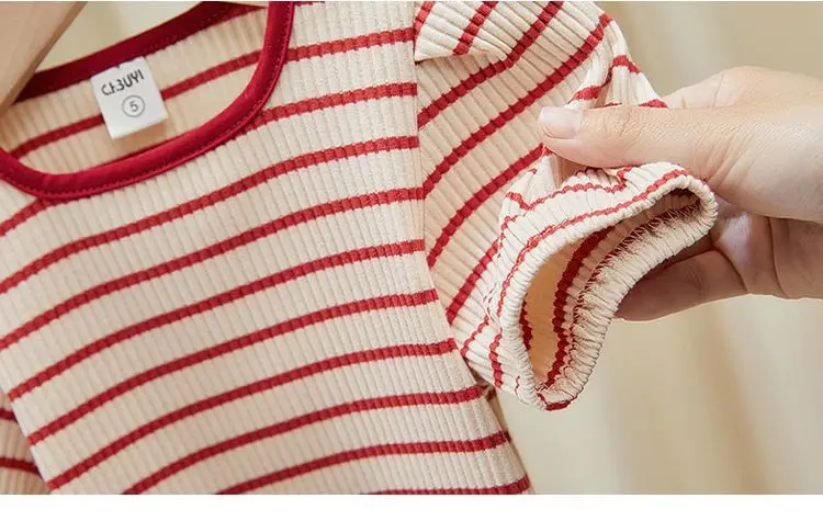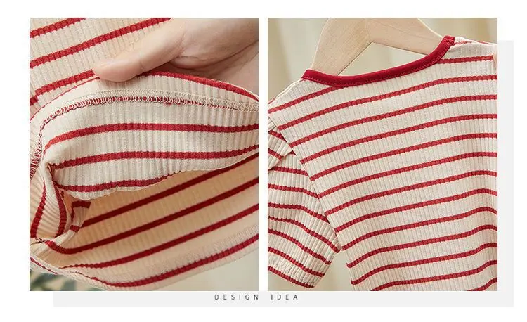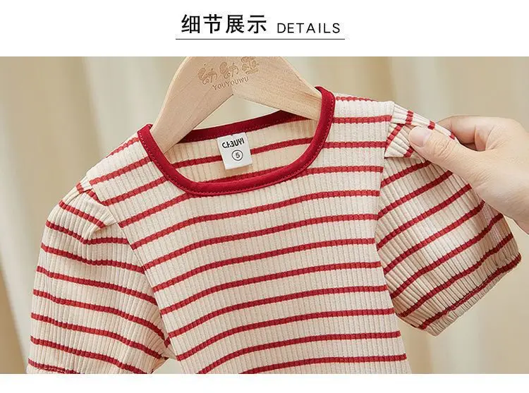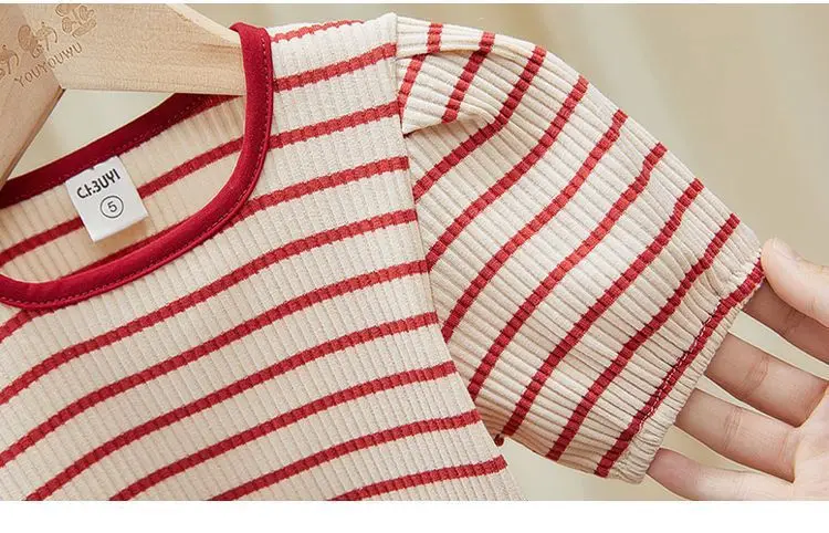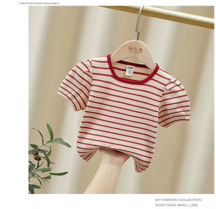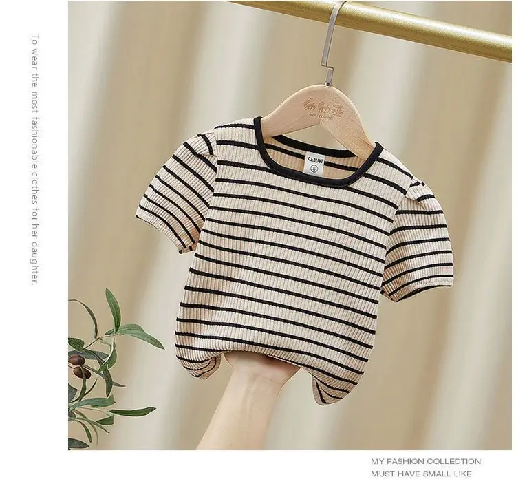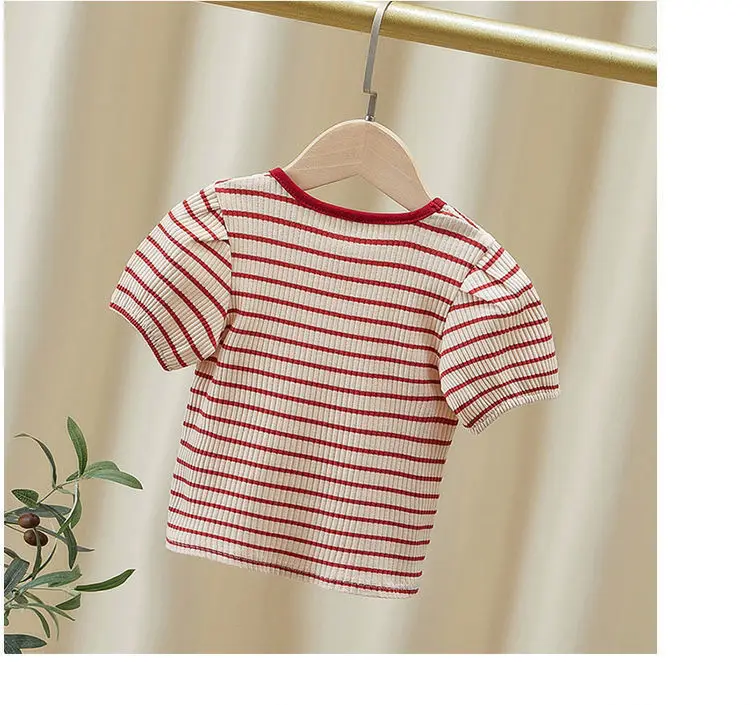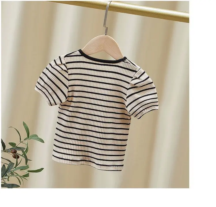 Baby Girls Short Sleeved T-Shirt 2024 Summer Kids Top Tees Toddler Striped Printed Shirts Children's Clothes Korean Style