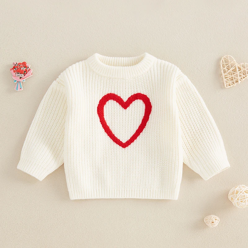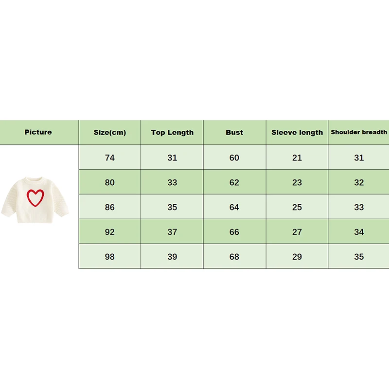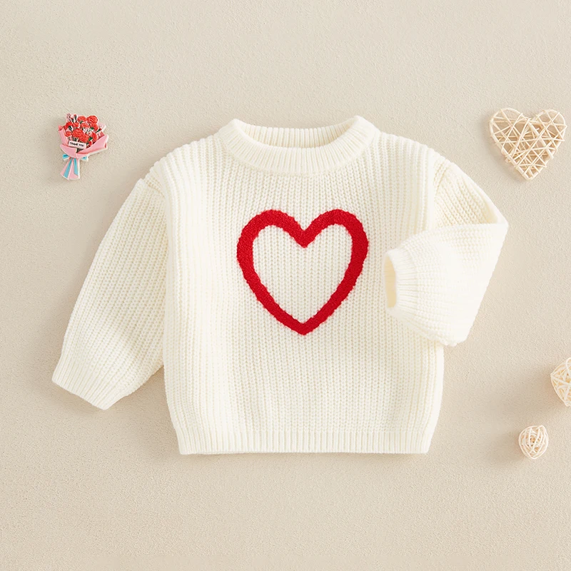 Toddler Girls Fall Sweaters Fashion Love Heart Pattern Long Sleeve Crew Neck Baby Pullovers