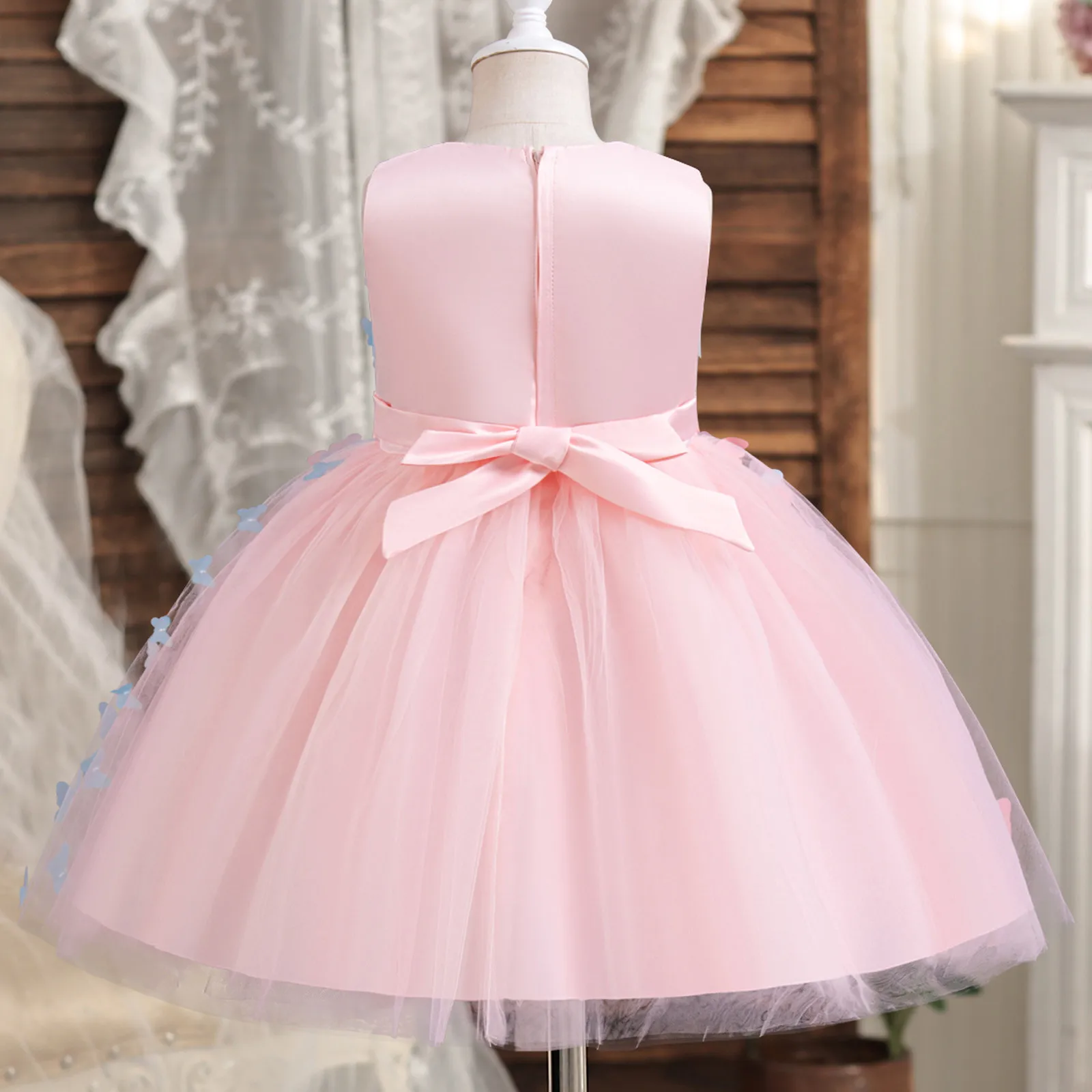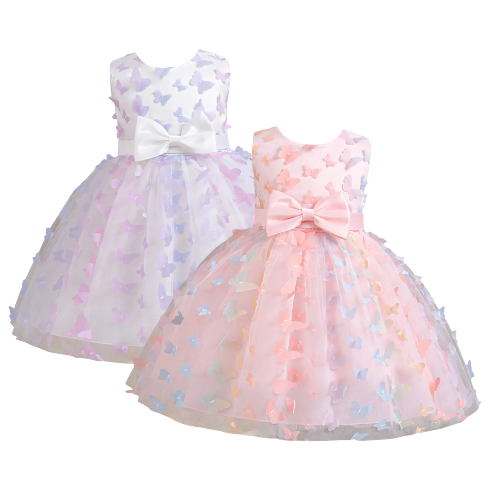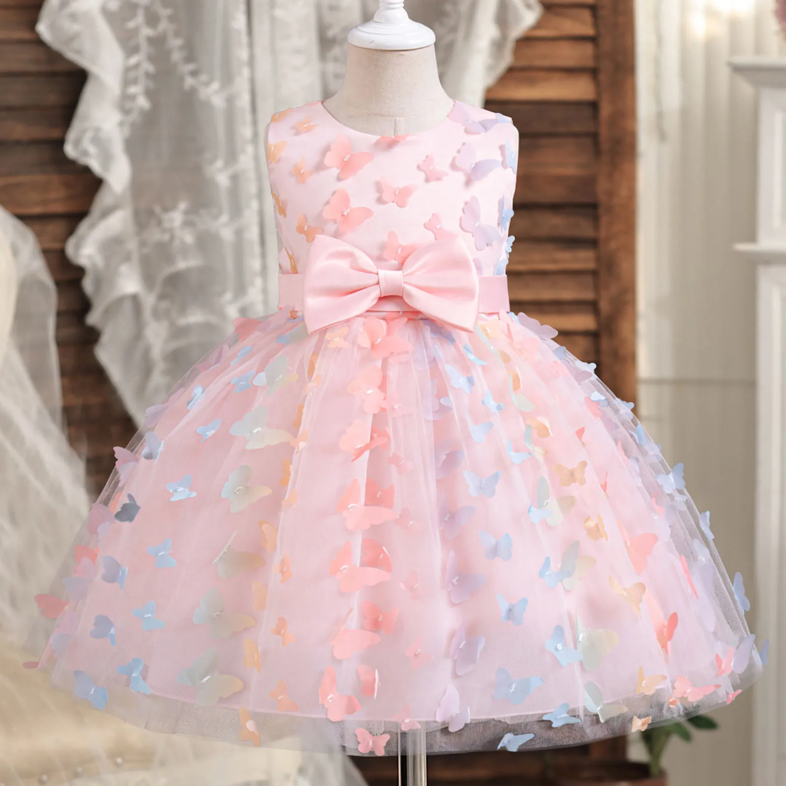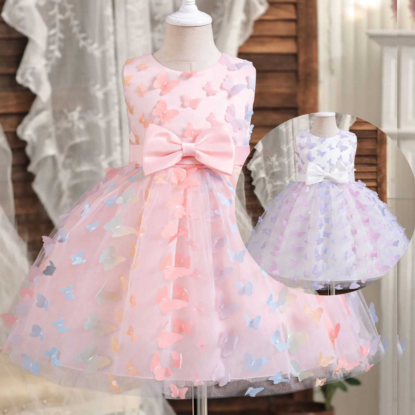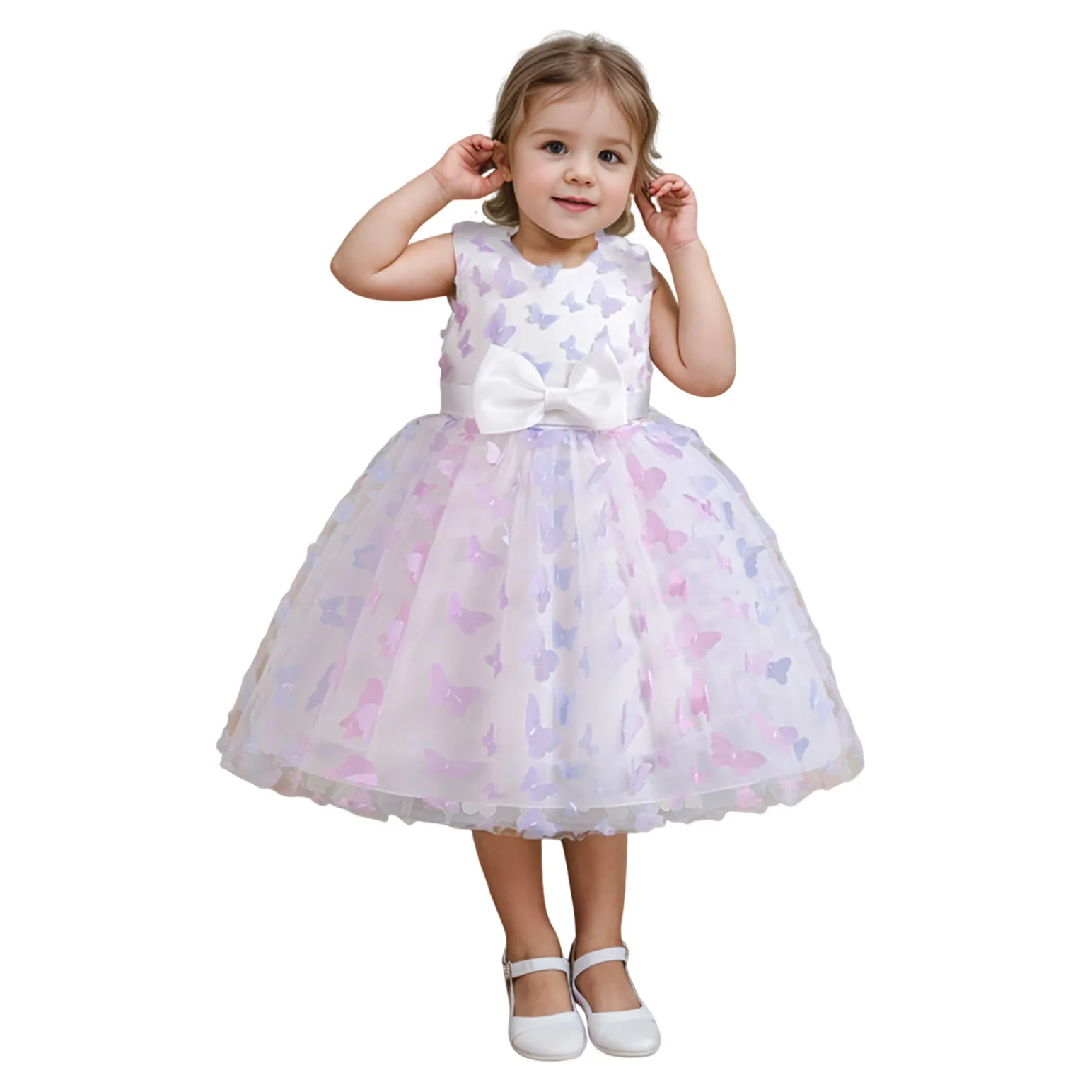 Child Girls Tulle Pageant Dress Butterfly Party Bow Knot Sleeveless Cosplay Costume Gown Dresses
