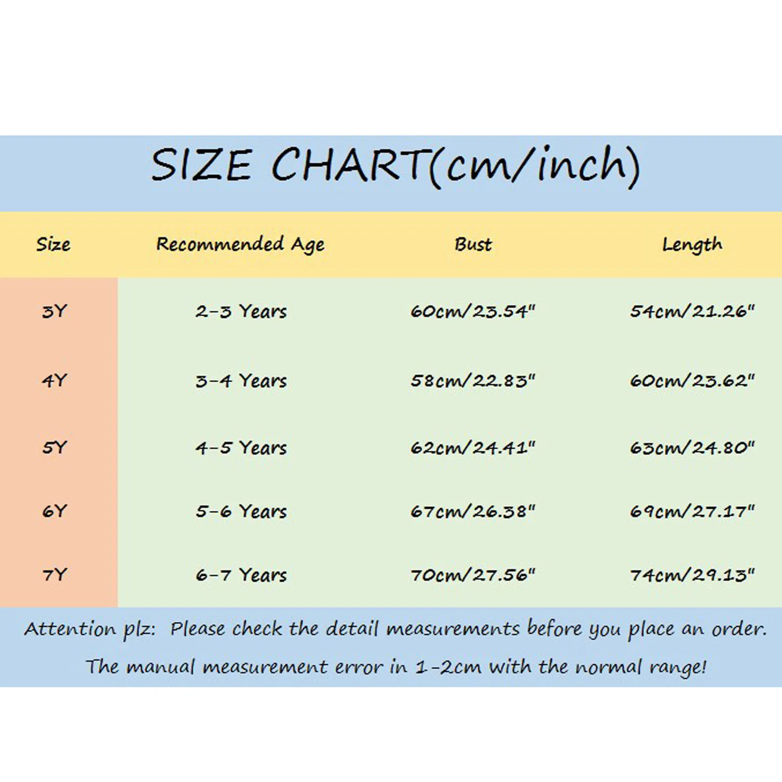 | Size:7Y | Recommended Age:6-7 Years | Bust:70cm/27.56'' | Length:74cm/29.13'' |