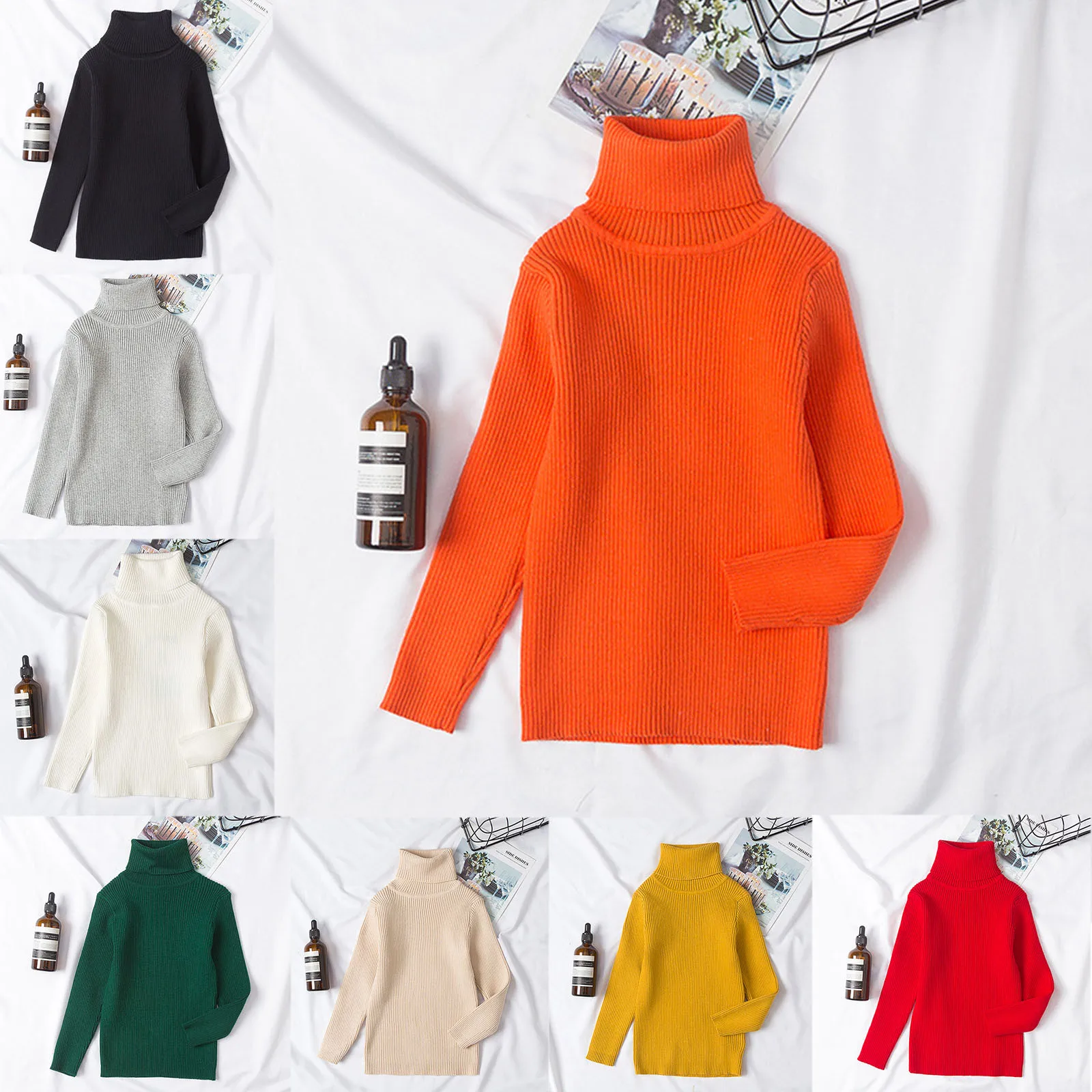 Toddler Kids Baby Knit Turtleneck Sweater Soft Solid Warm Sweater Crochet Pullover