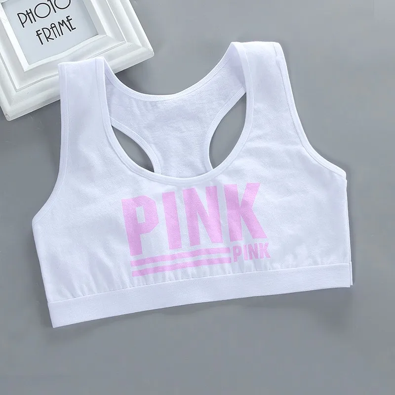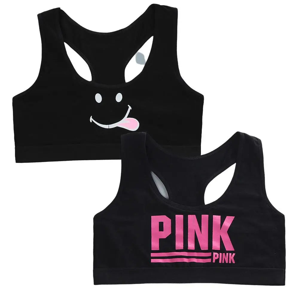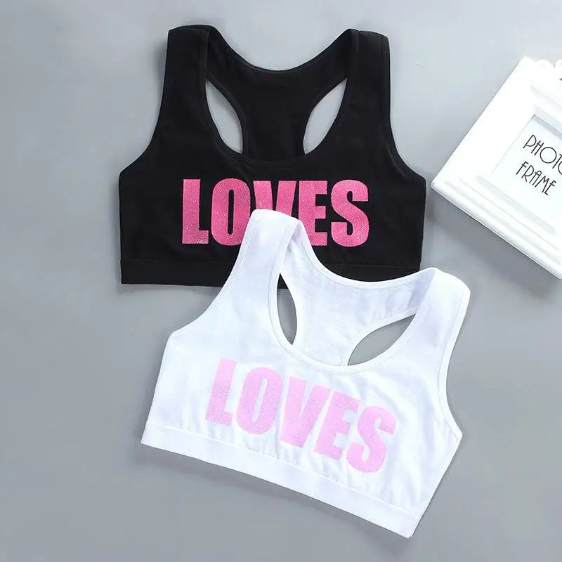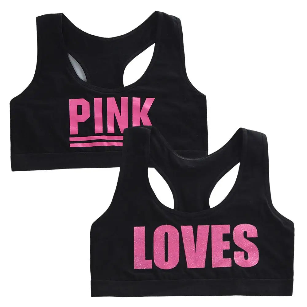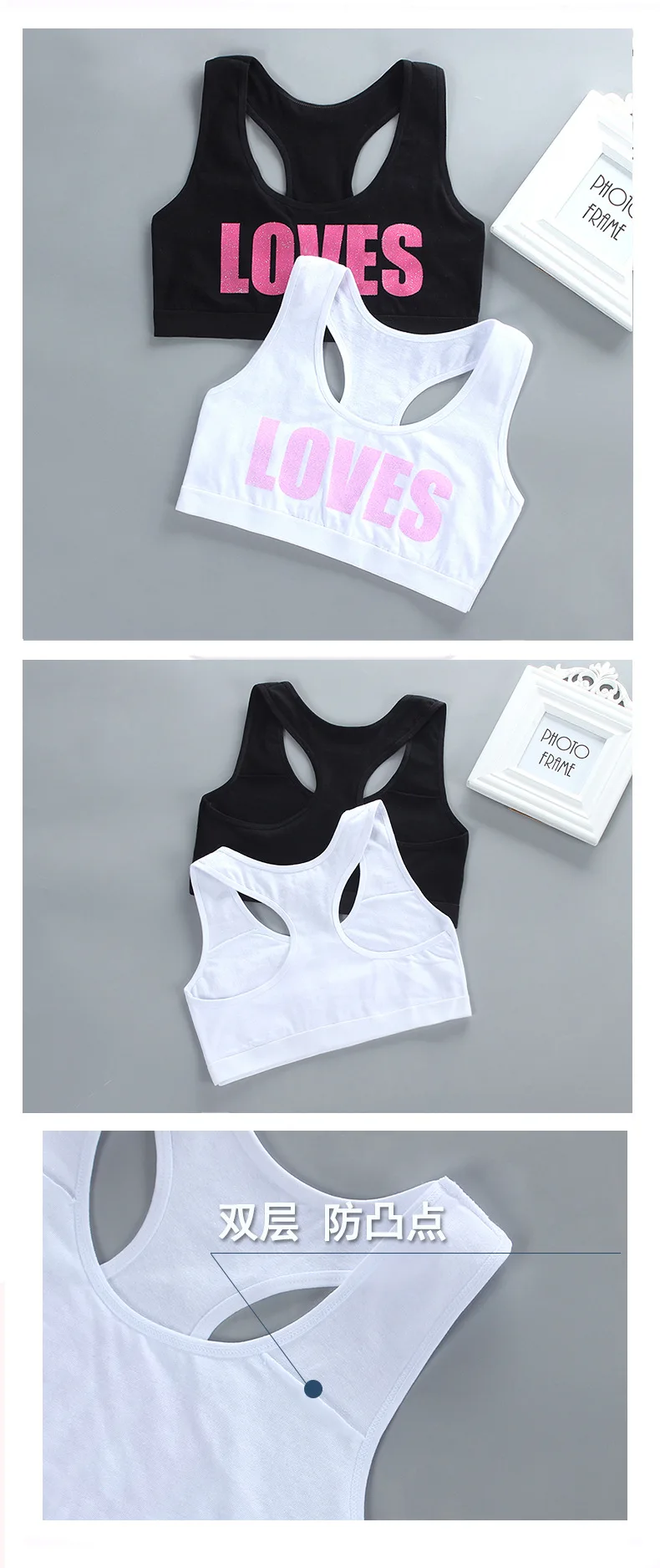 2pcs Children Girls Bras Underwear For Puberty Girl Breathable Teenage's Tops Kids Letters Bra Vest Student Underwears Accessory