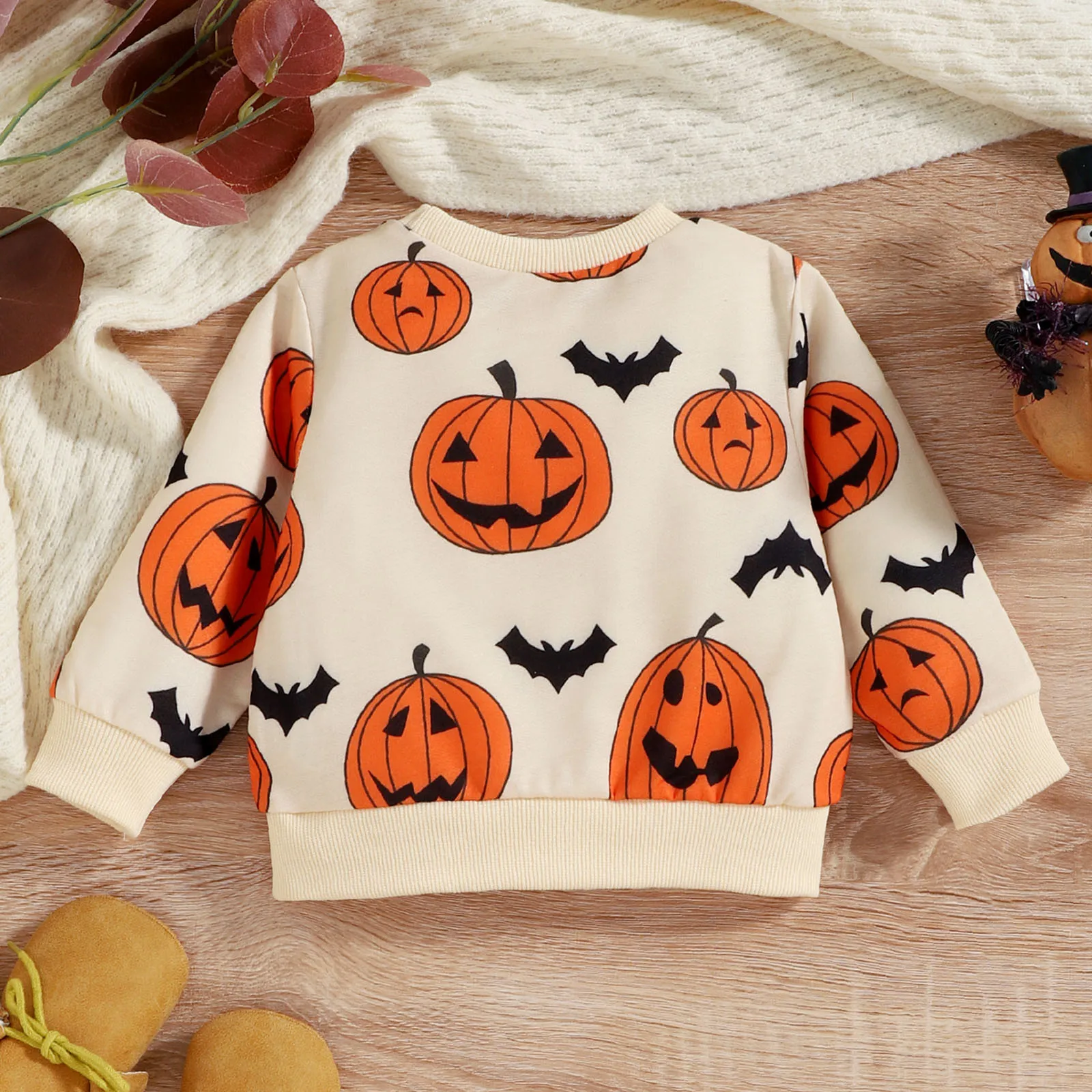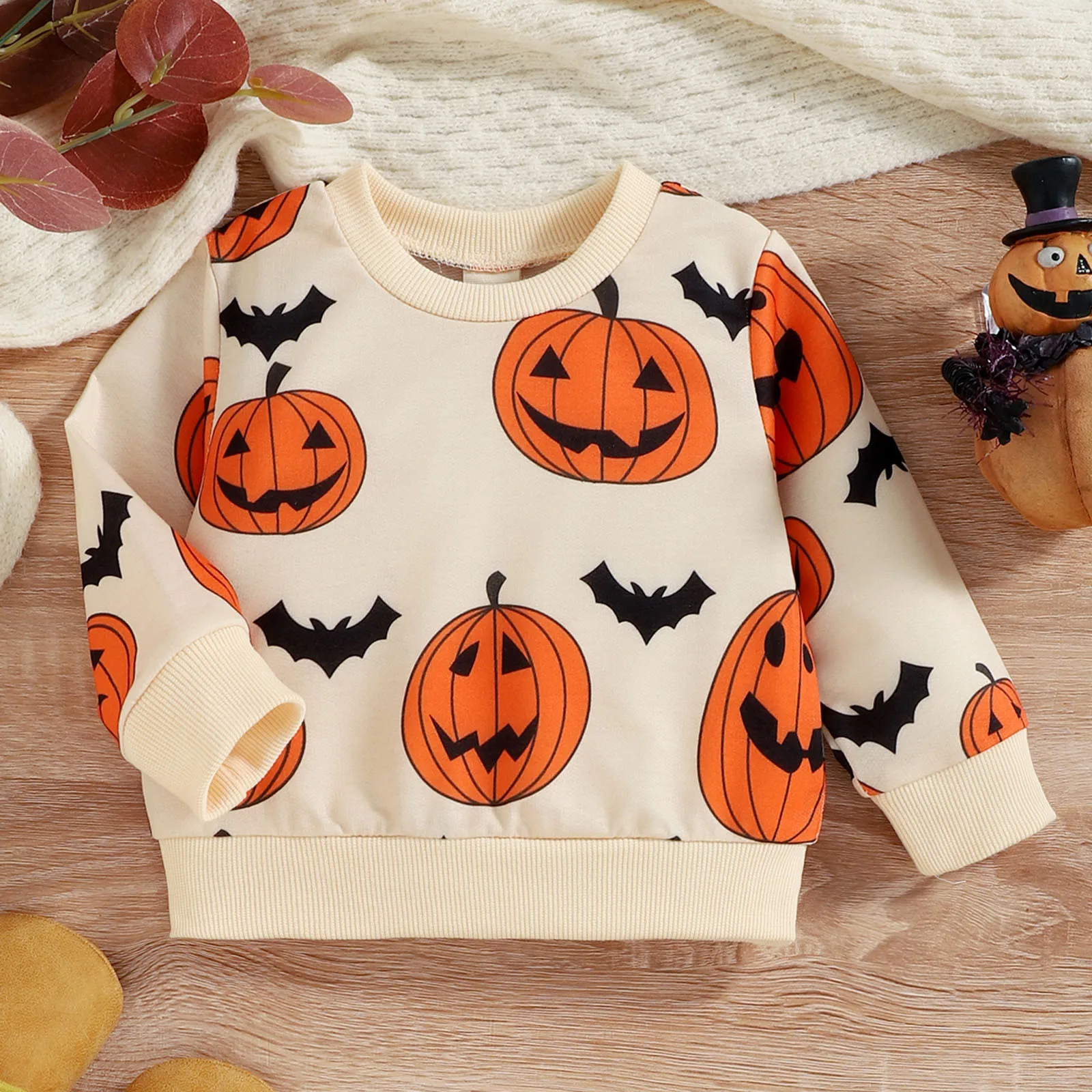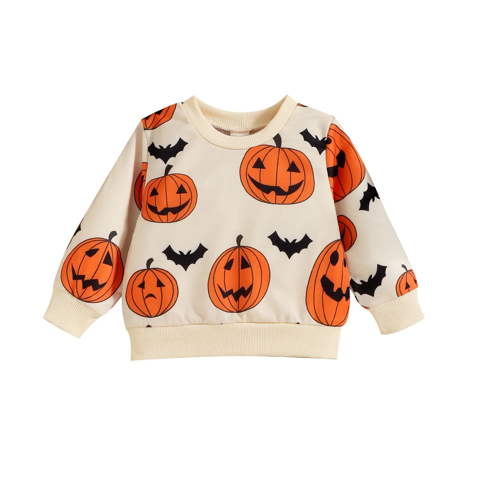 Toddler Boys Girls Halloween Long Sleeve Pumpkin Prints Pullover T Shirt Sweatshirt Tops