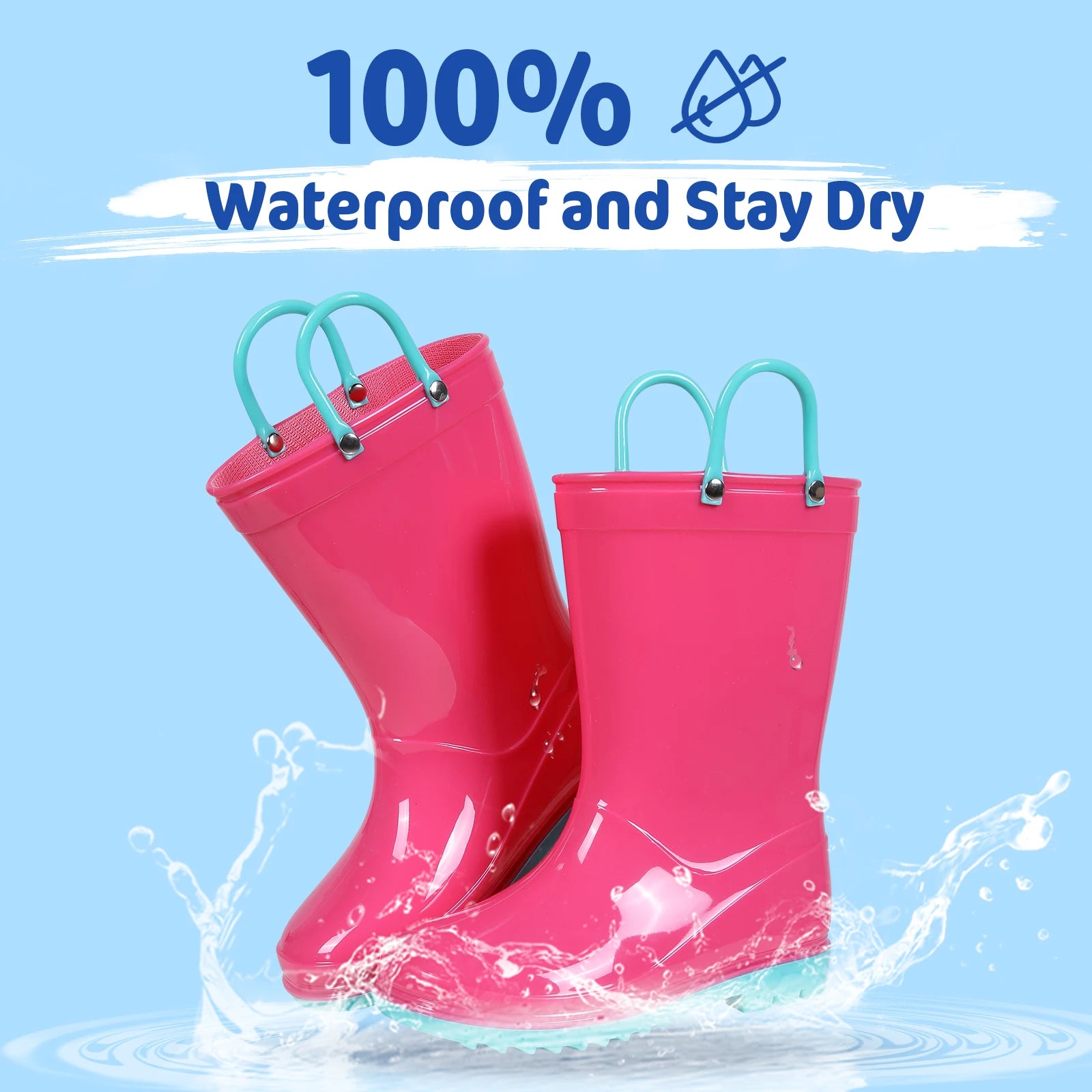 ✅【Play a Splash】❤Made from 100% environmentally and waterproof of PVC materials with a non-slip strong sole, and use seamless connection technology these kids rain boots prevent water from getting inside, while the textured outsole that offers their extra grip and great for your kids to tromp around in puddles, without worrying dirt.