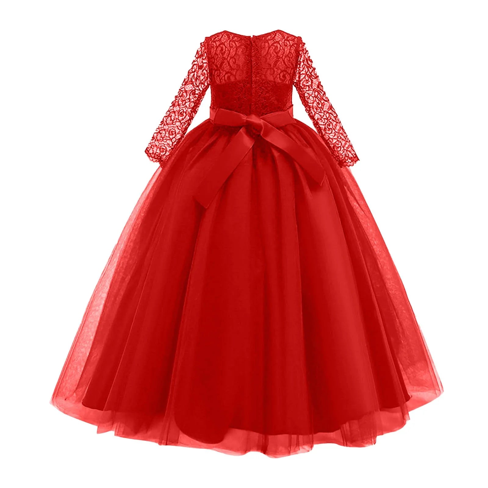 Girls Fashion Dress Formal Long Sleeve Wedding Flower Girl Dress Dress