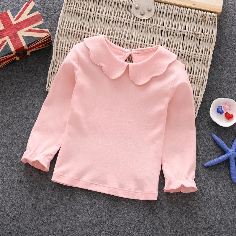 Sweet petal collar baby girls shirt Spring fall long sleeve infant kids blouse soft breathable toddler tops baby shirt