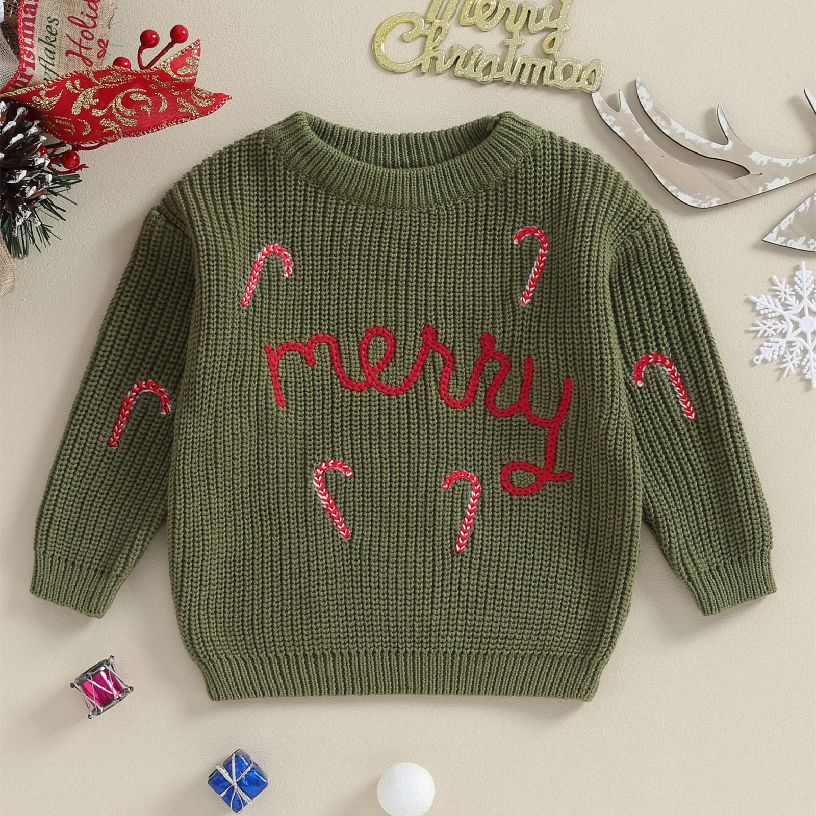Baby Christmas Sweaters Cute Long Sleeve Candy Cane Embroidery Knit Pullover Infant Tops
