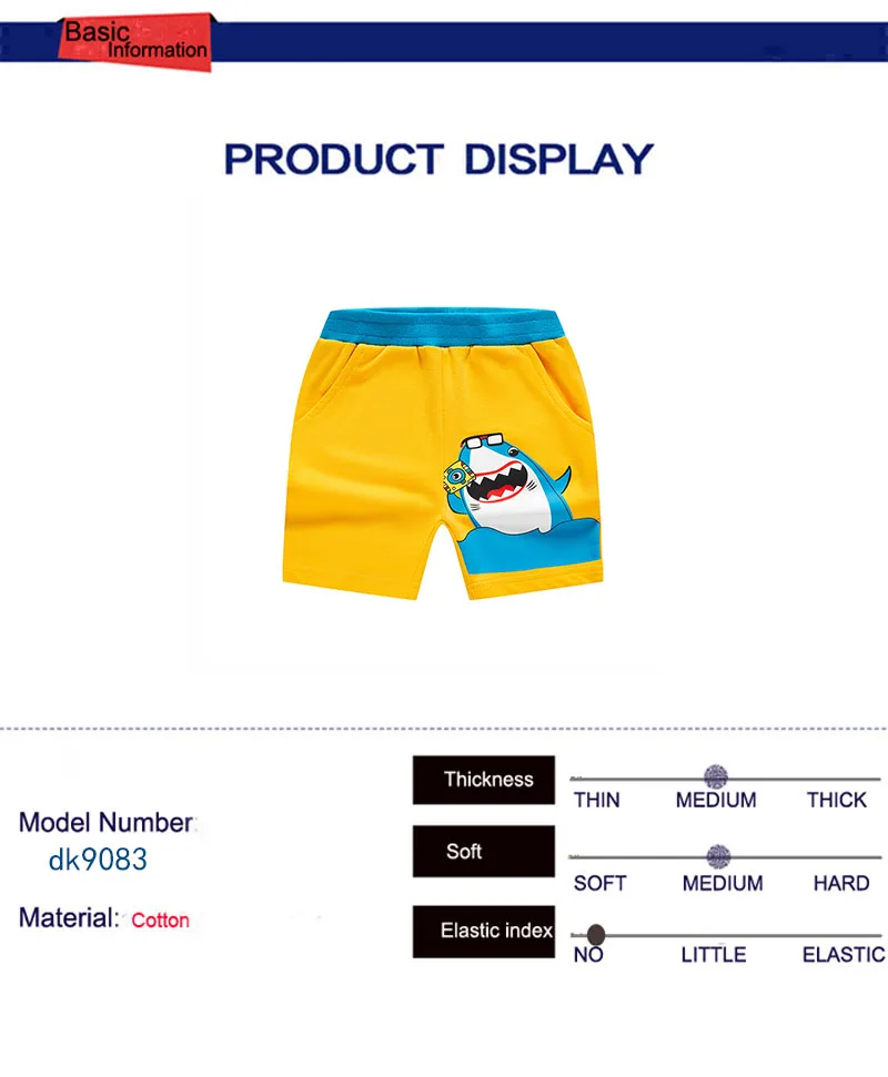 Geral Summer Boys Shorts Baby Cartoon Cute Shark Casual