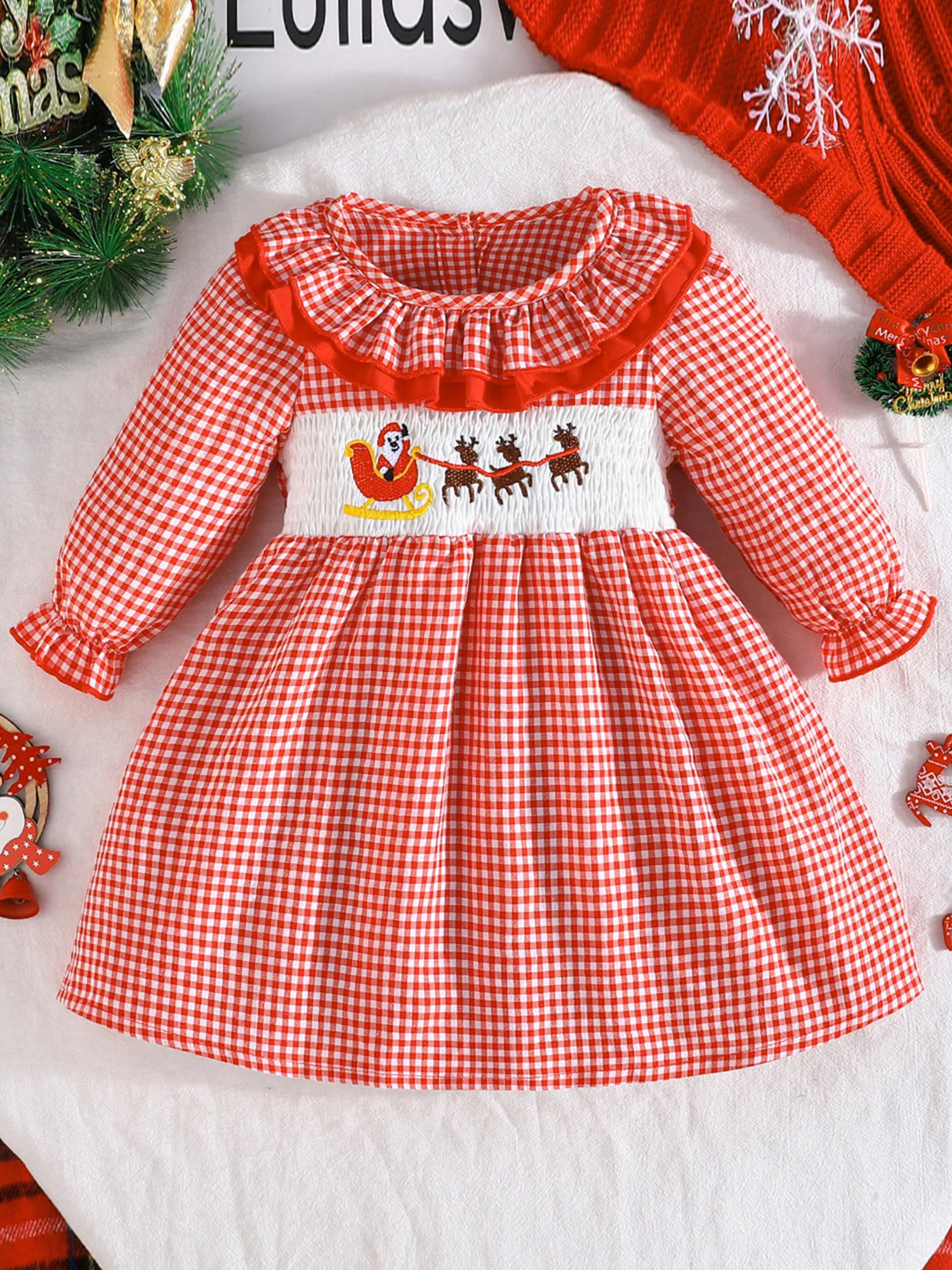 Elevate your daughter's seasonal wardrobe with this refined winter dress, designed for festive occasions and fall celebrations. Featuring a classic crew neckline and long sleeves in a timeless plaid pattern, this piece combines comfort with understated elegance. Delicate embroidered details add a touch of sophistication, making it perfect for holiday gatherings, family photos, or special events. The thoughtful construction ensures both style and practicality for active young wearers. An