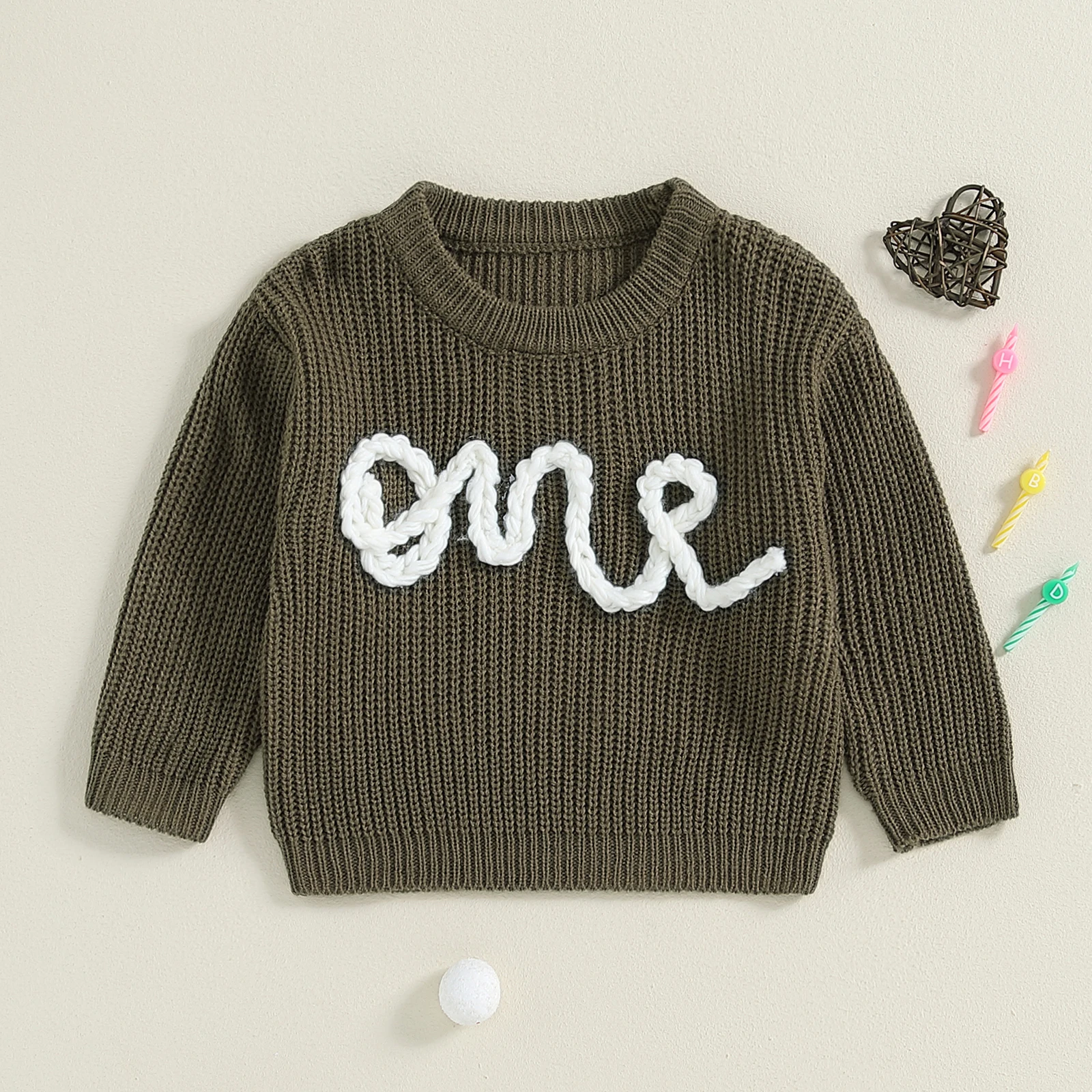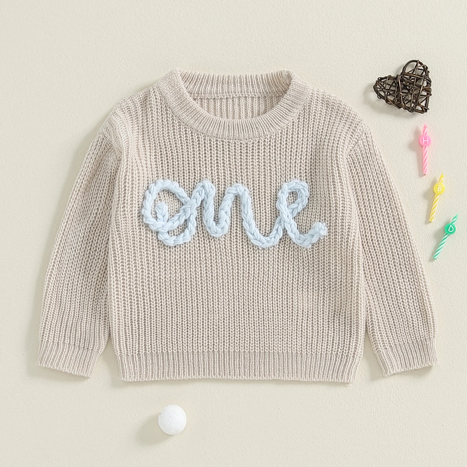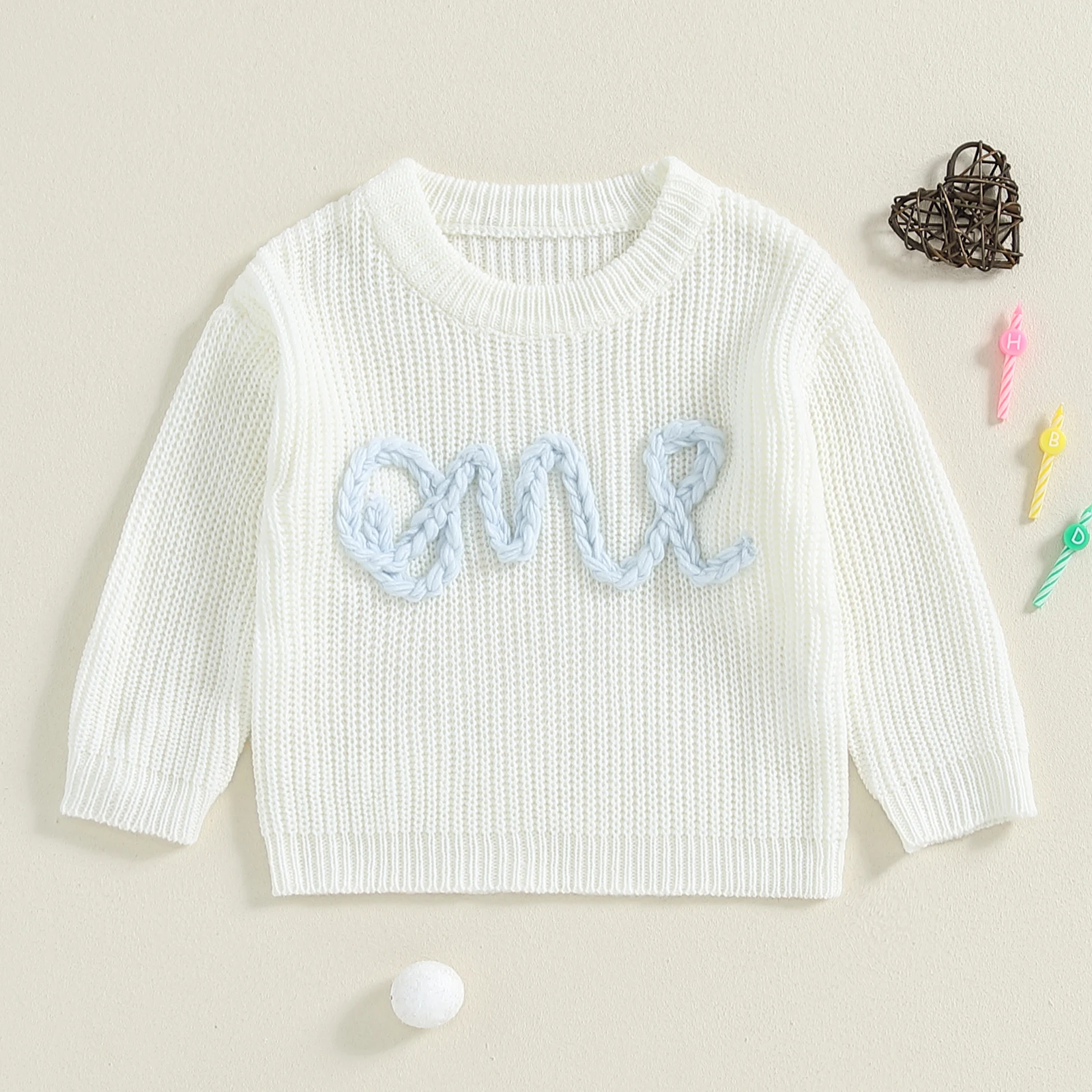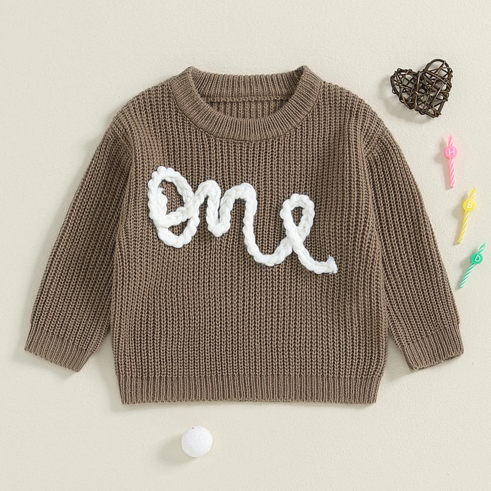 Letters embroidery, round neck, long sleeves, knitted fabric, newborn girl sweater, unisex design, simple and stylish, perfect for keeping your child warm and cozy in cold weather.