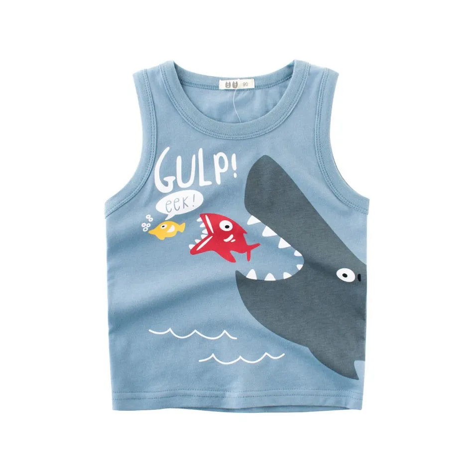 Dress Name: Kids Tees Boys Girls Clothes Children Cartoon Tanks Baby Casual Crocodile Shark Sleeveless Shirt Summer Short Sleeve Tops 2-8T Department Name: Kids Tops Theme: Children Vest Suggested Ages: 2-8 Years Material: Polyester, Cotton Features: Printed Package: As you selection+ OPP Bag
