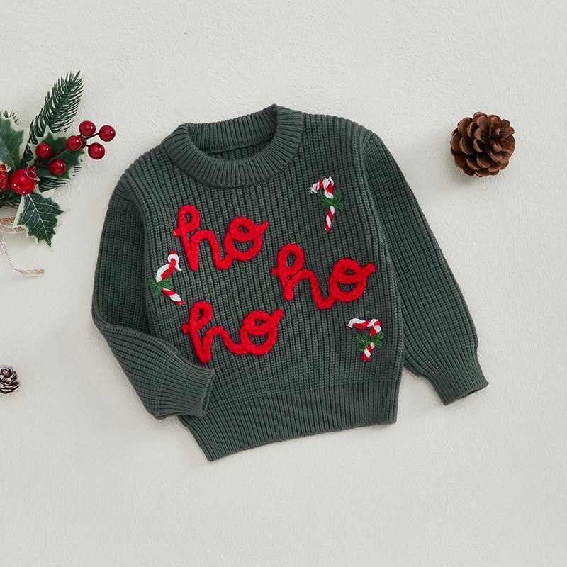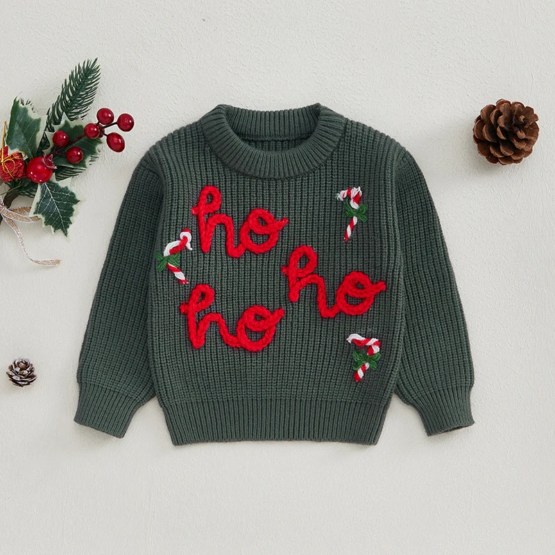 Baby Girl Christmas Sweater, Long Sleeve Crew Neck Letters Candy Cane Winter Warm Knit Pullover Sweater Infant Clothes