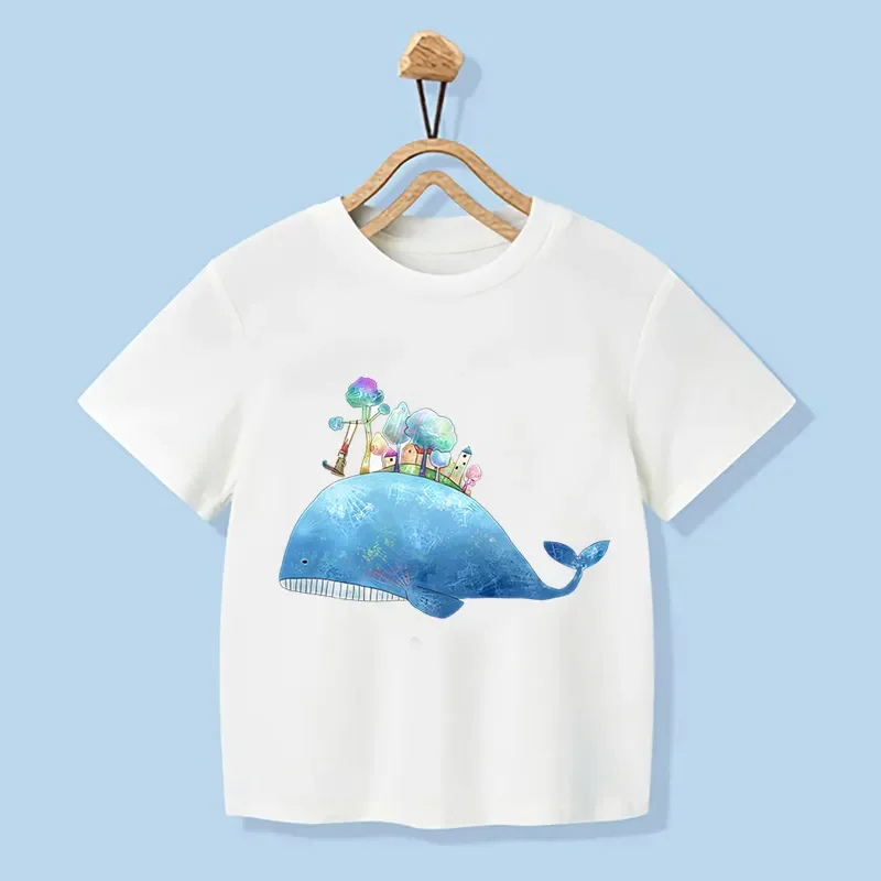 Joseph Whale Print Cartoon Kids Tees