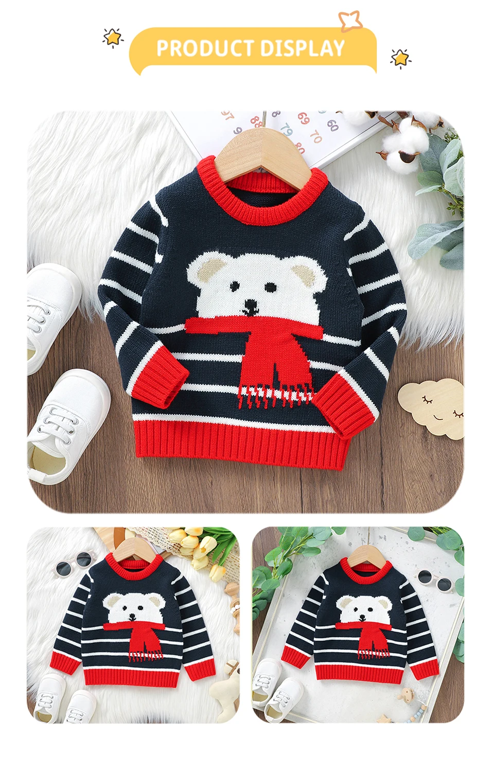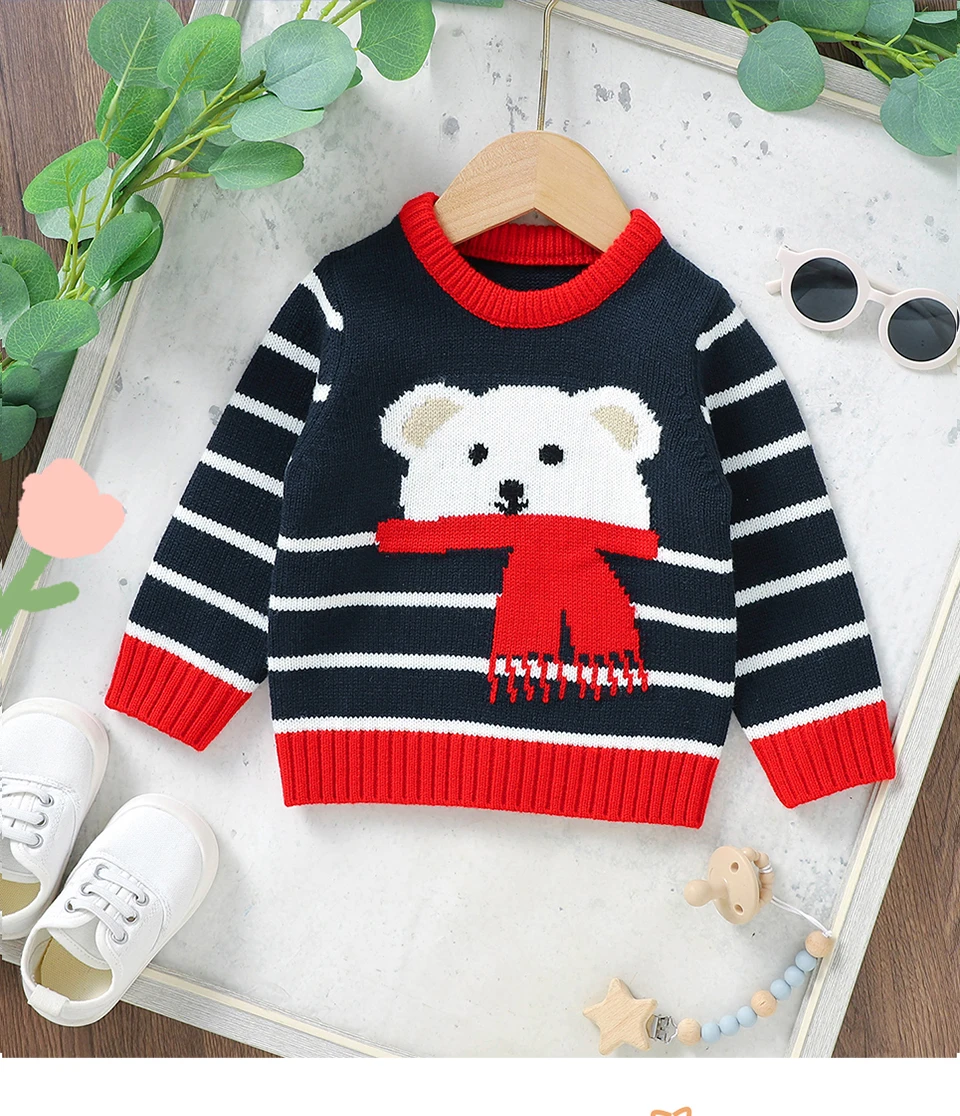 Josh Teddy Bear Print Long Sleeve Sweater