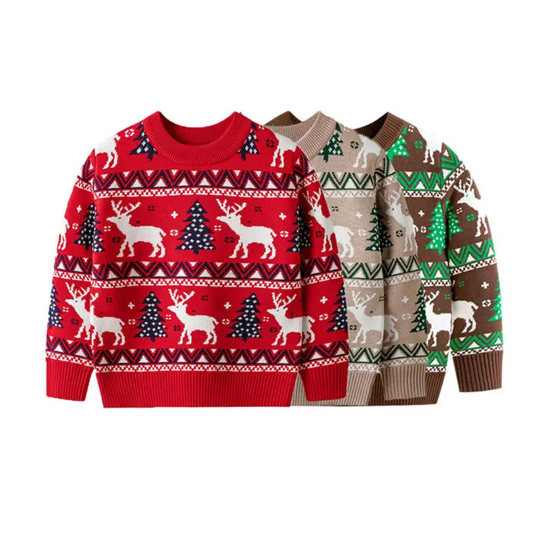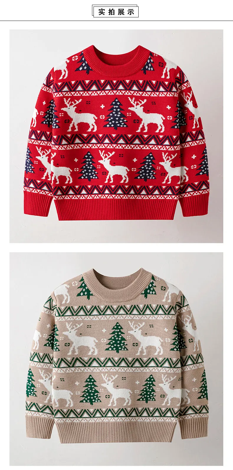 Baby Girls Boys Christmas Sweater Kids Elk Pullover Sweatshirts Toddler Warm Knitted Wear 2024 Autumn Winter Children's Clothes