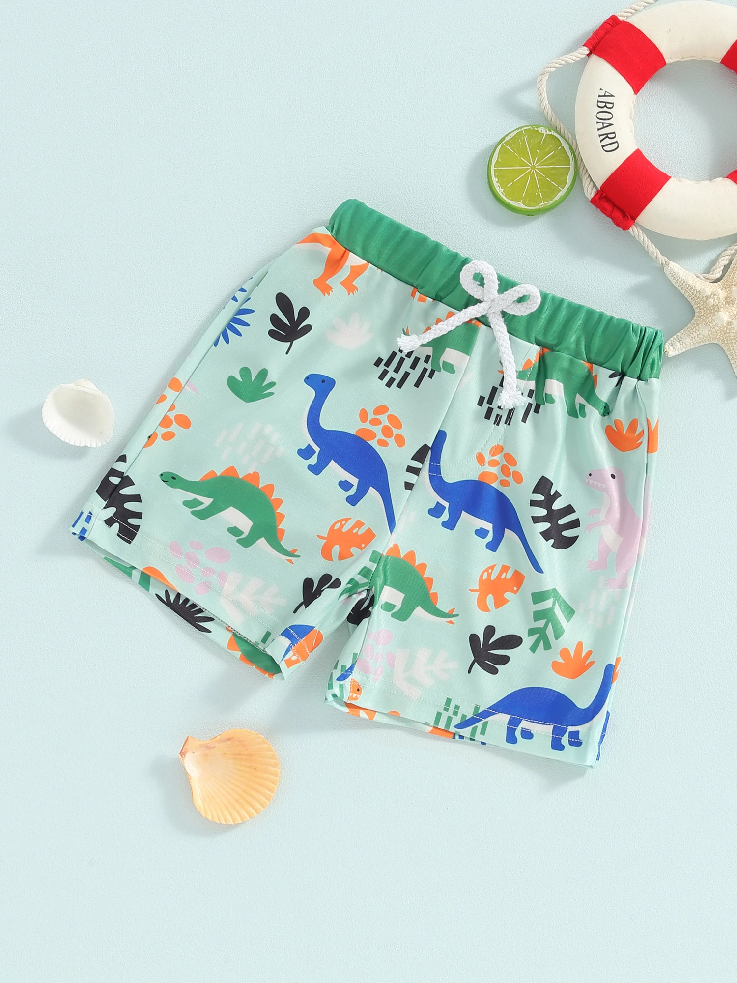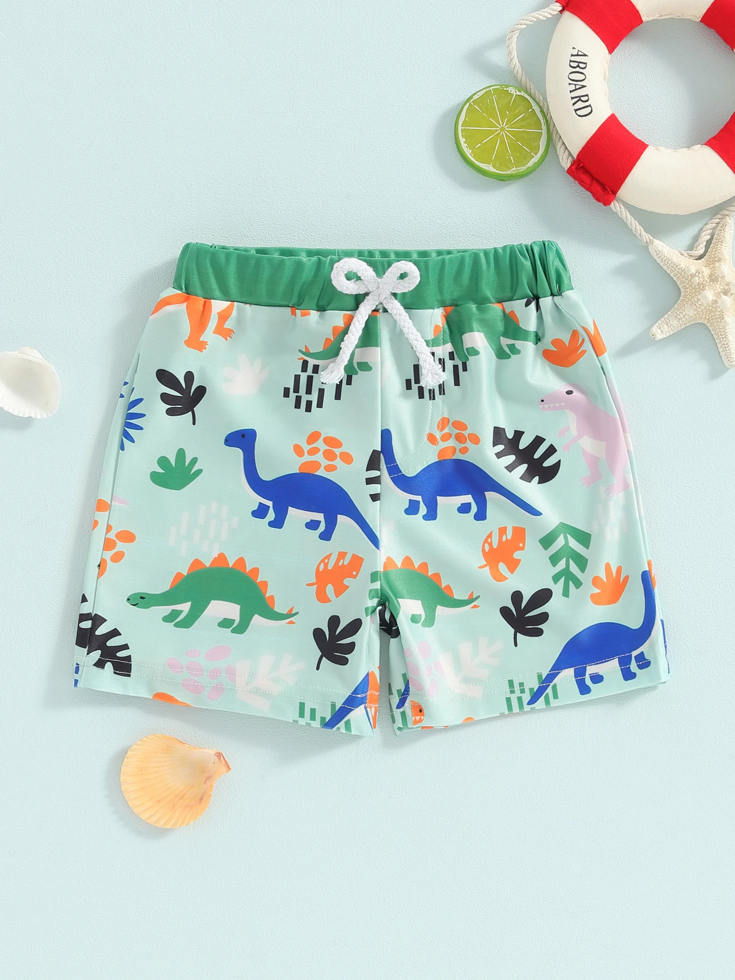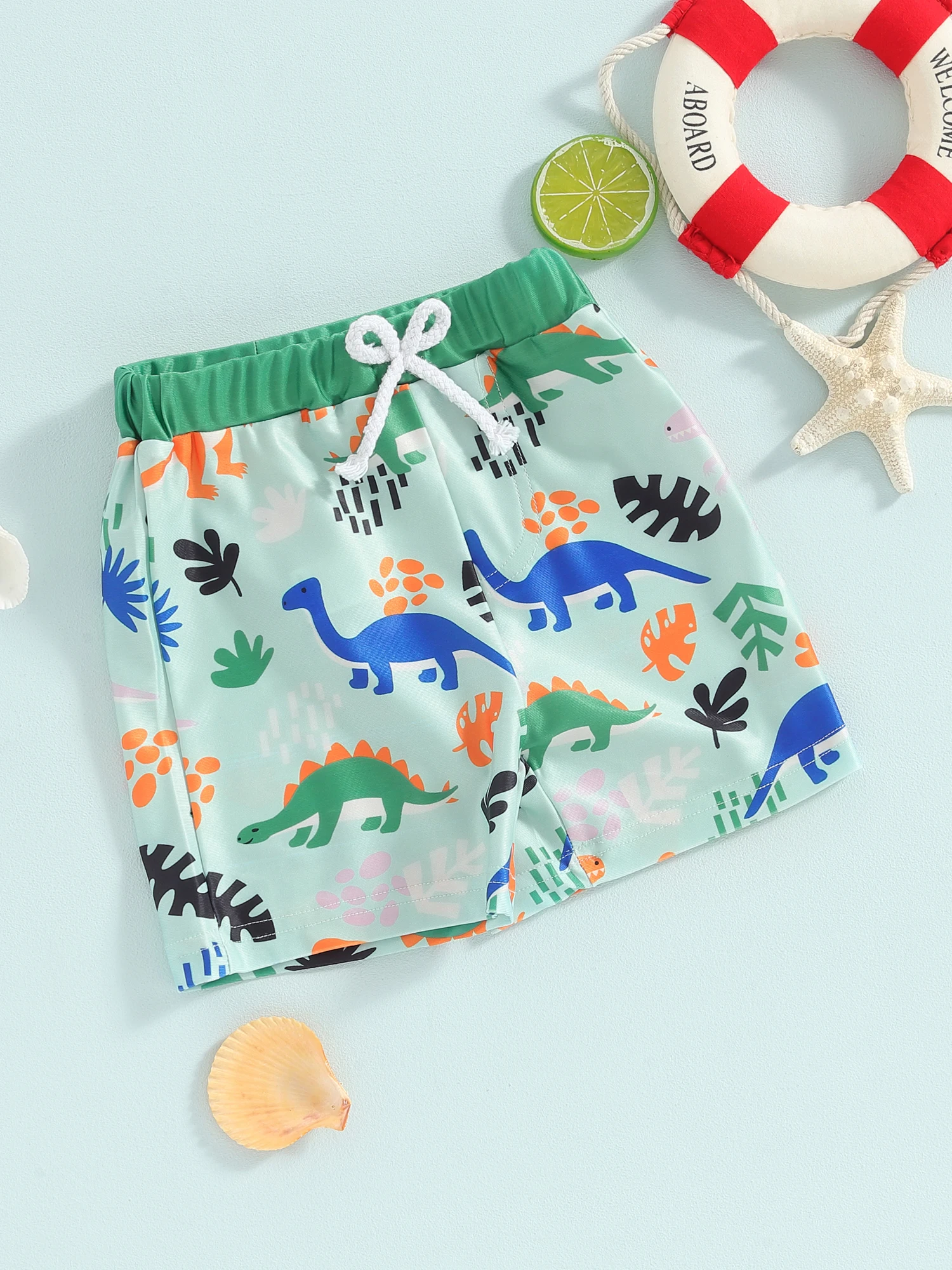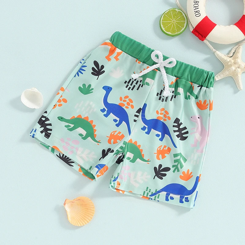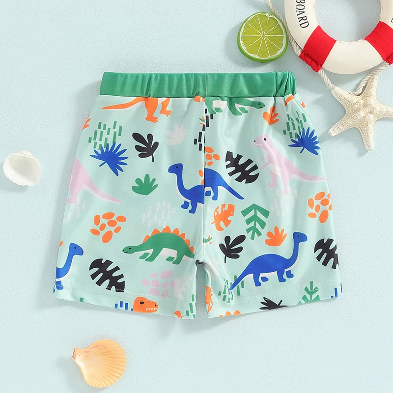 Toddler Boy Swimwear Shorts Cartoon Dinosaur Print Elastic Waist Summer Beach Short Pants Swimming Trunk