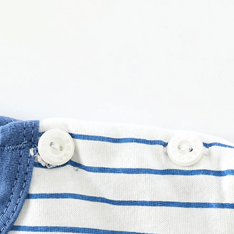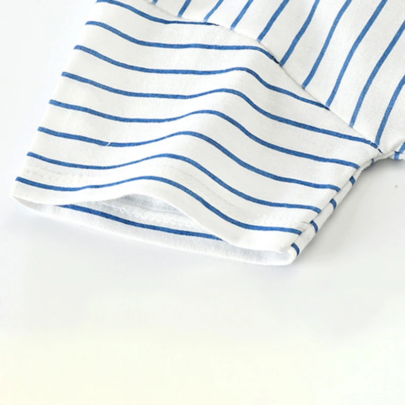Summer Children's T-Shirt White Blue Striped Letter Print Cotton Short-Sleeved Round Neck Boys And Girls Tops Baby Clothing 0-6Y