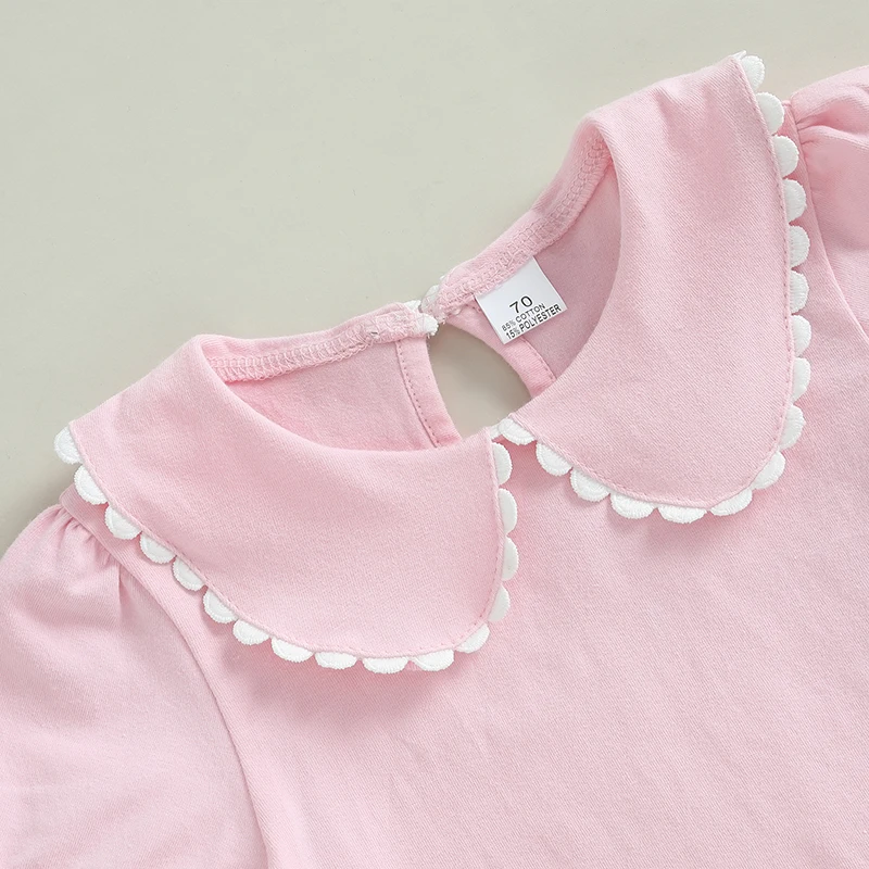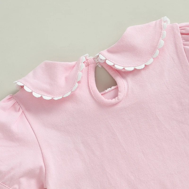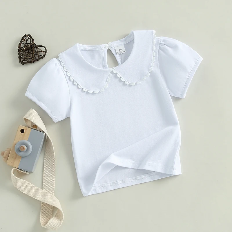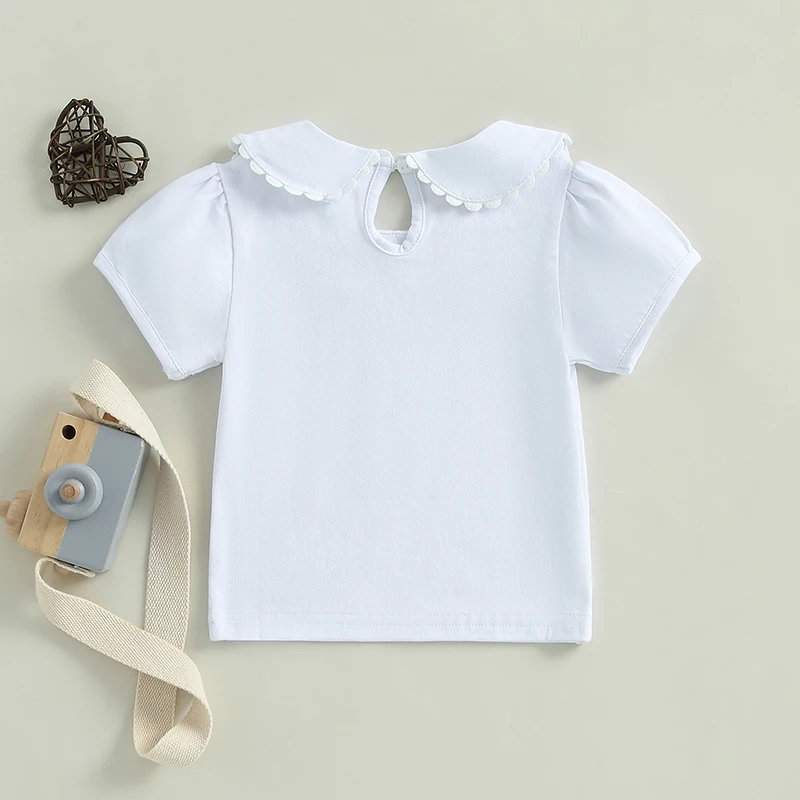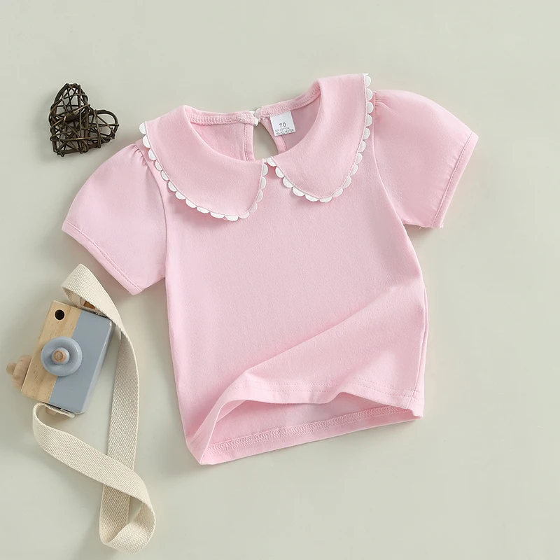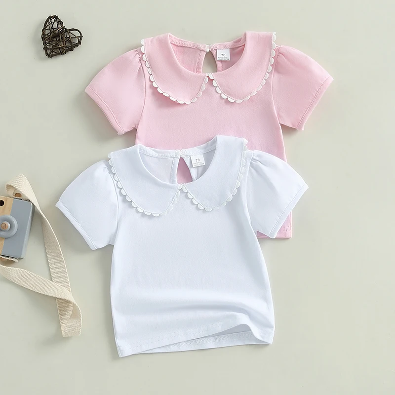 Toddler Girl Summer Sweet T-Shirt Contrast Color Short Sleeve Doll Collar Casual Tops