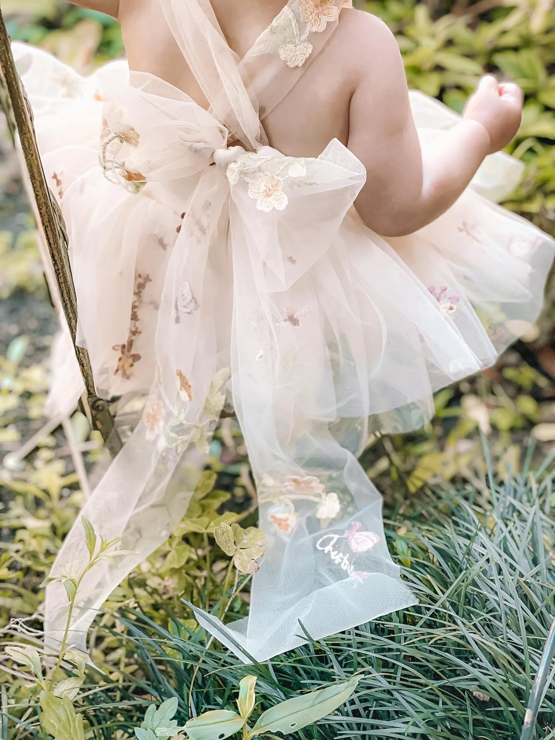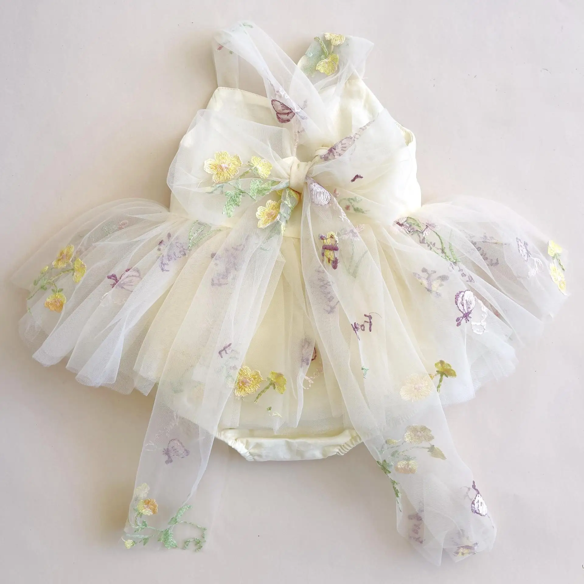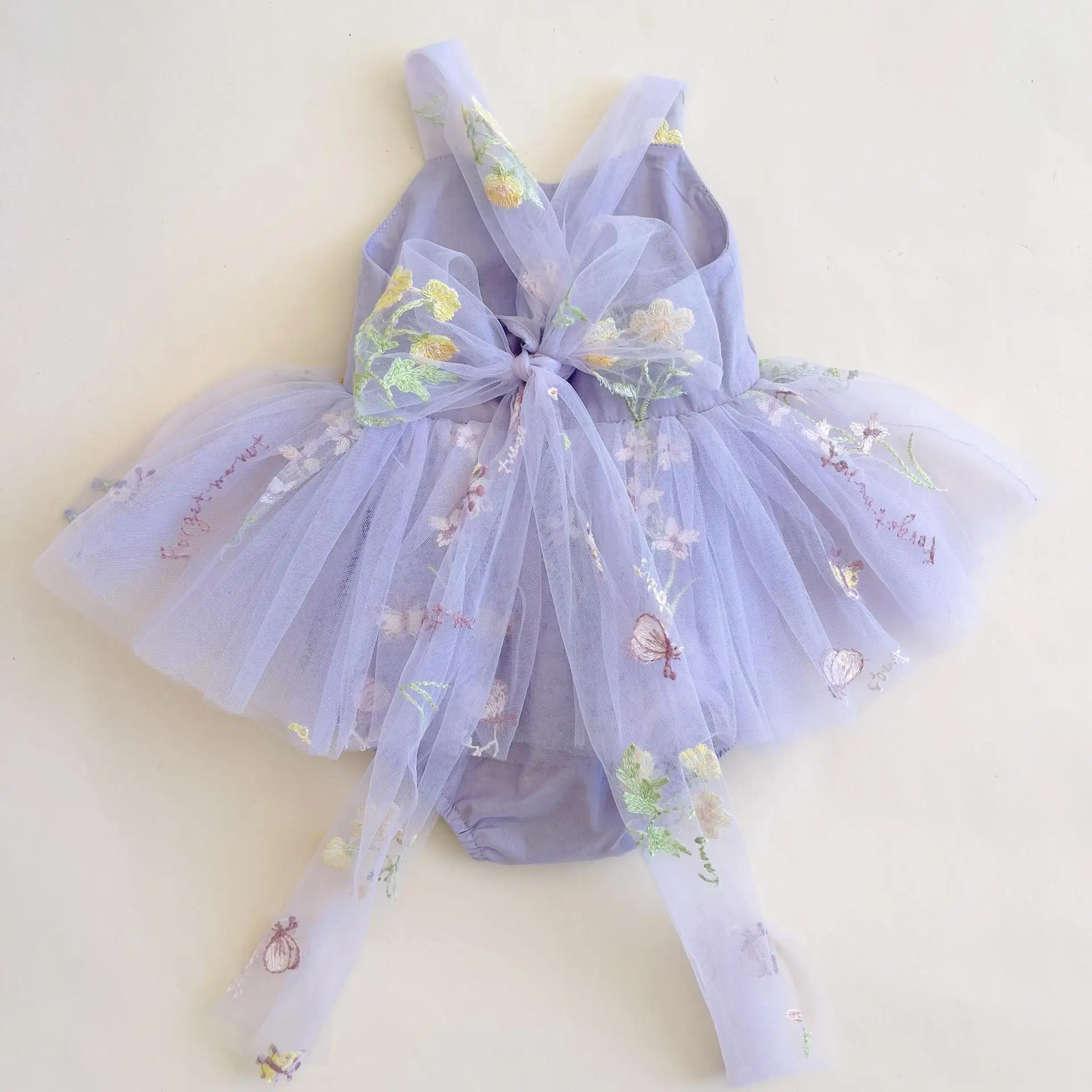 Luna Baby Girl Princess Flower Sling Romper Embroidery