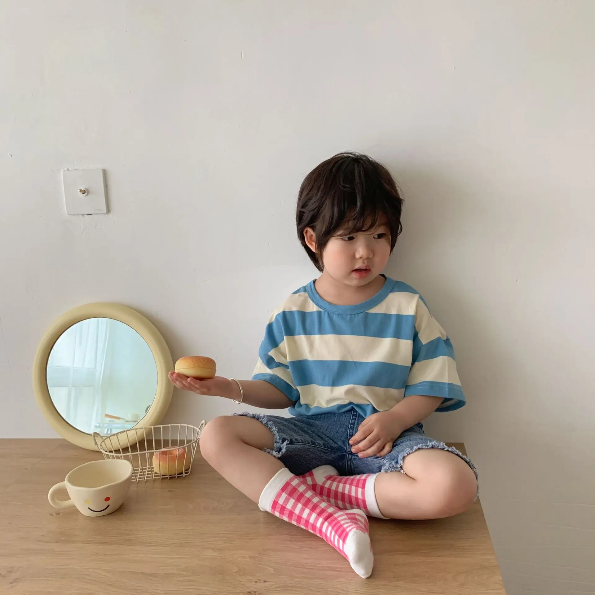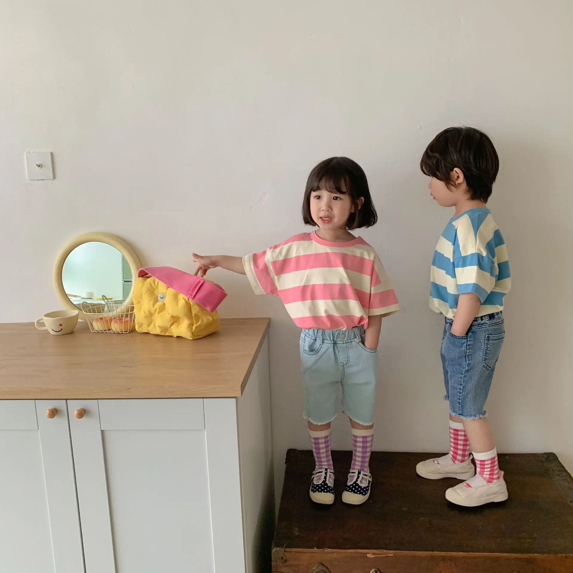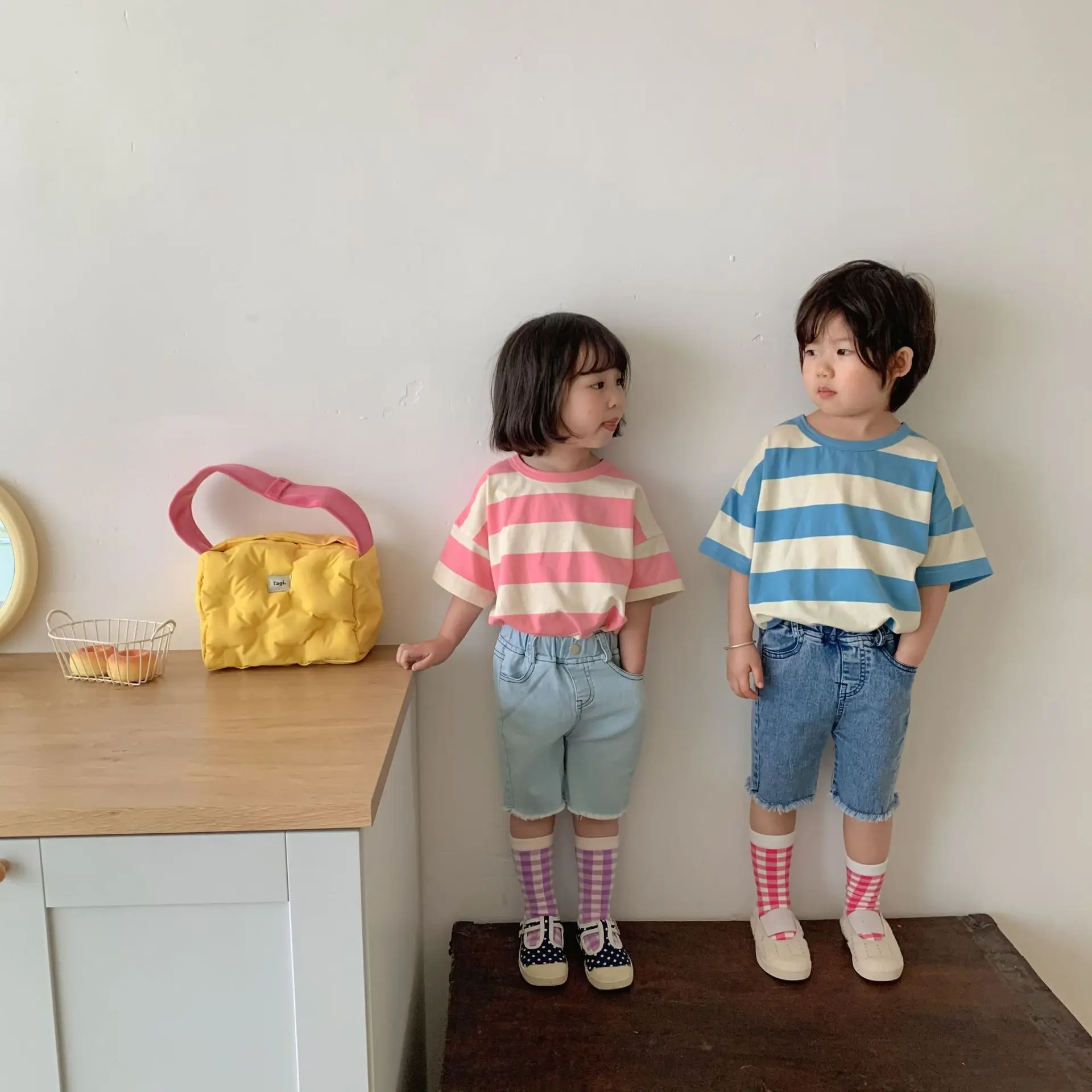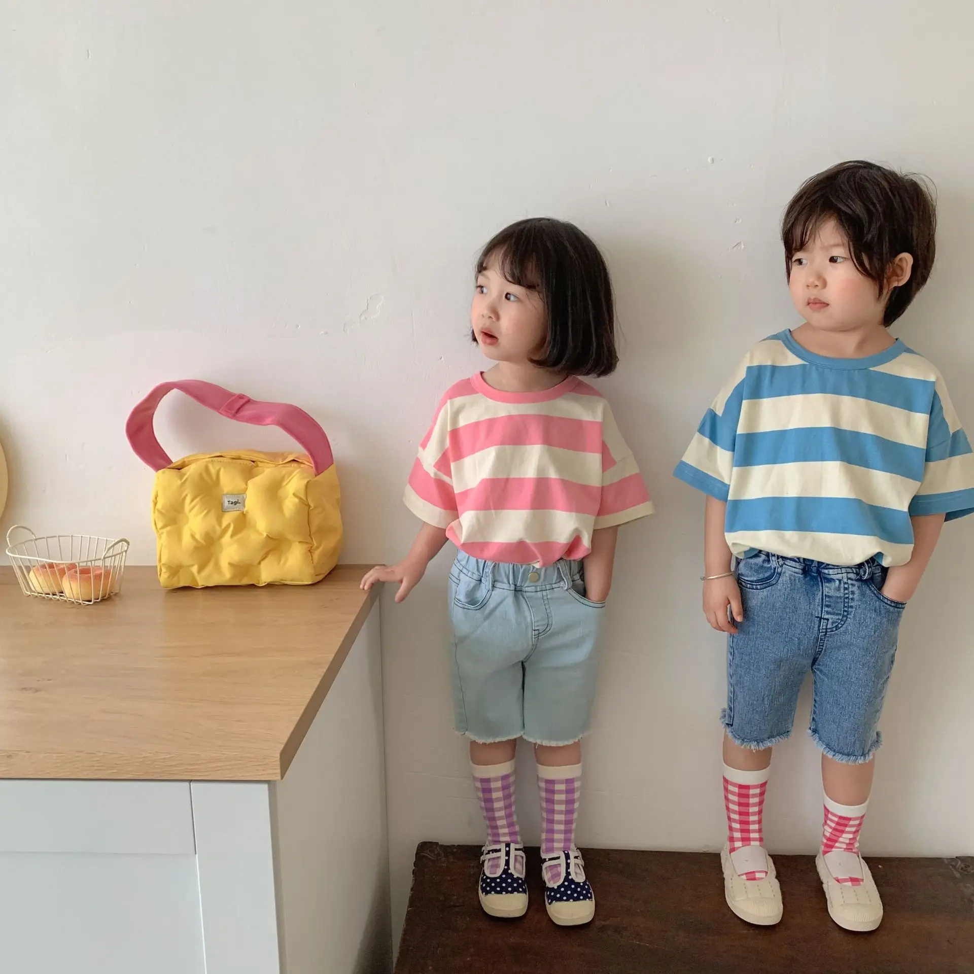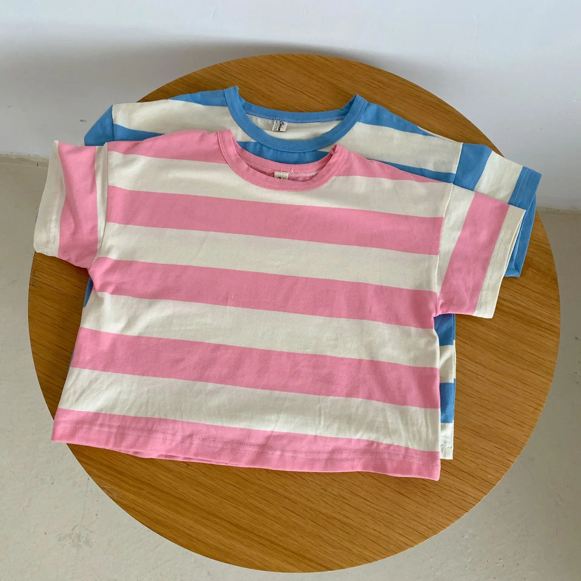 Madison Children korean style summer striped sleeve Tees boys and girls
