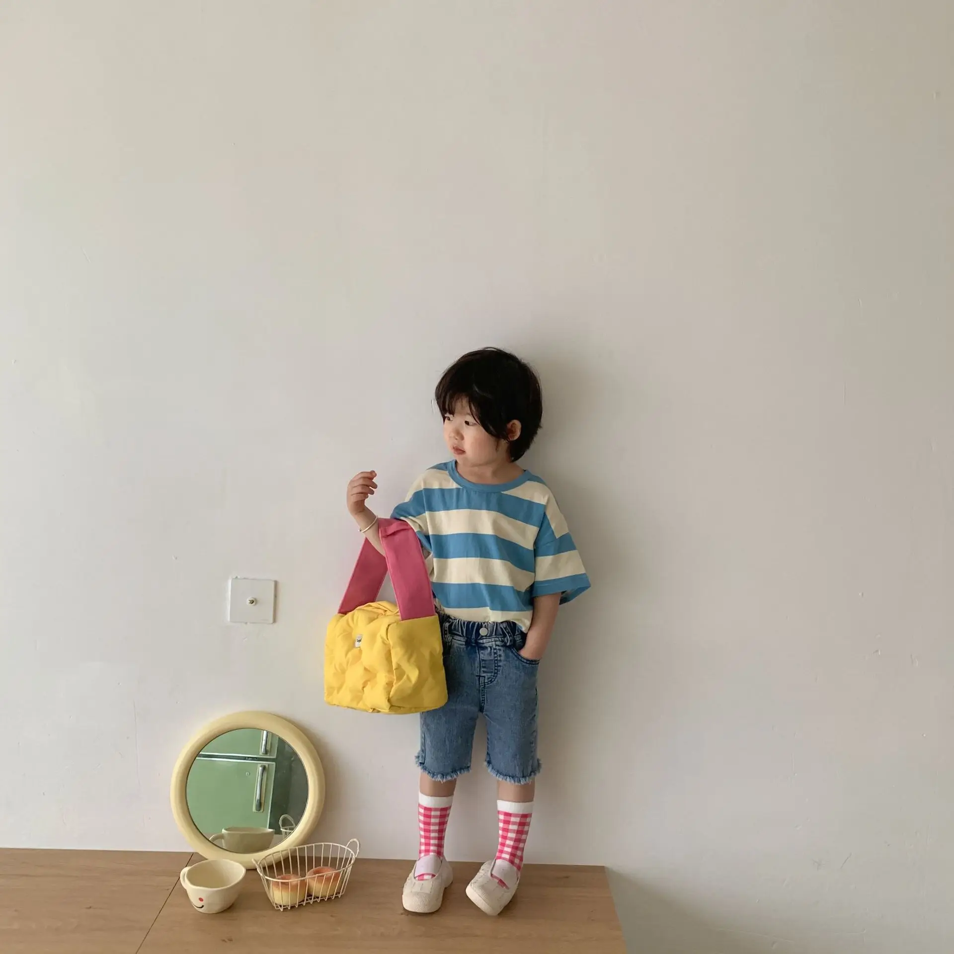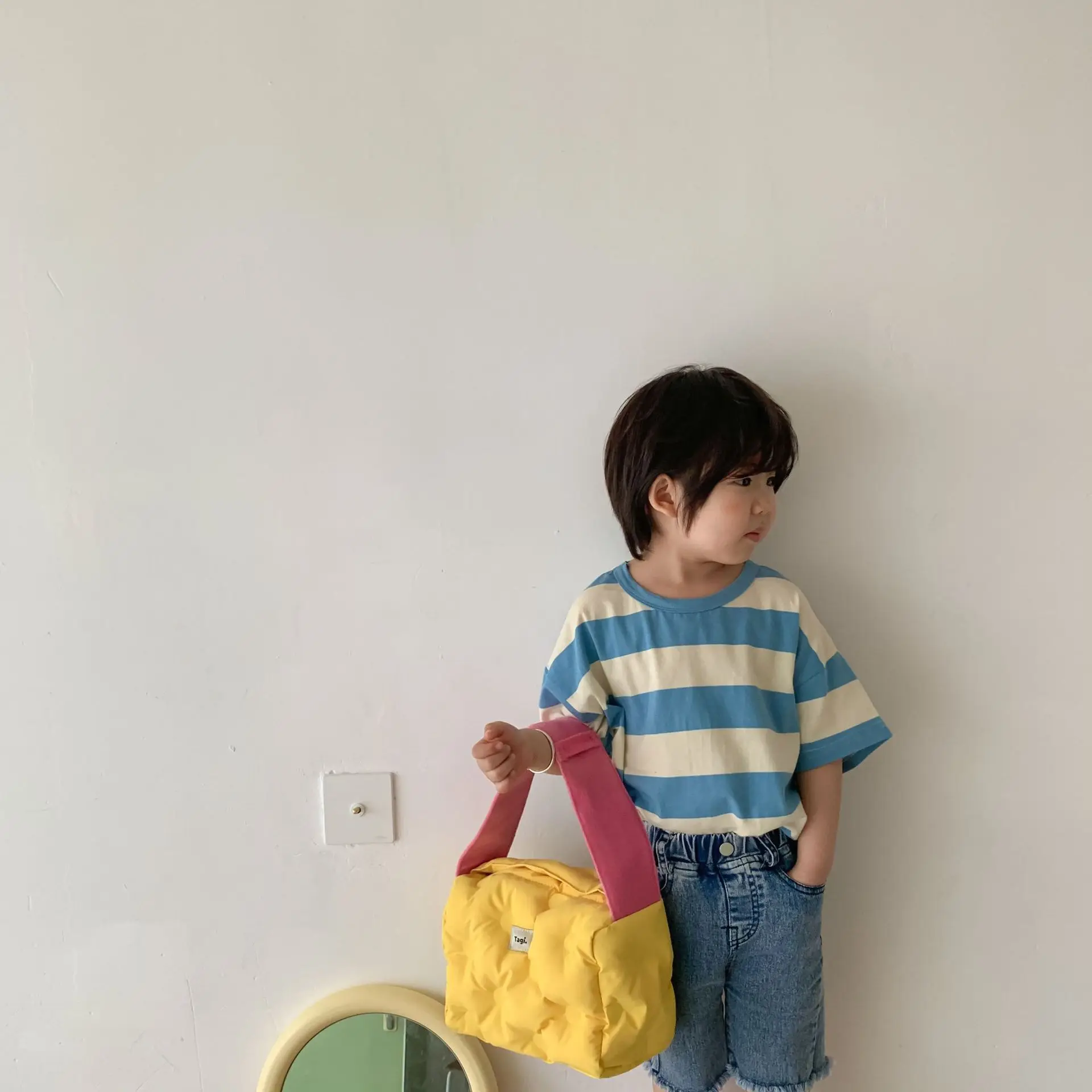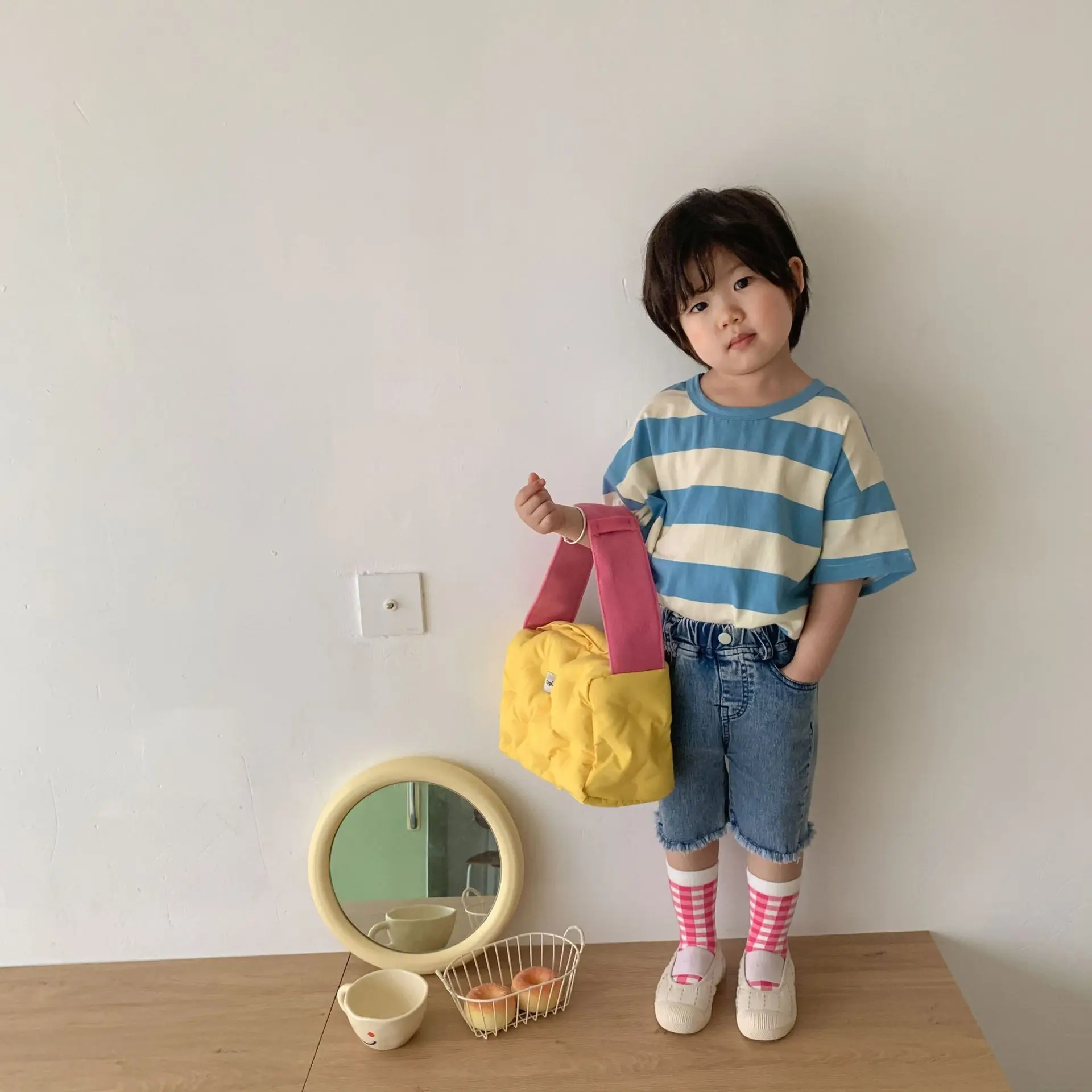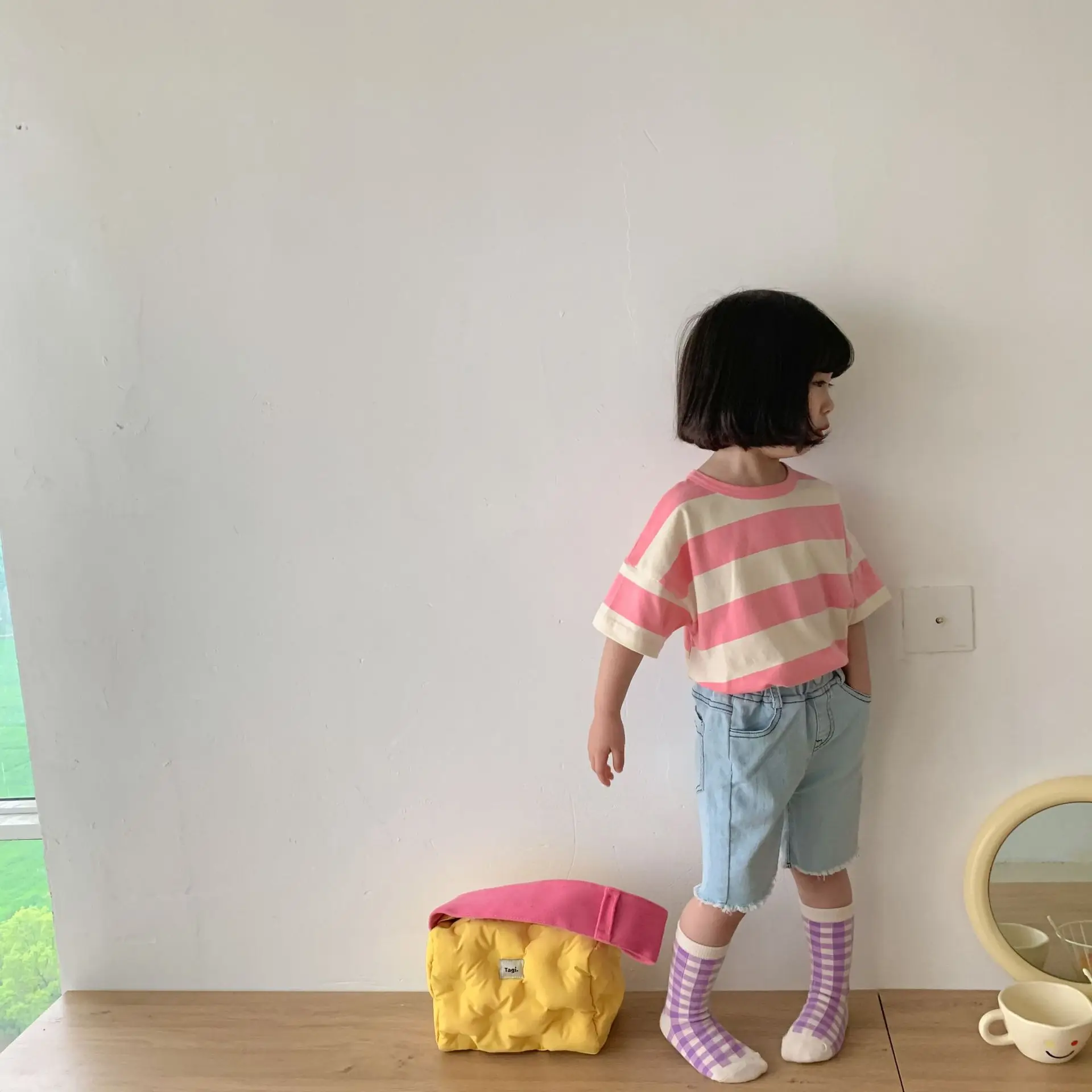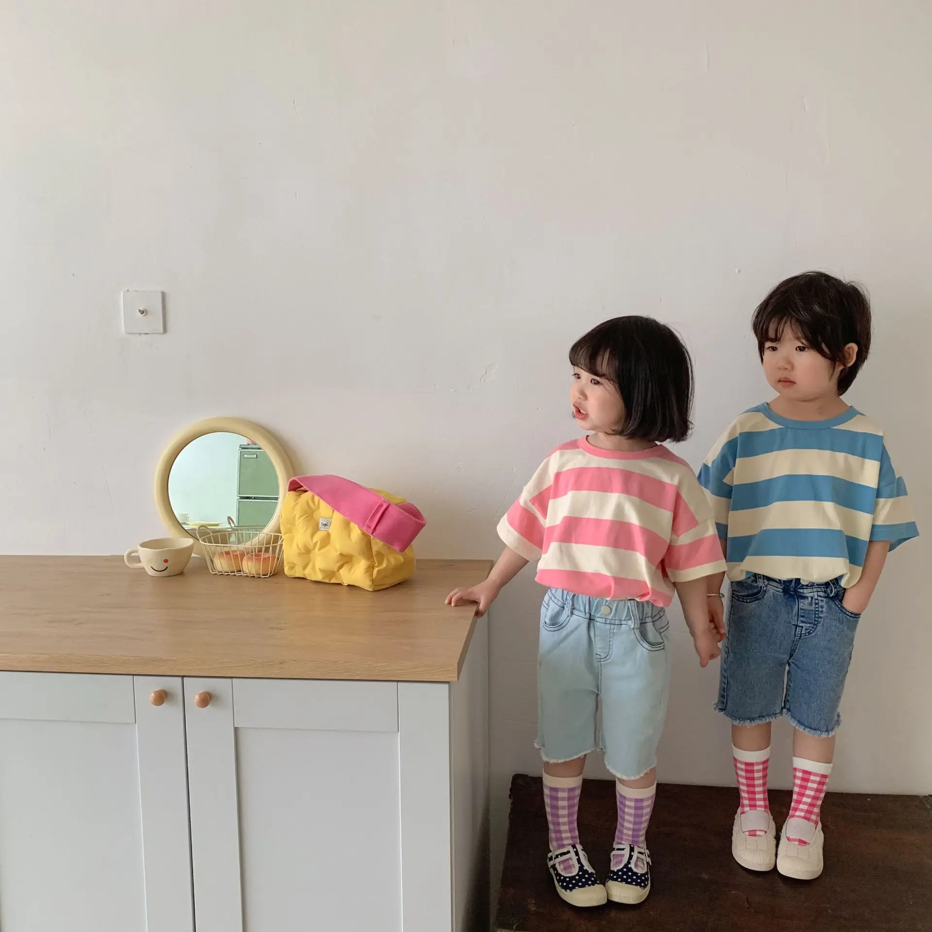 Madison Children korean style summer striped sleeve Tees boys and girls