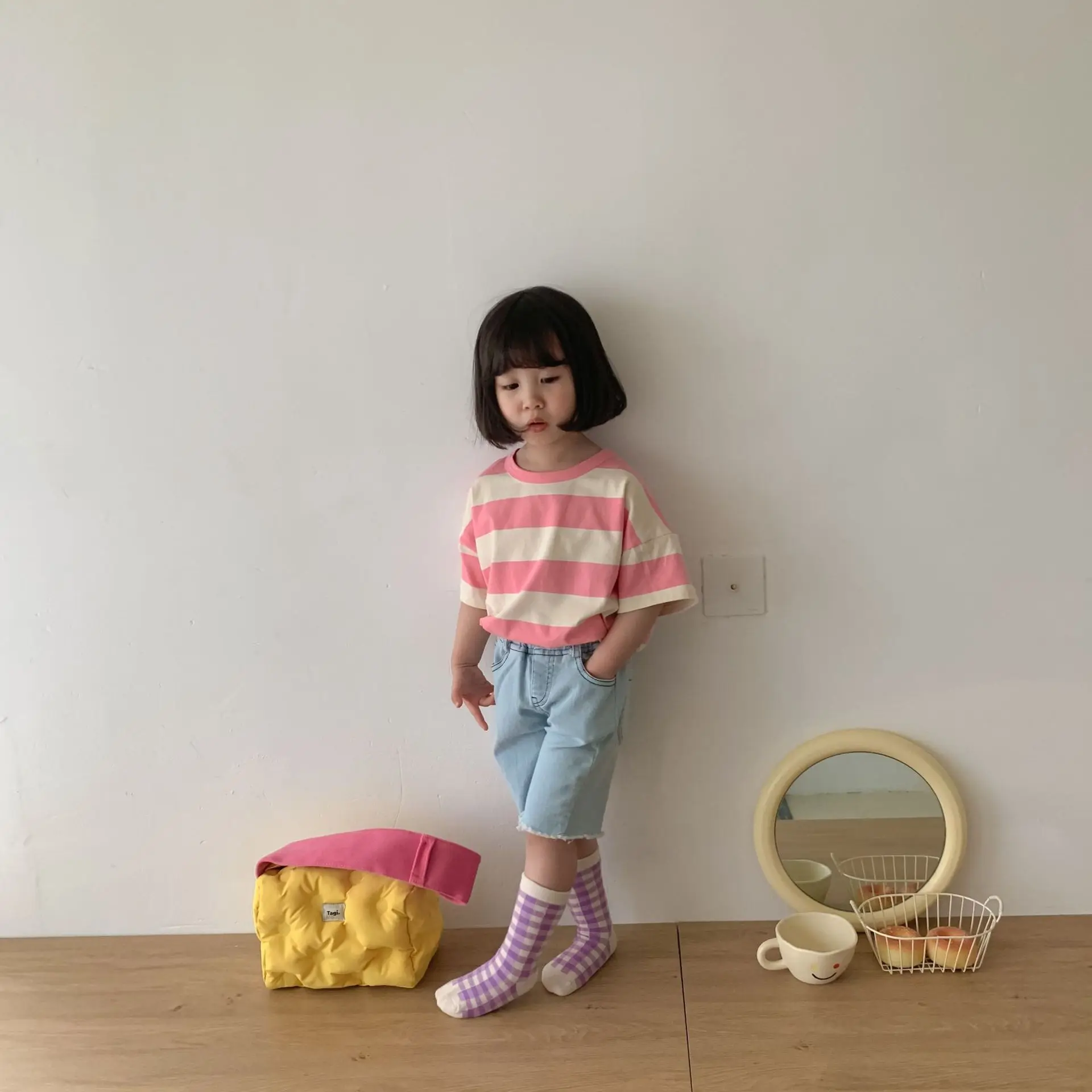 Introduce your child to the Korean fashion trend with Madison Children's summer striped sleeve tees. Made from high-quality materials, these tees offer a stylish and comfortable fit for both boys and girls. Perfect for a casual day out or a fun playdate, these tees are sure to make a statement.