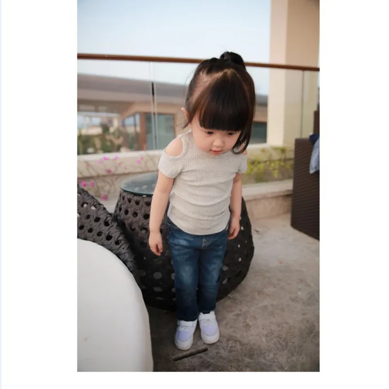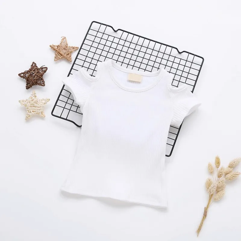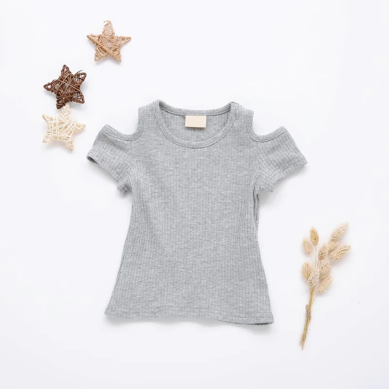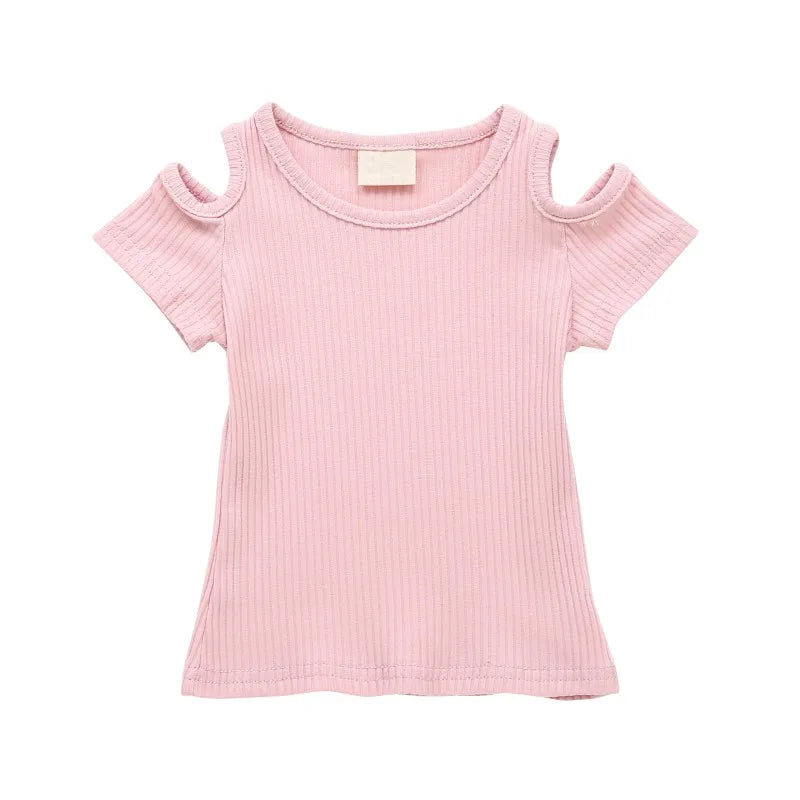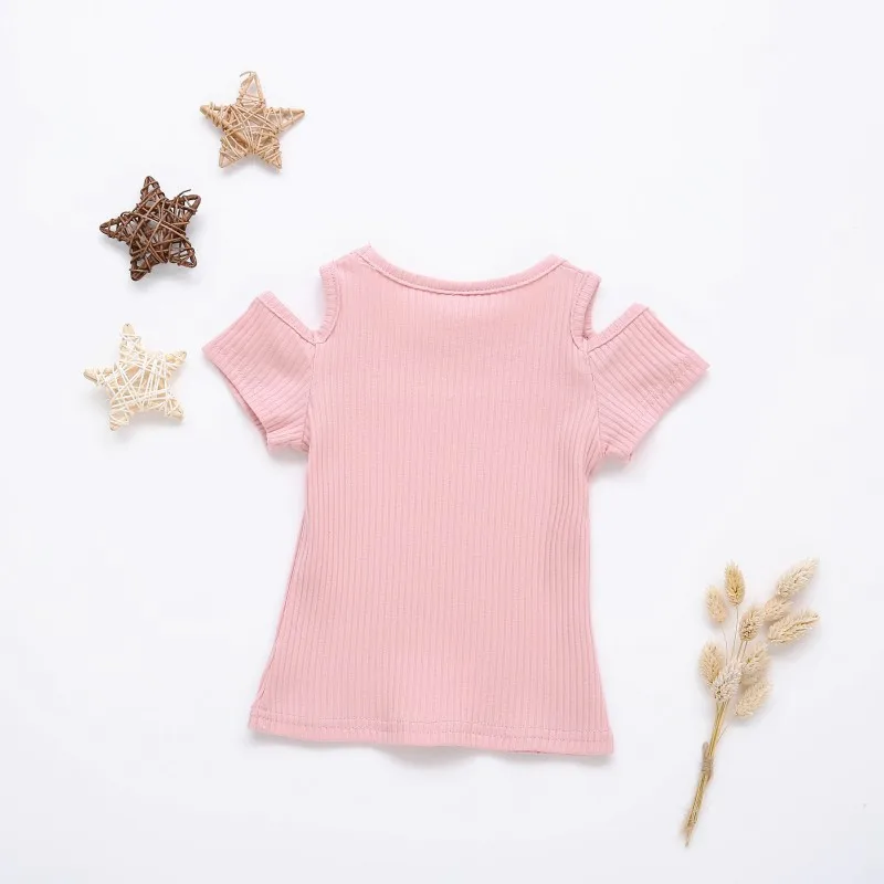 Summer New Children Girls Clothes Cotton Short Sleeve O-Neck Solid Elastic Shirt Off-Shoulder Cute Kids Baby Girl T-Shirt