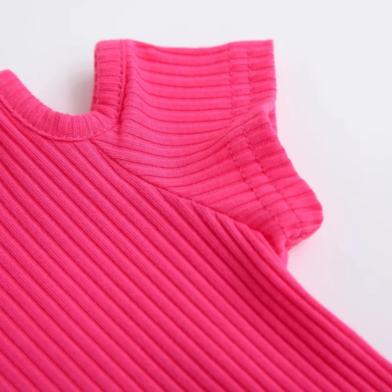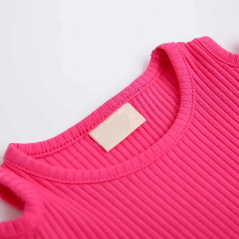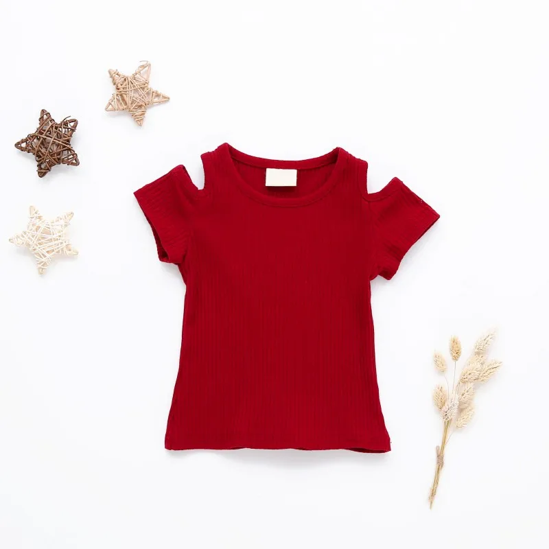 Marta Cotton Sleeve O-Neck Solid Elastic Shirt Off-Shoulder Cute Kids Baby