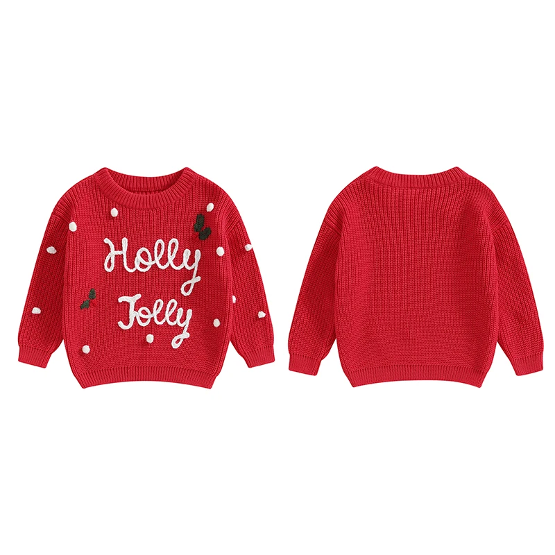 Baby Girl Christmas Sweaters Classic Long Sleeve Letter Embroidery Knit Pullover Toddler Fall Tops